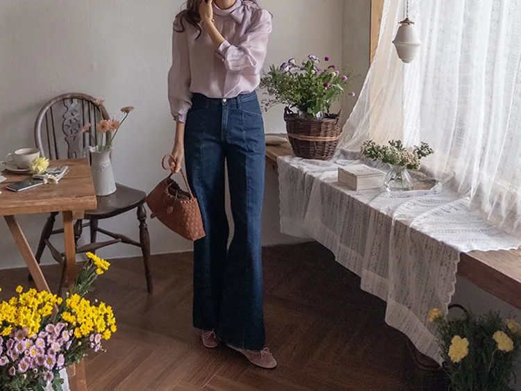 精緻剪裁修長顯瘦直筒寬鬆版型牛仔褲 現貨S