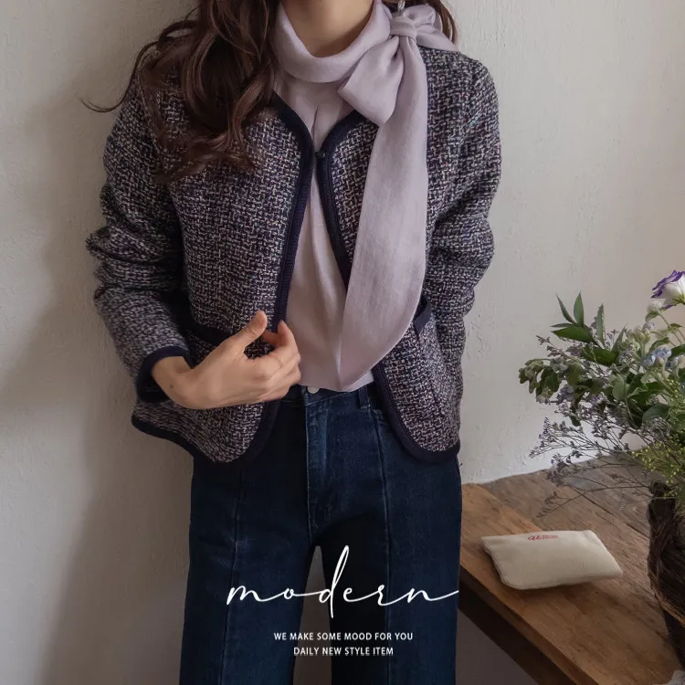 簡約單扣奢華色彩組合開衫