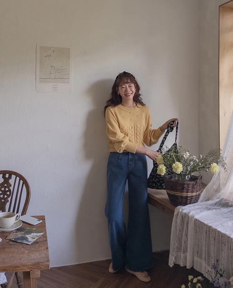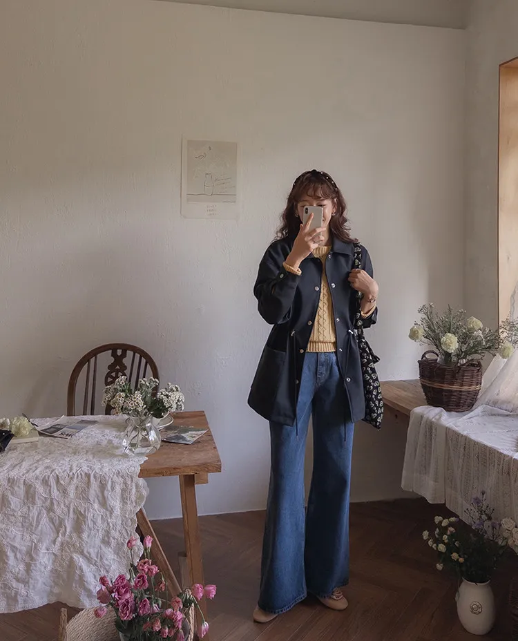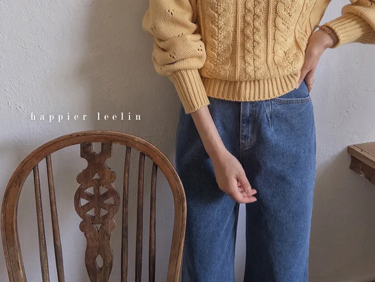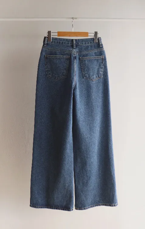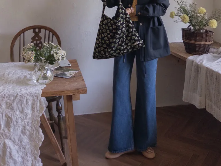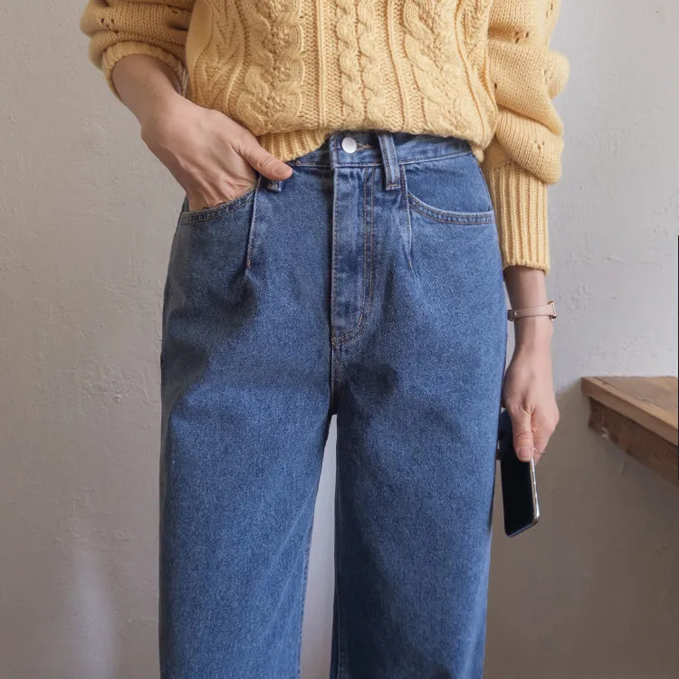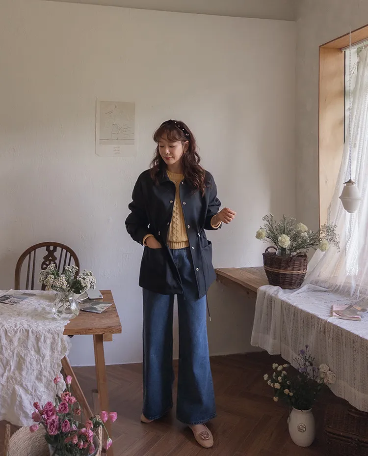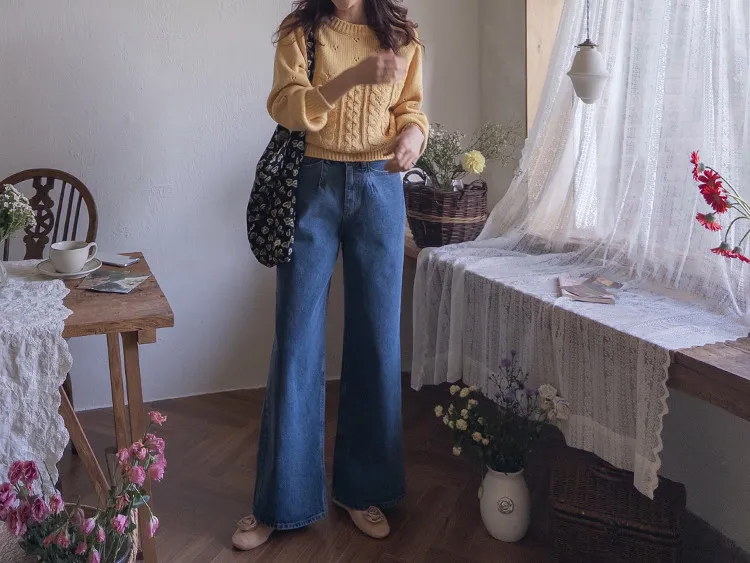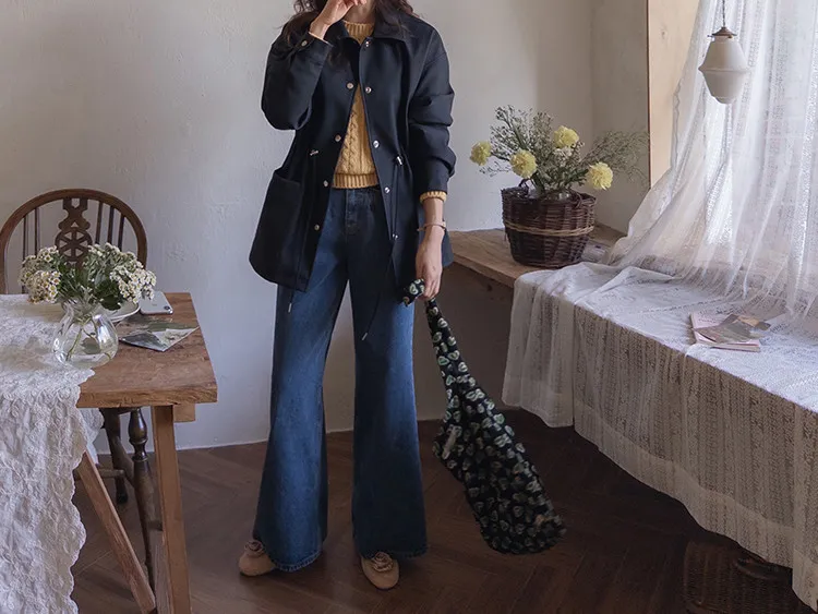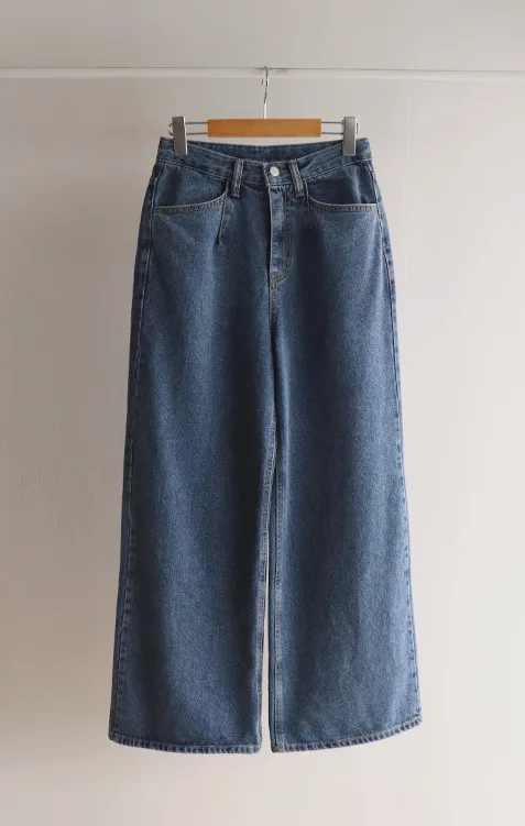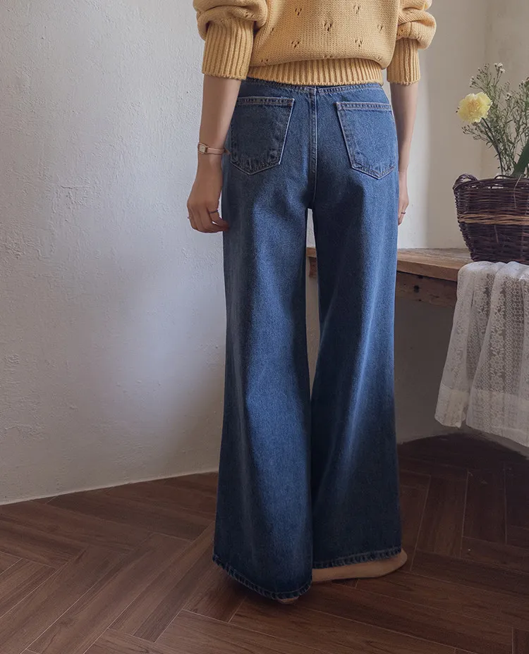 【腰部有時尚褶邊的牛仔褲】 【完美包裹下半身!寬鬆版型】 【時尚合身】 【100%純棉布料】