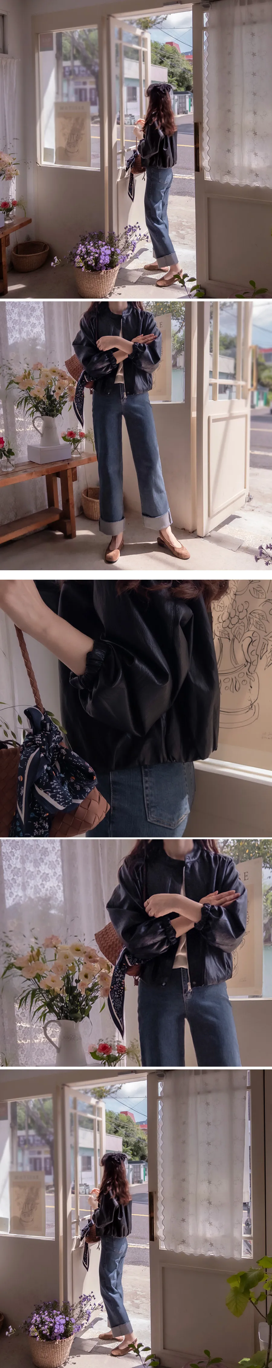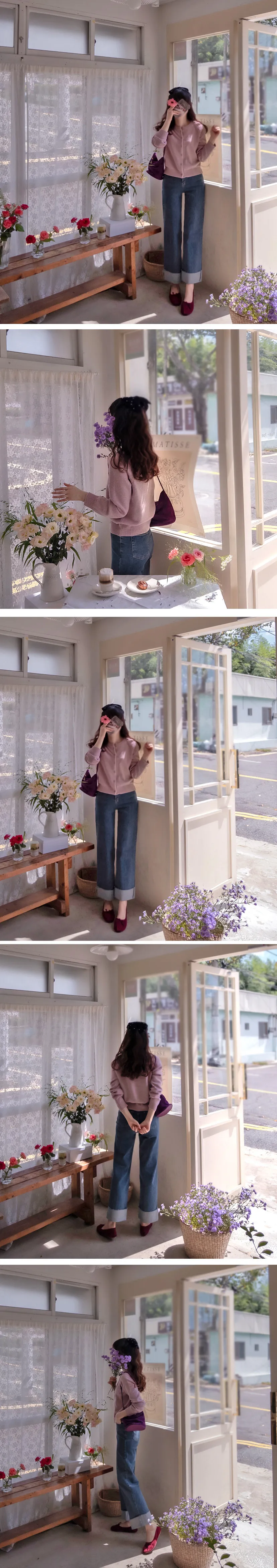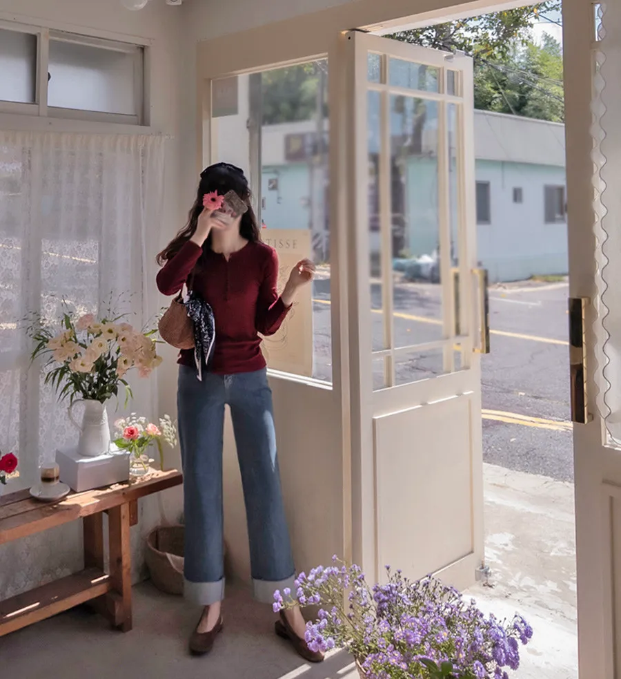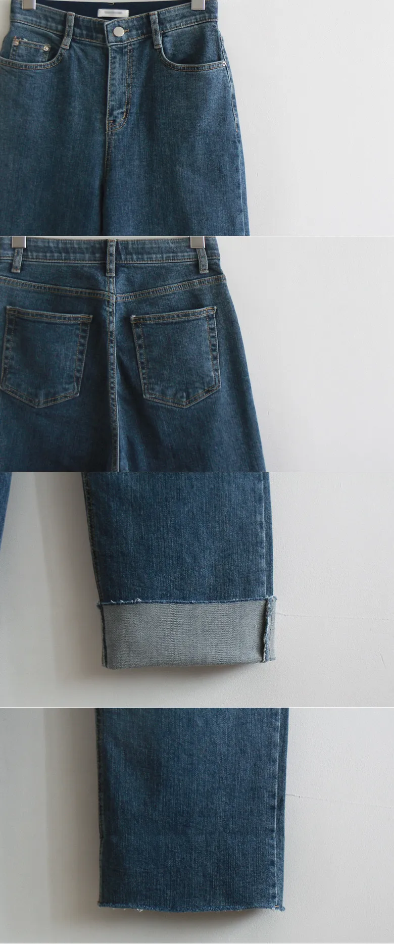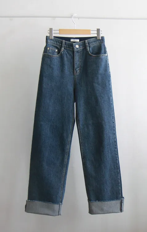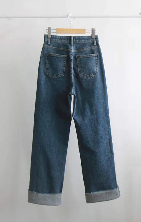 可愛穿搭捲邊褲管柔軟彈性修身直筒牛仔褲