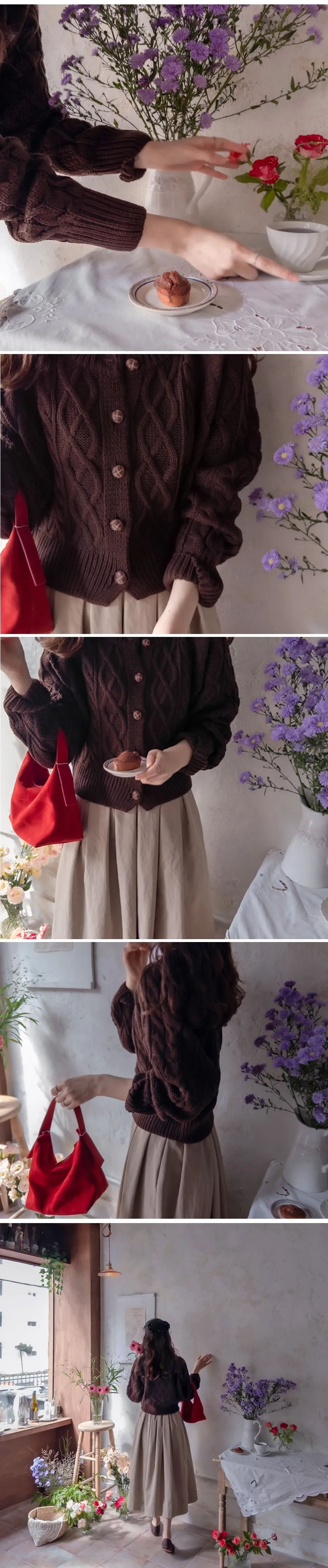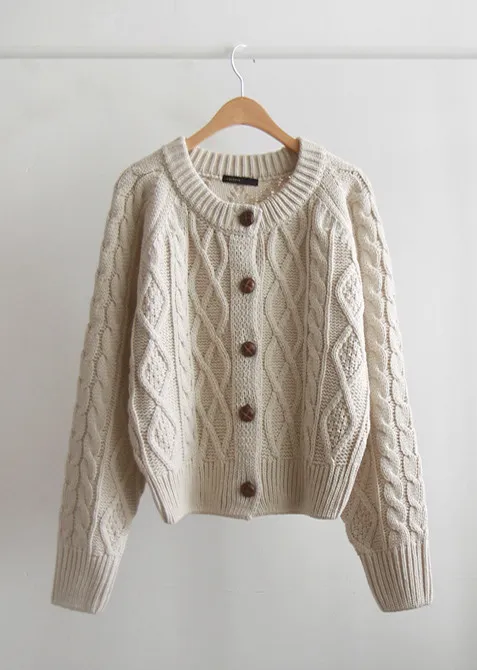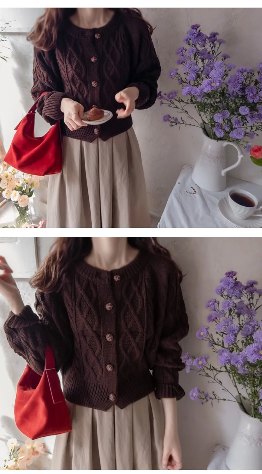 【精緻的扭曲圖案,可愛的針織】 【厚實度適中,可作為外套穿著】 【時尚色彩】 【適合秋季外套穿著的針織開衫】 【優雅又時尚的針織】 【適合日常搭配的秋季色彩針織】