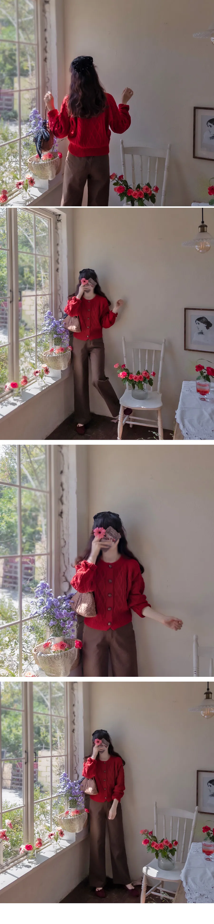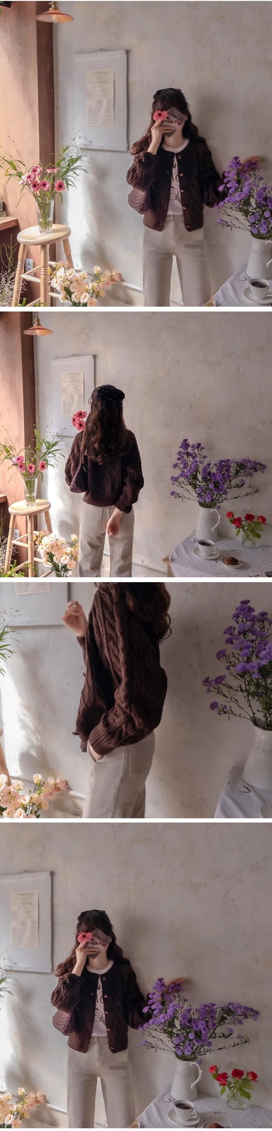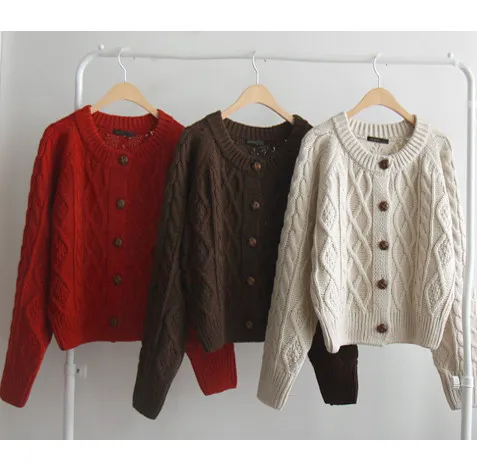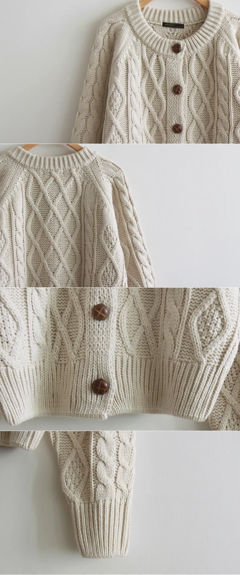 【精緻的扭曲圖案,可愛的針織】 【厚實度適中,可作為外套穿著】 【時尚色彩】 【適合秋季外套穿著的針織開衫】 【優雅又時尚的針織】 【適合日常搭配的秋季色彩針織】