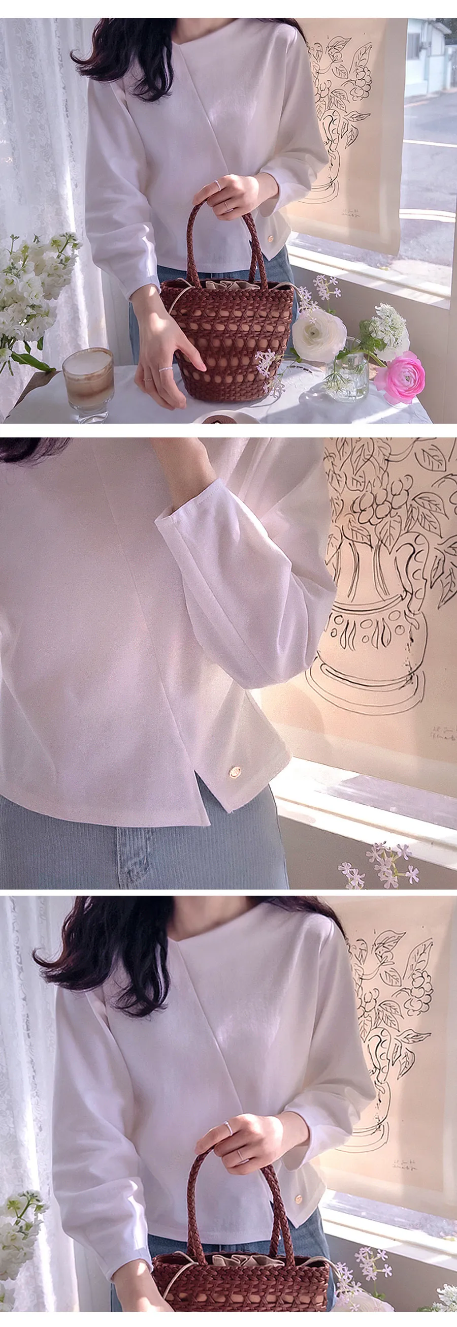 【柔軟的氨綸觸感,舒適的布料】 【剪裁很漂亮】 【衣身採用斜紋設計,散發獨特魅力】 【下擺的吊墜和飾邊營造出精緻氛圍的高品質上衣】 【舒適修身的秋季上衣】 【作為優雅的高品質上衣】