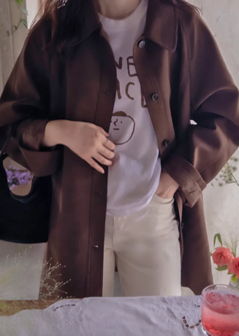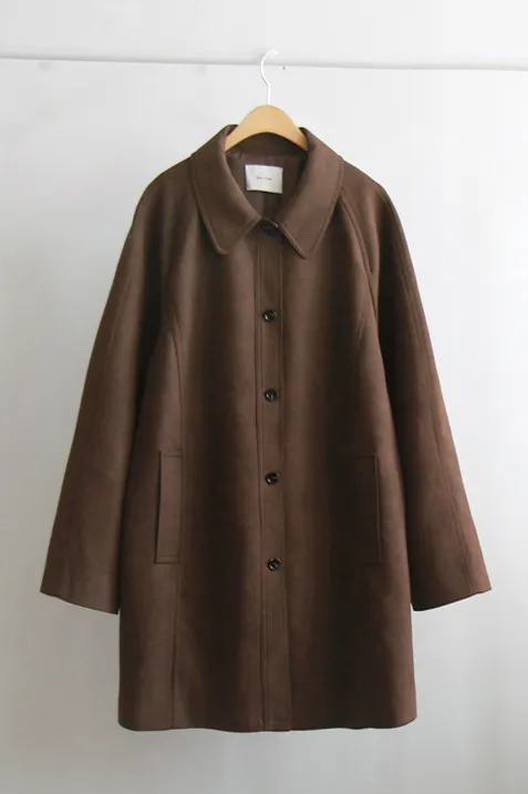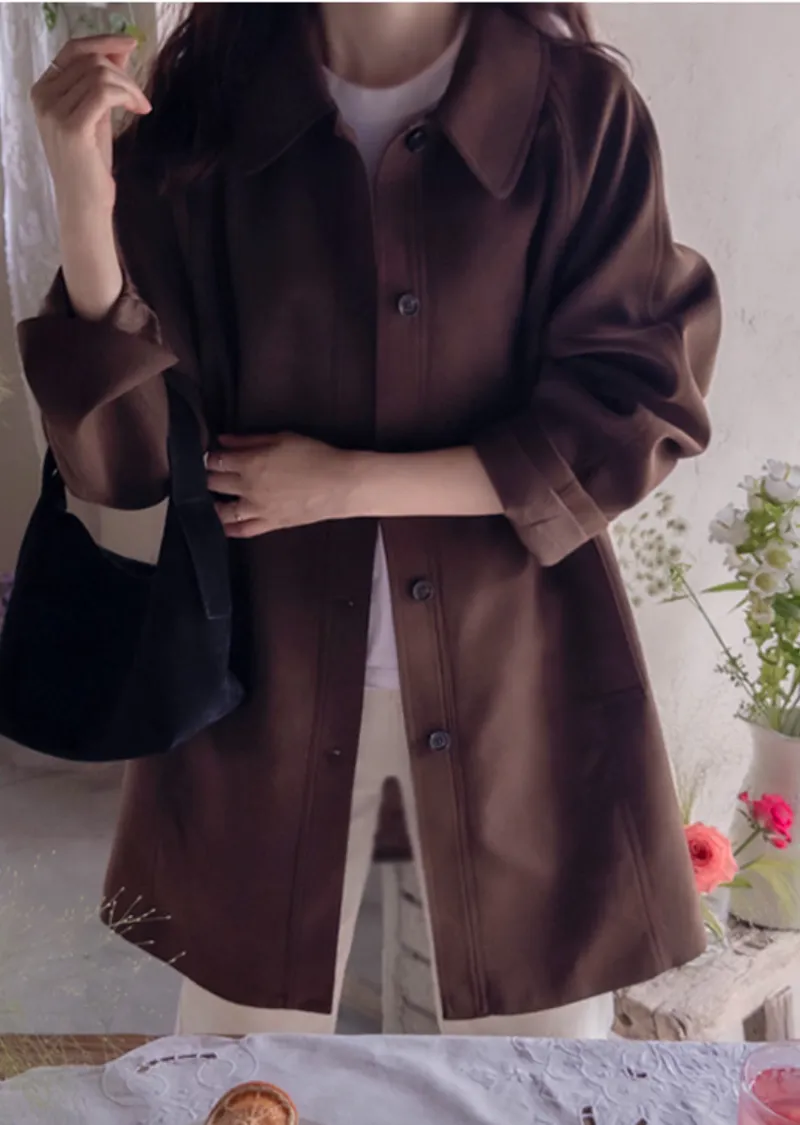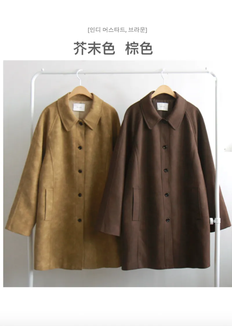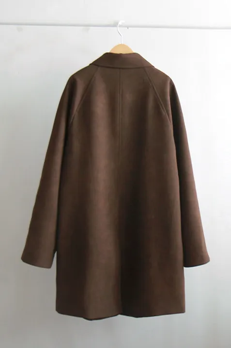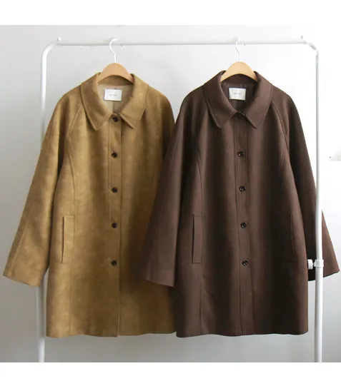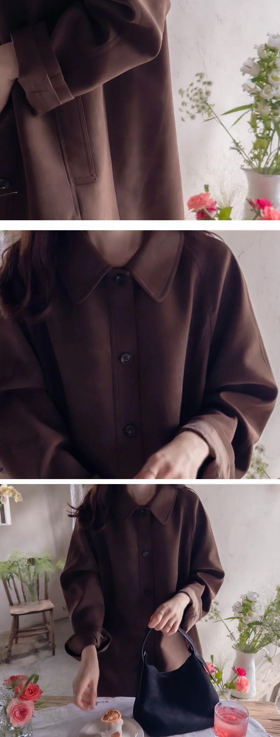 【品牌品質】【高品質絨面革奢華外套】【肩部剪裁也很漂亮】【絨面革材質營造季節氛圍】【鈕扣增添精緻感,衣領也很漂亮】【作為秋季氛圍十足的絨面革半長外套】