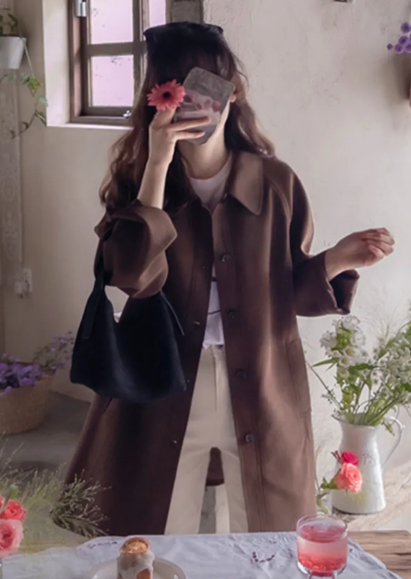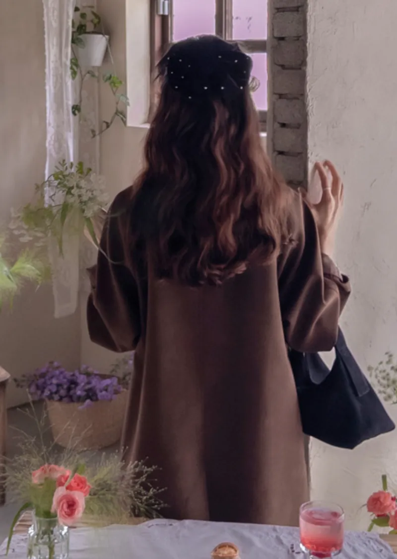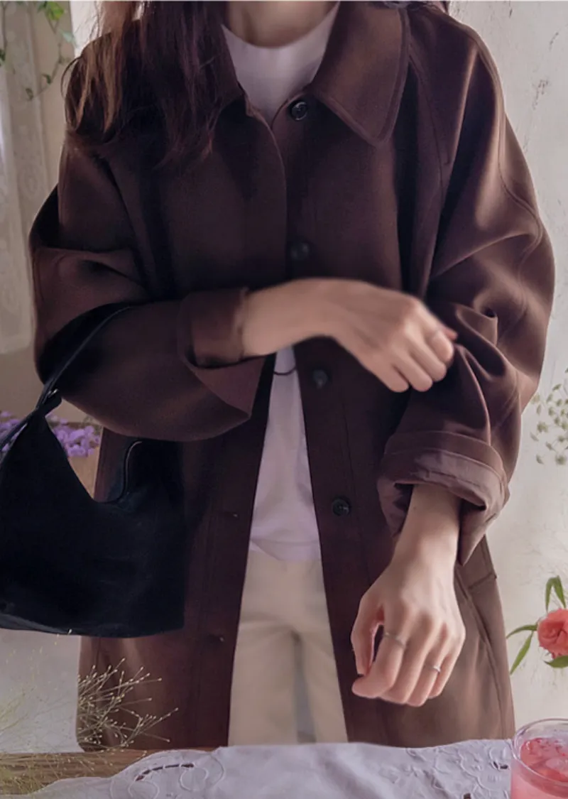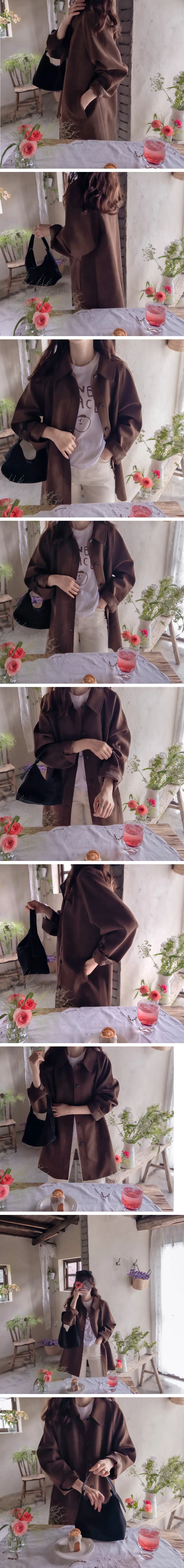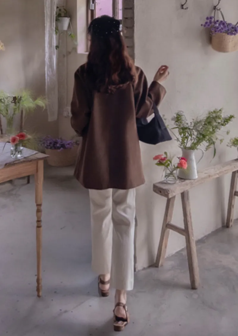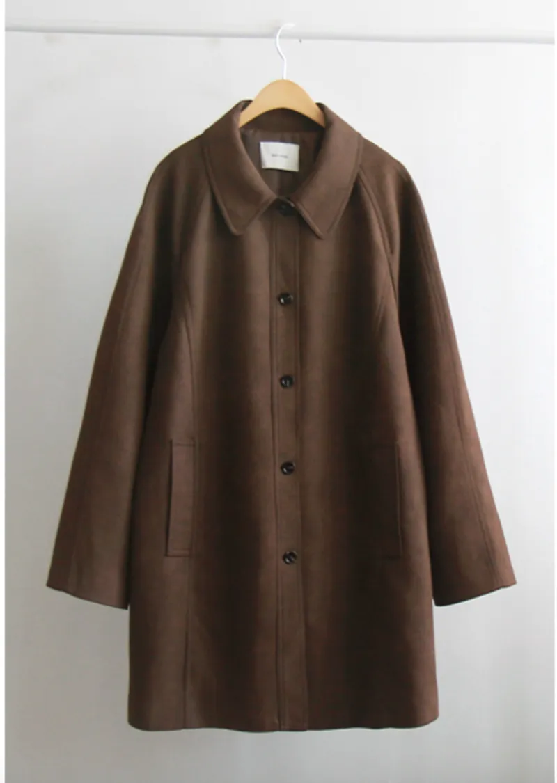 【品牌品質】【高品質絨面革奢華外套】【肩部剪裁也很漂亮】【絨面革材質營造季節氛圍】【鈕扣增添精緻感,衣領也很漂亮】【作為秋季氛圍十足的絨面革半長外套】