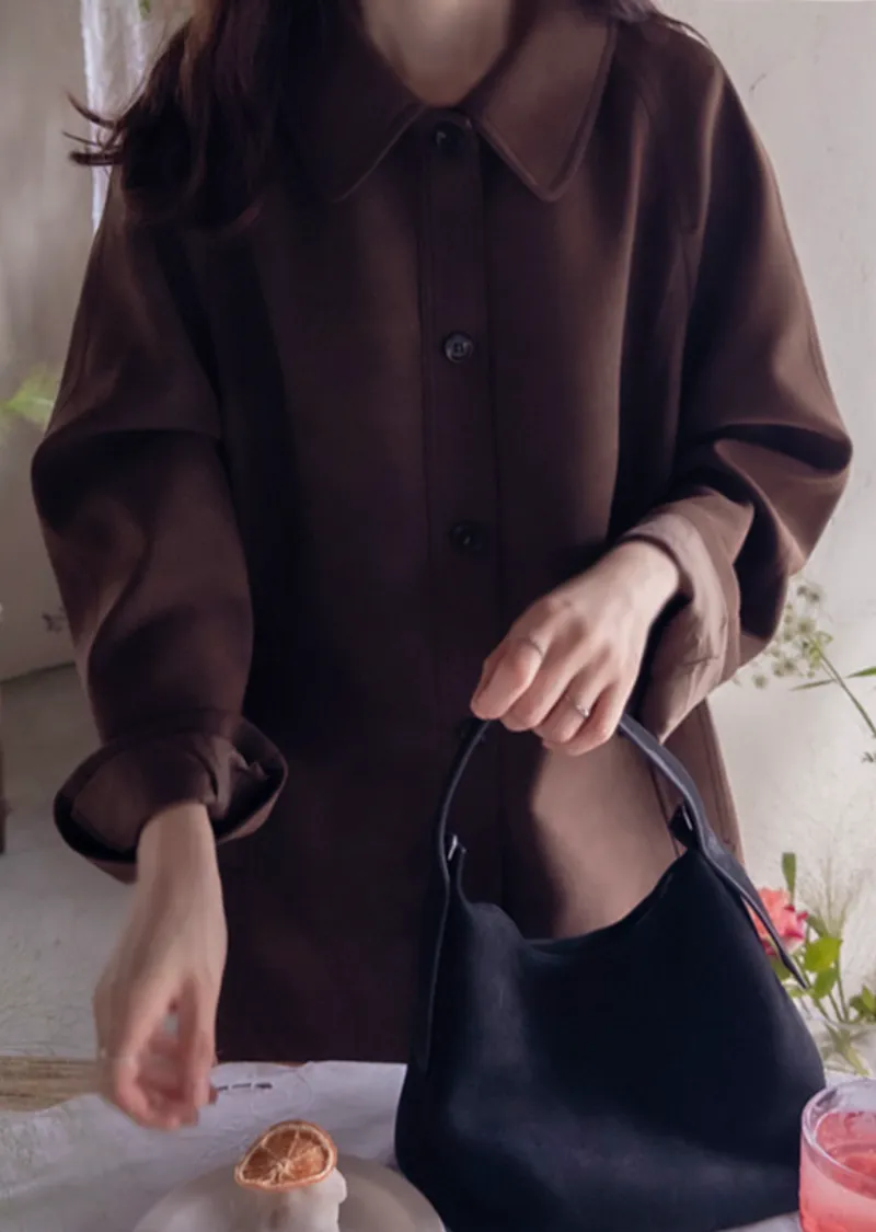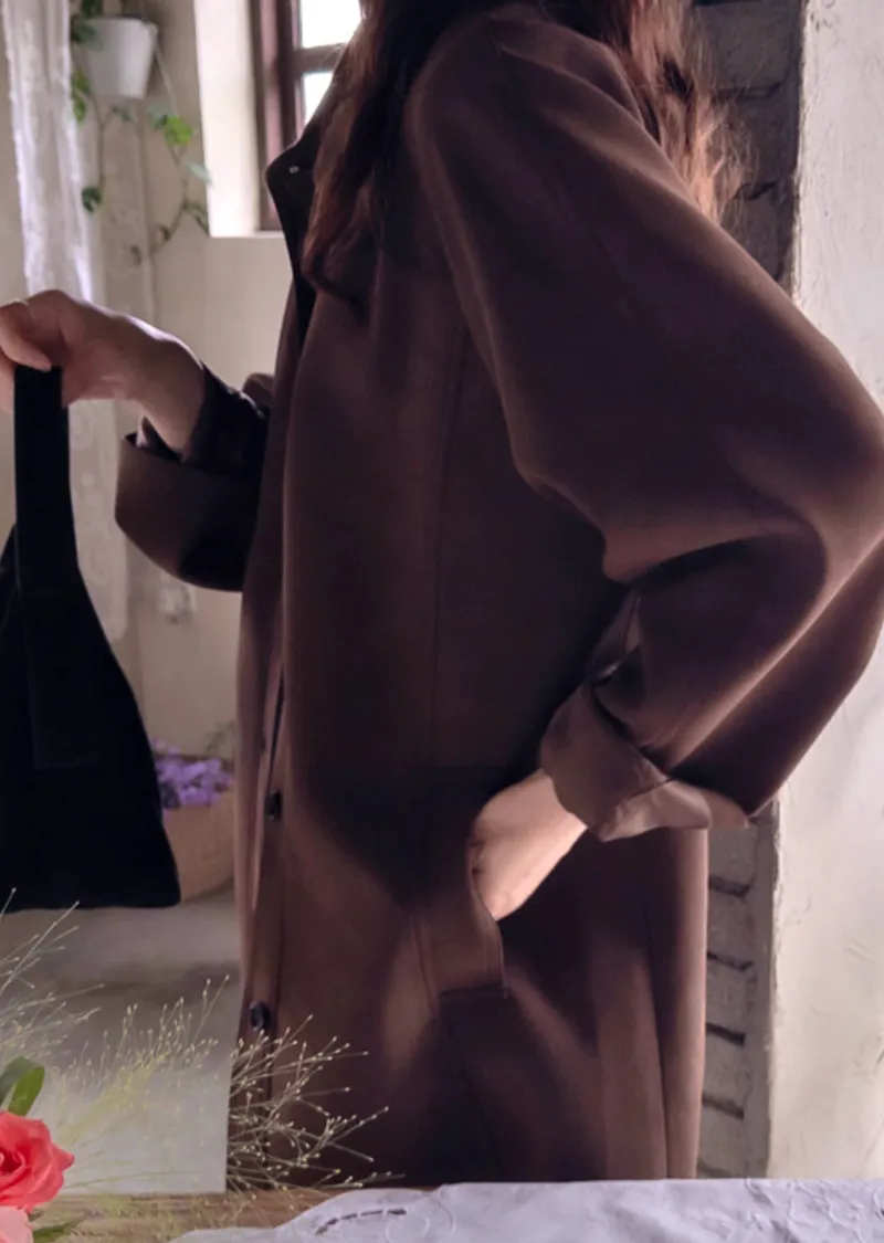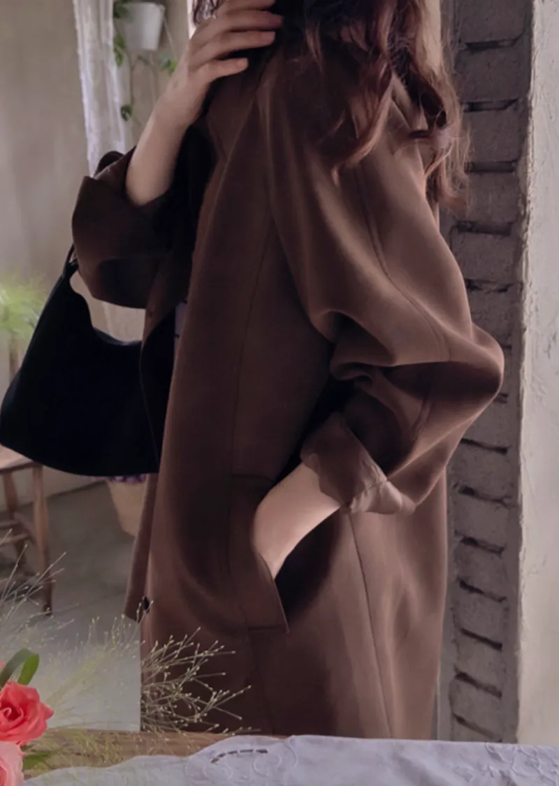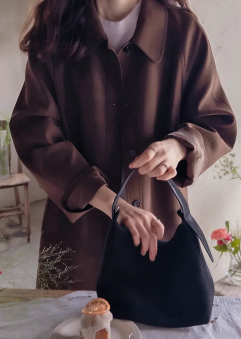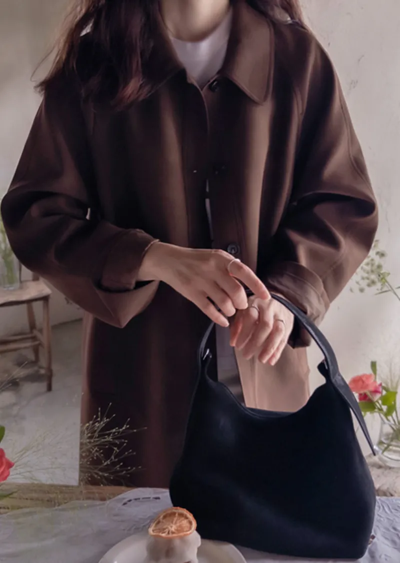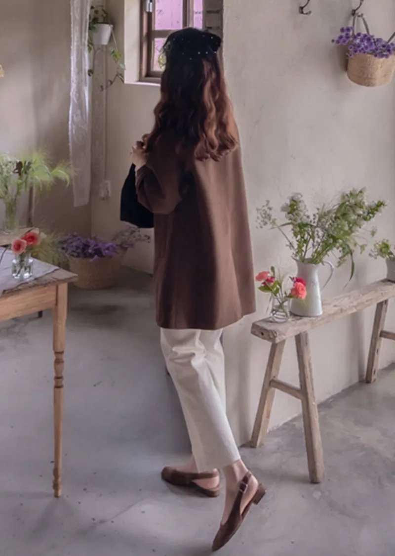【品牌品質】【高品質絨面革奢華外套】【肩部剪裁也很漂亮】【絨面革材質營造季節氛圍】【鈕扣增添精緻感,衣領也很漂亮】【作為秋季氛圍十足的絨面革半長外套】