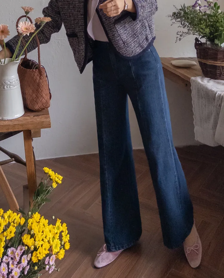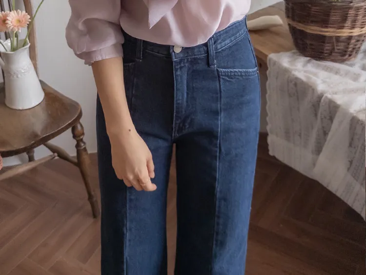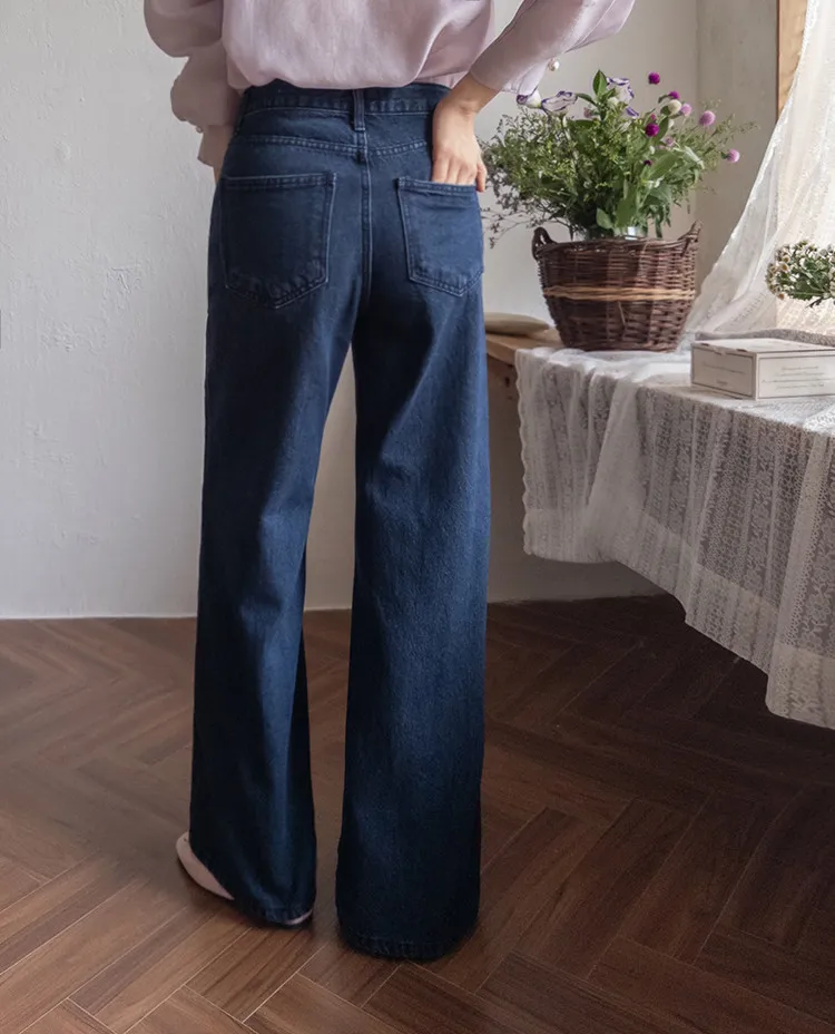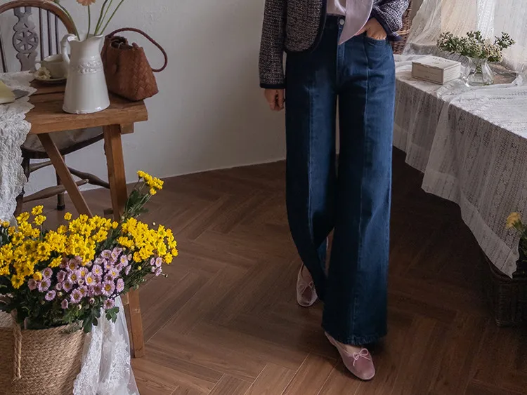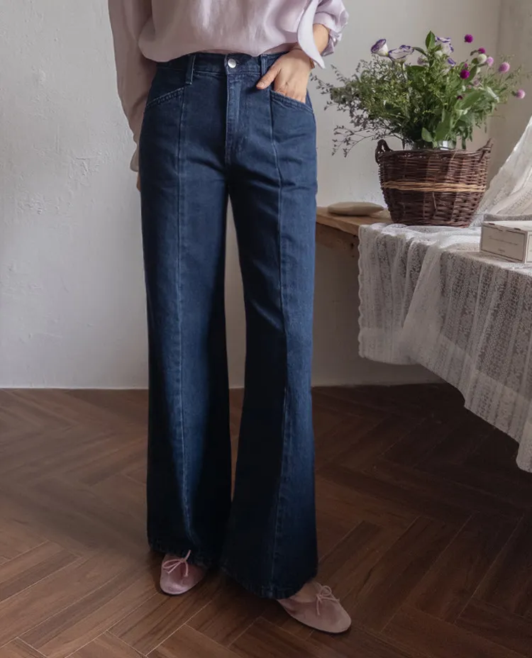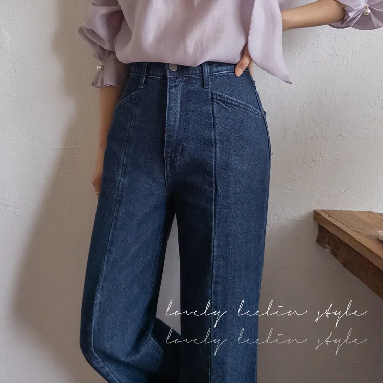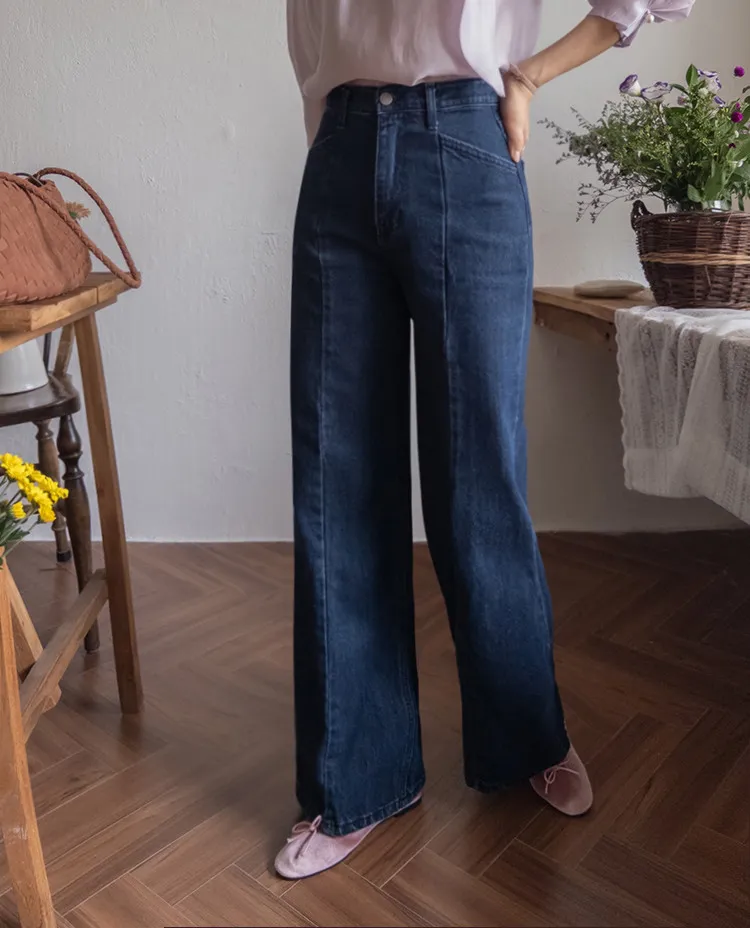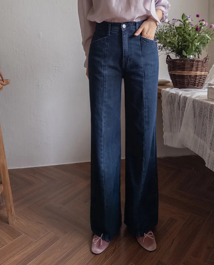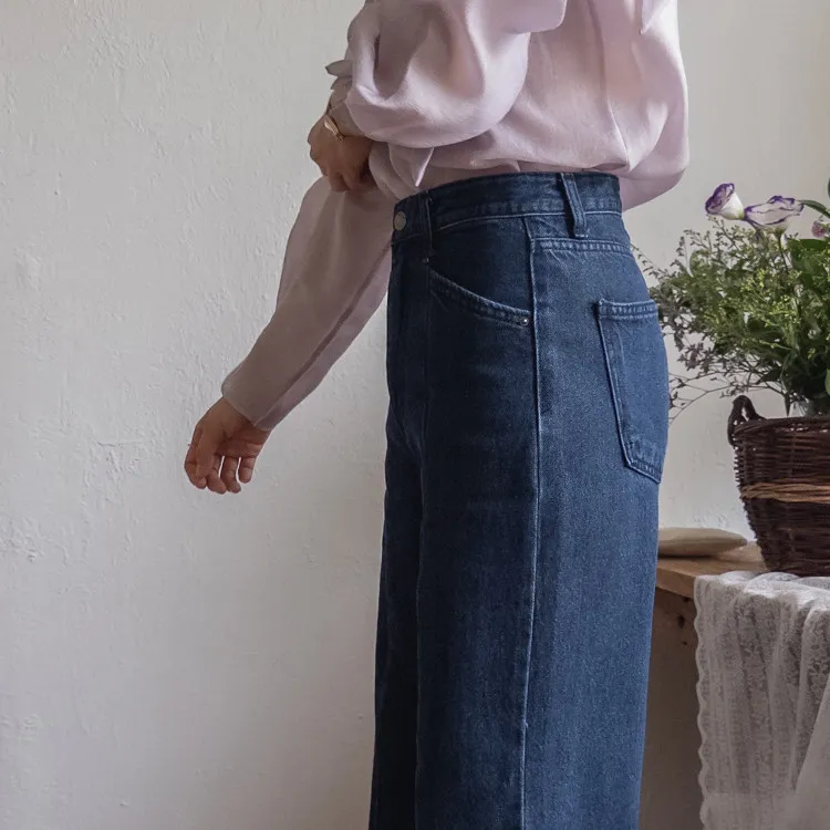 【剪裁精緻的褲子讓人眼前一亮♥】【修長直腿~直筒寬鬆版型】【適合秋季的憂鬱牛仔色】【女人味和休閒感兼具~! !百搭單品】