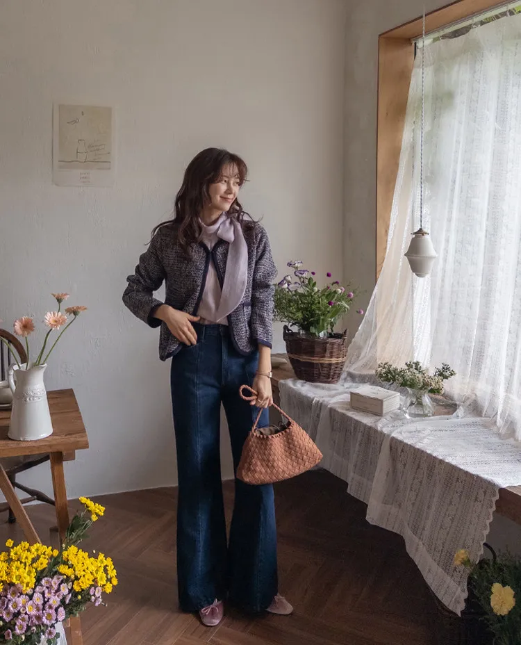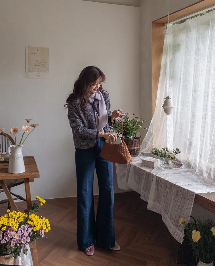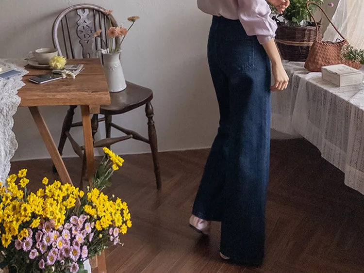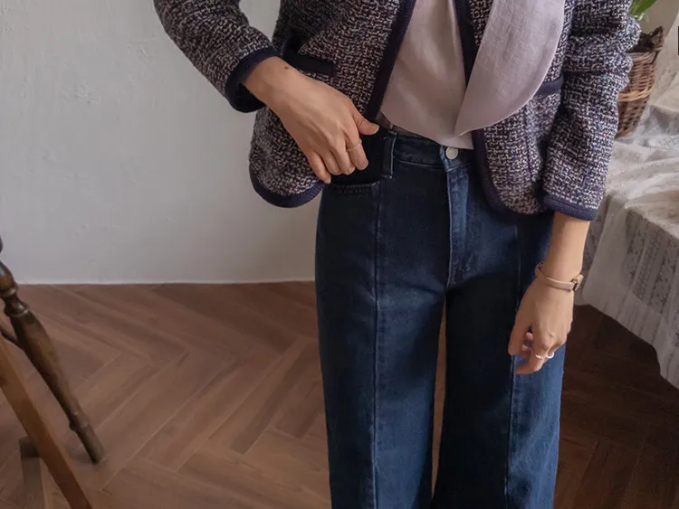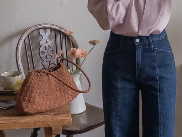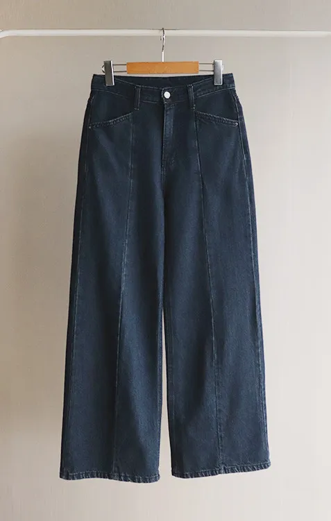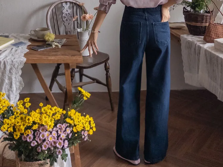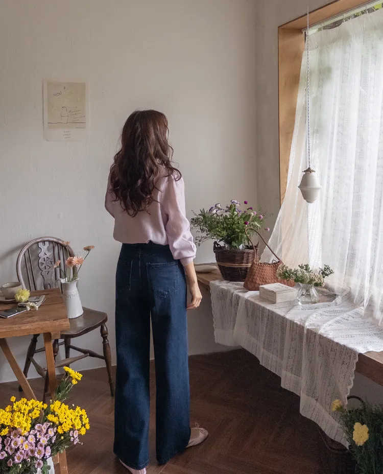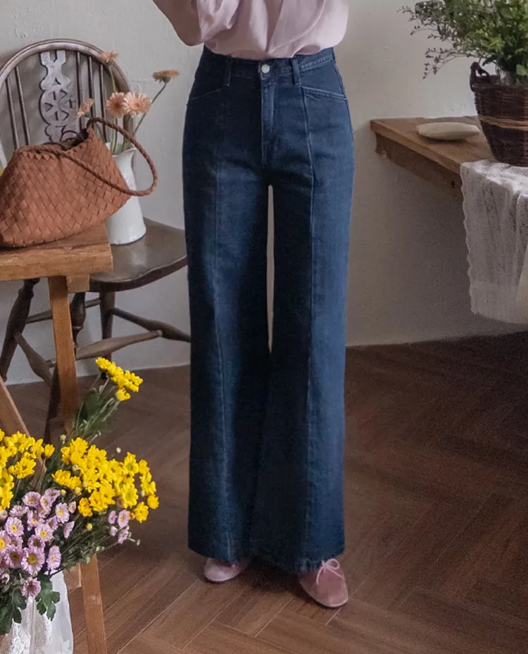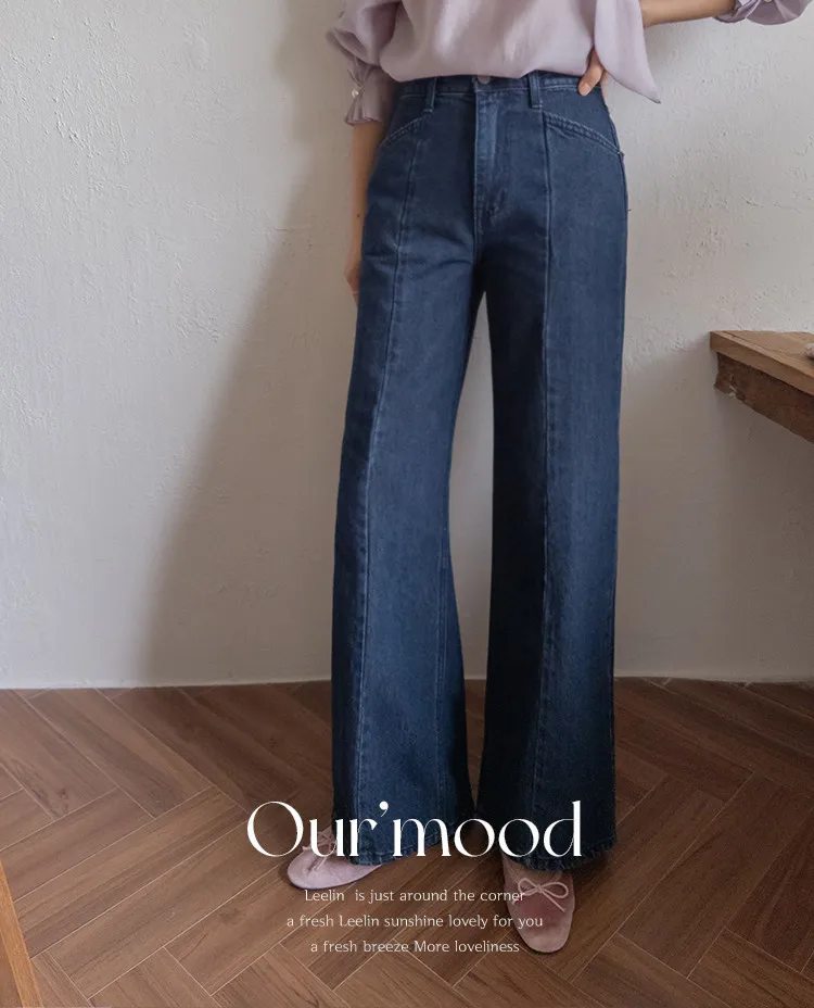 【剪裁精緻的褲子讓人眼前一亮♥】【修長直腿~直筒寬鬆版型】【適合秋季的憂鬱牛仔色】【女人味和休閒感兼具~! !百搭單品】