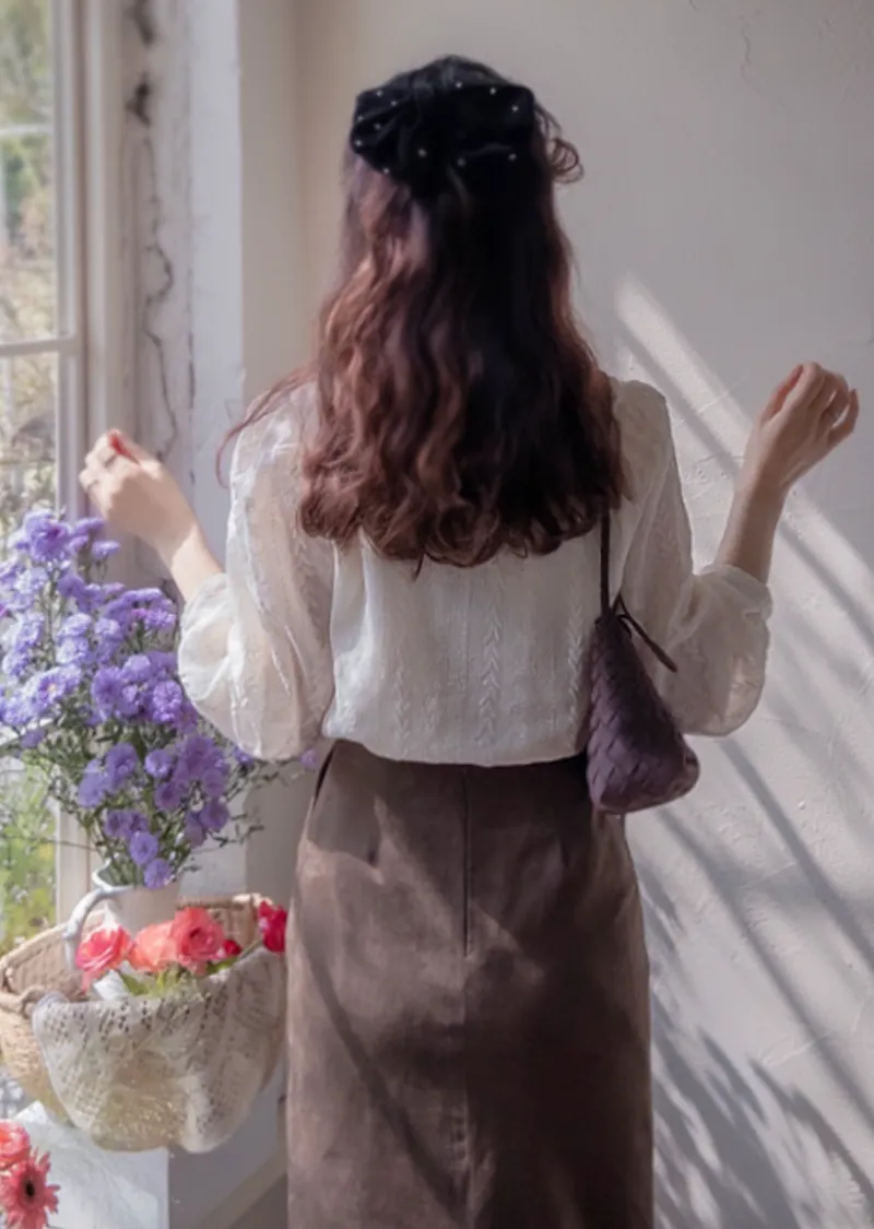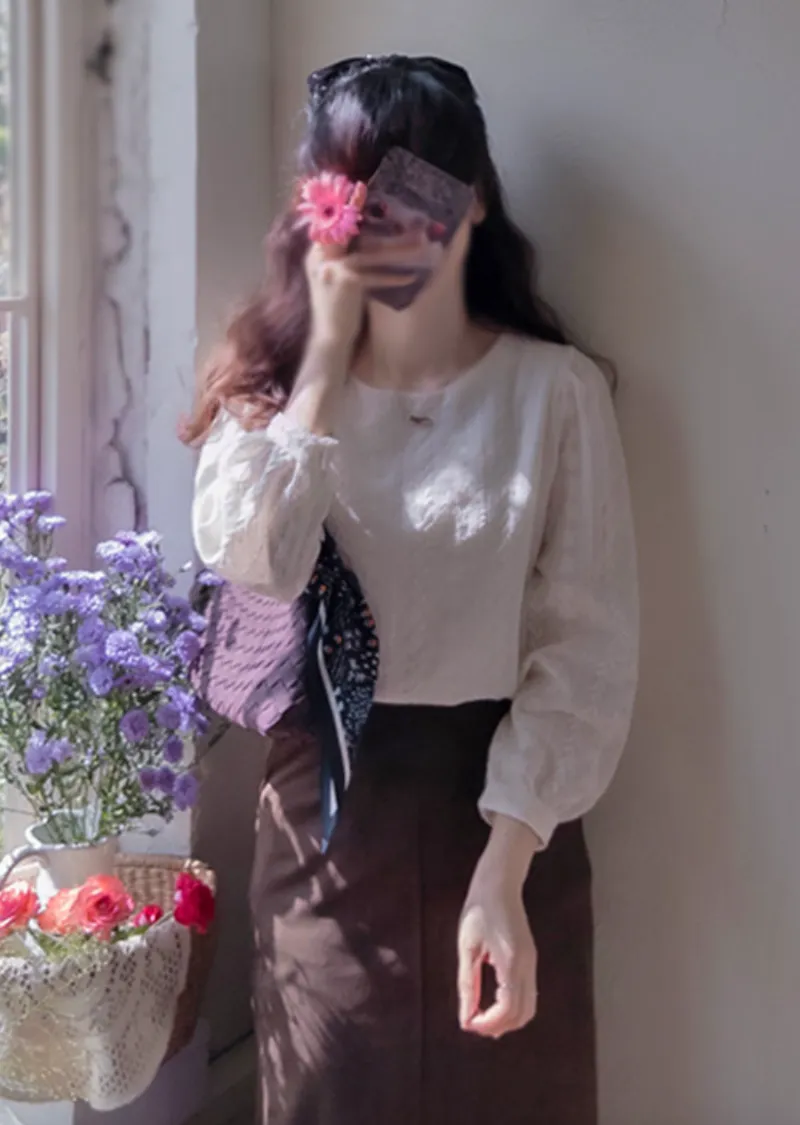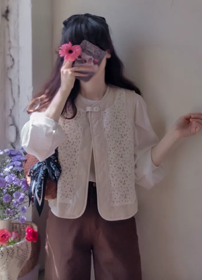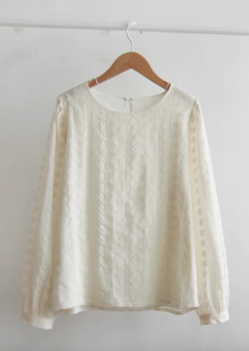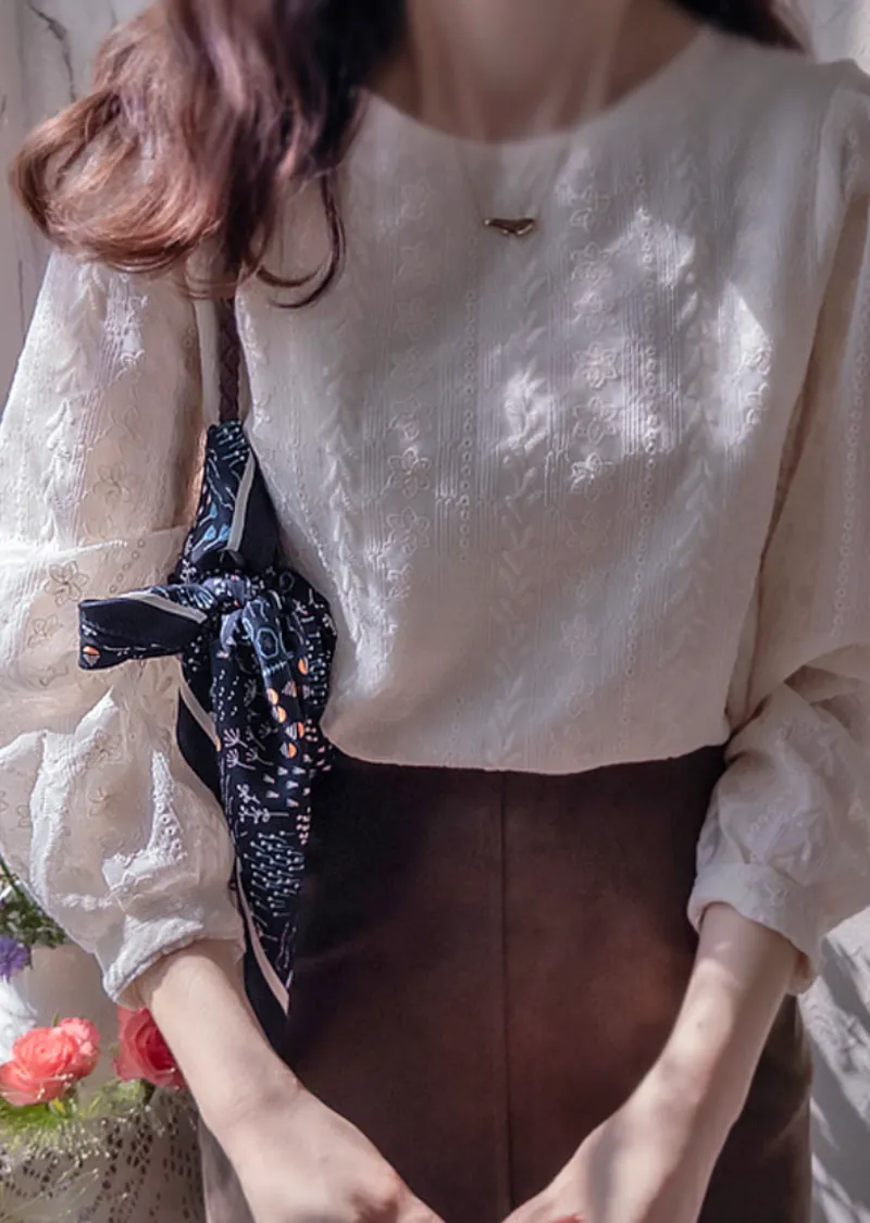 [衣身裡料:聚酯纖維] [精緻的花卉刺繡,設計可愛] [花卉刺繡與迷你鏤空刺繡相結合的肩線剪裁設計,漂亮優雅的上衣] [適合秋季穿著的明亮或精緻的顏色]