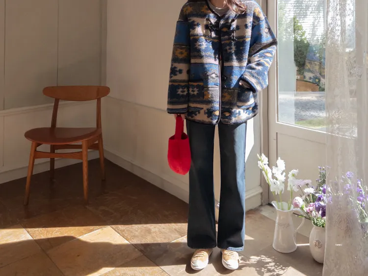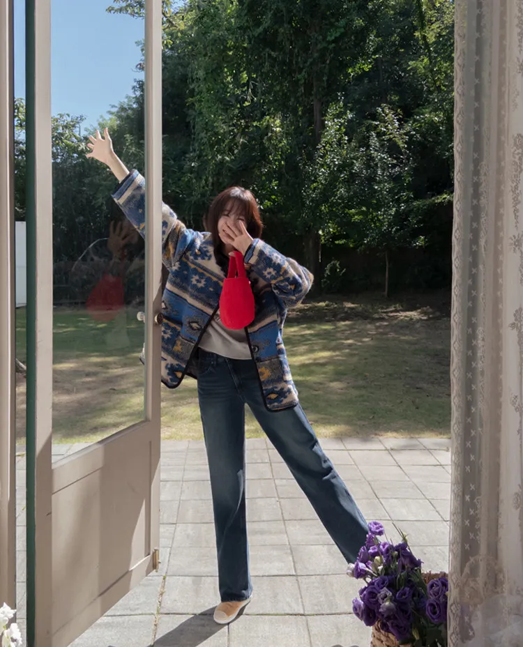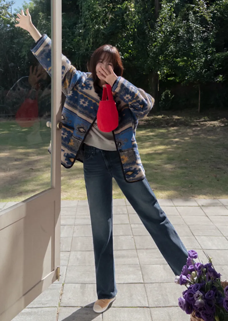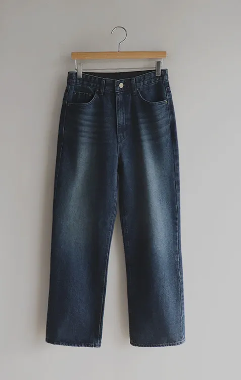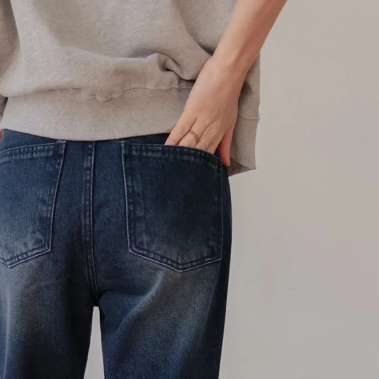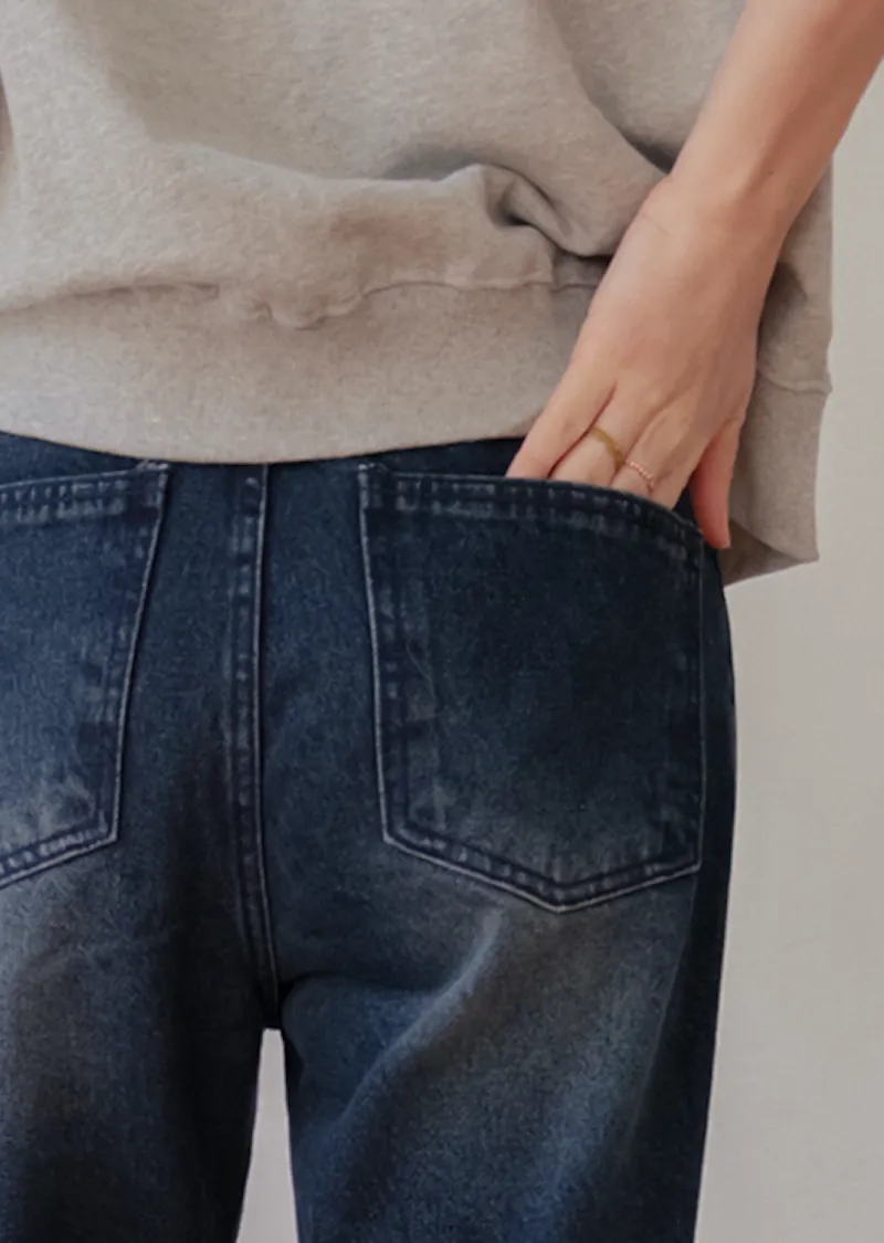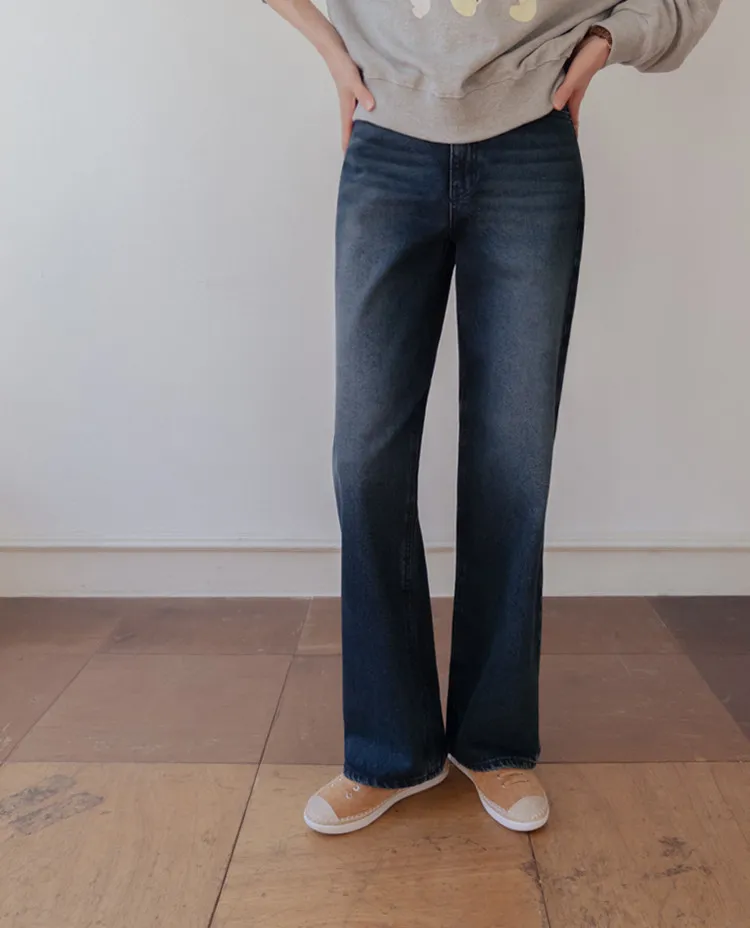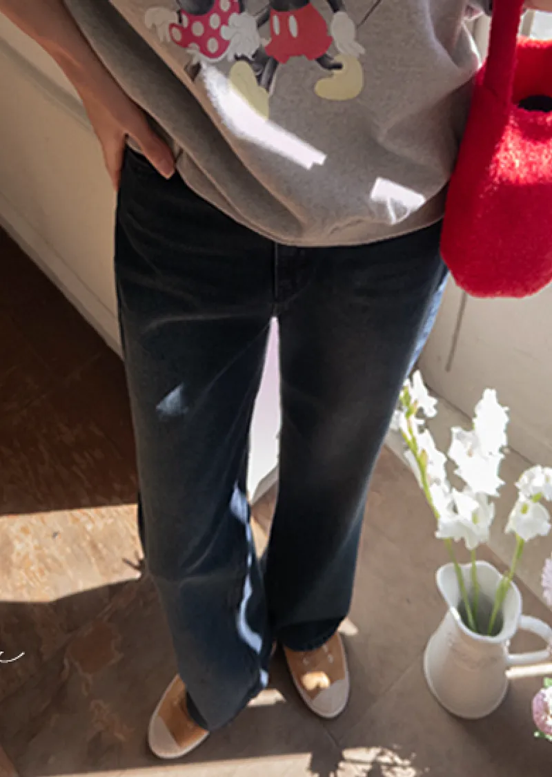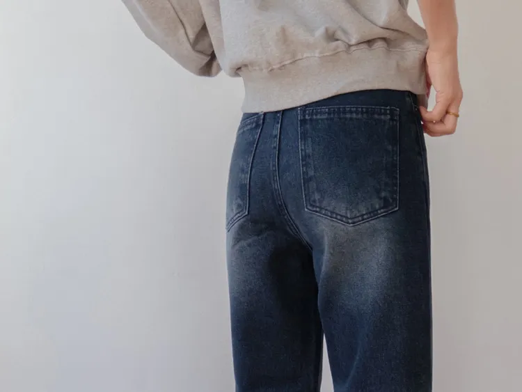 迷人憂鬱色感深藍直筒修身牛仔褲