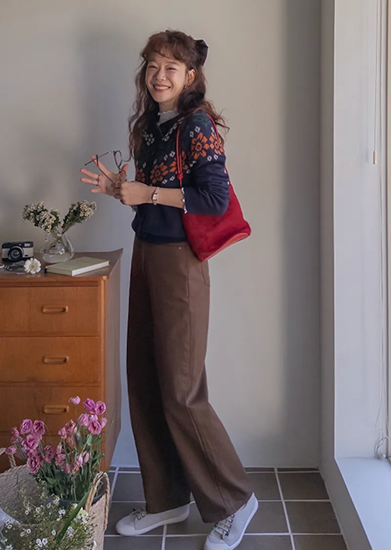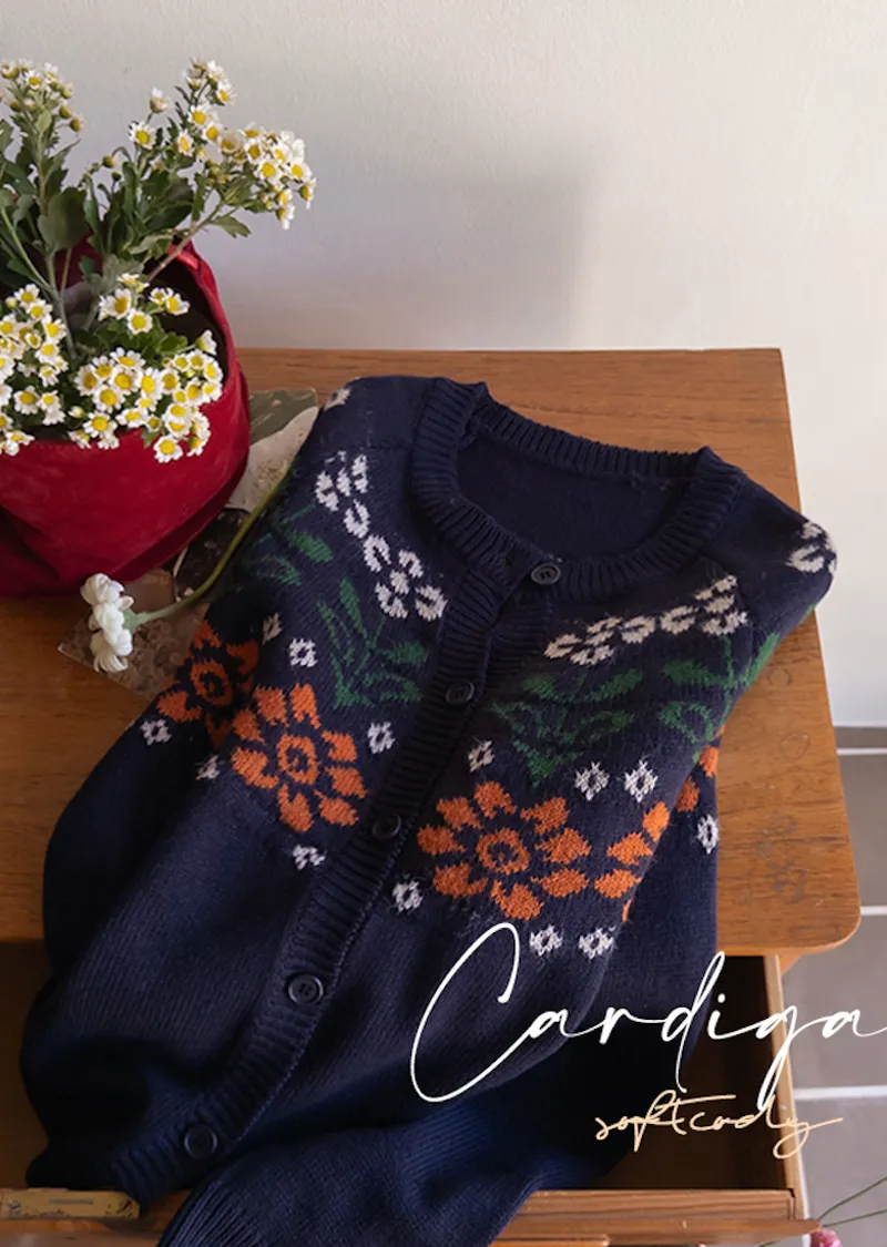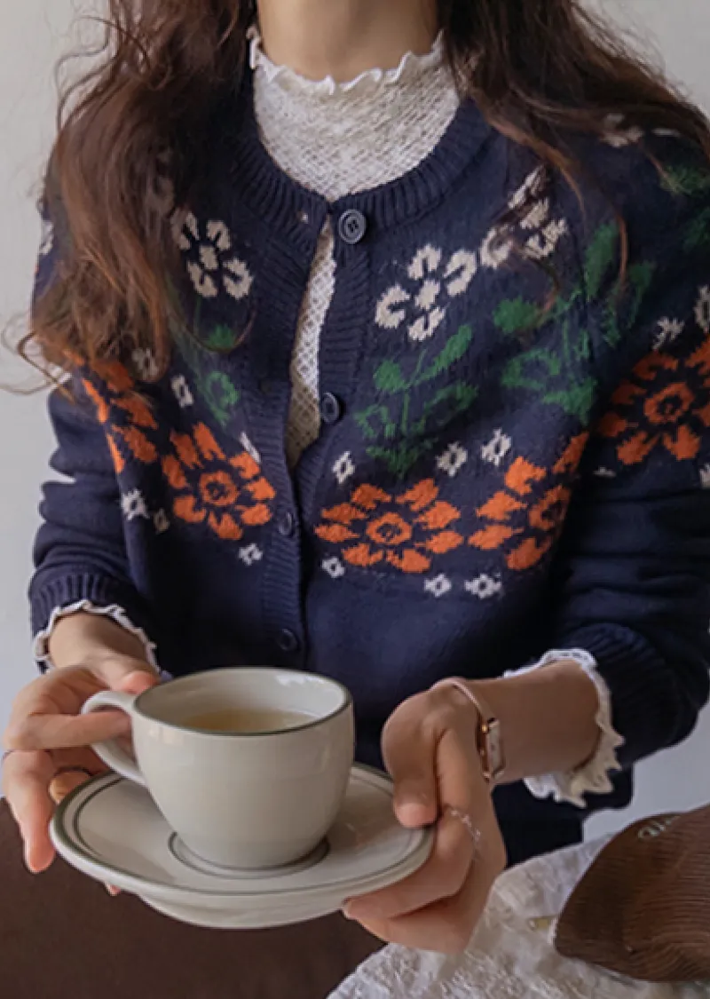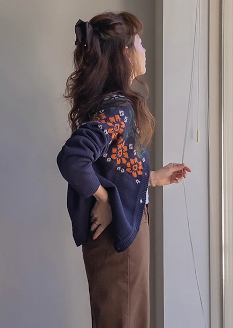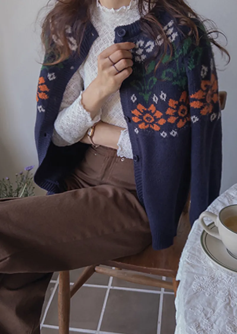【可愛的花朵緹花圖案開衫♥】【含有10%的舒適羊毛】【獨特的配色,凸顯了整體的亮點! 】【穿上就完成時尚造型】