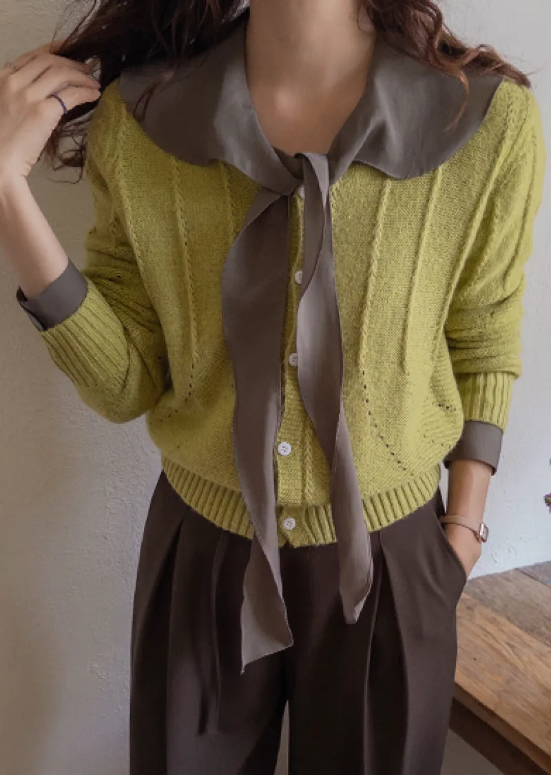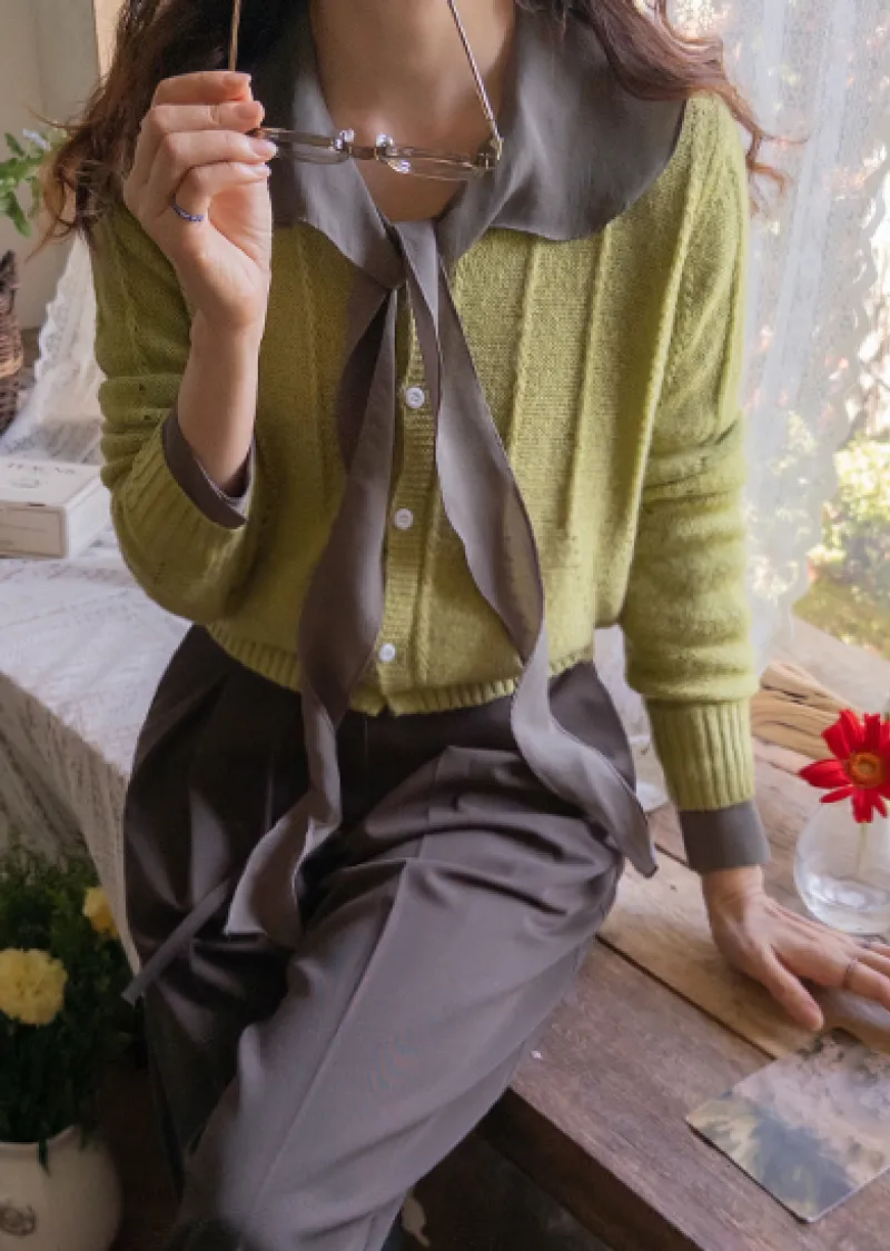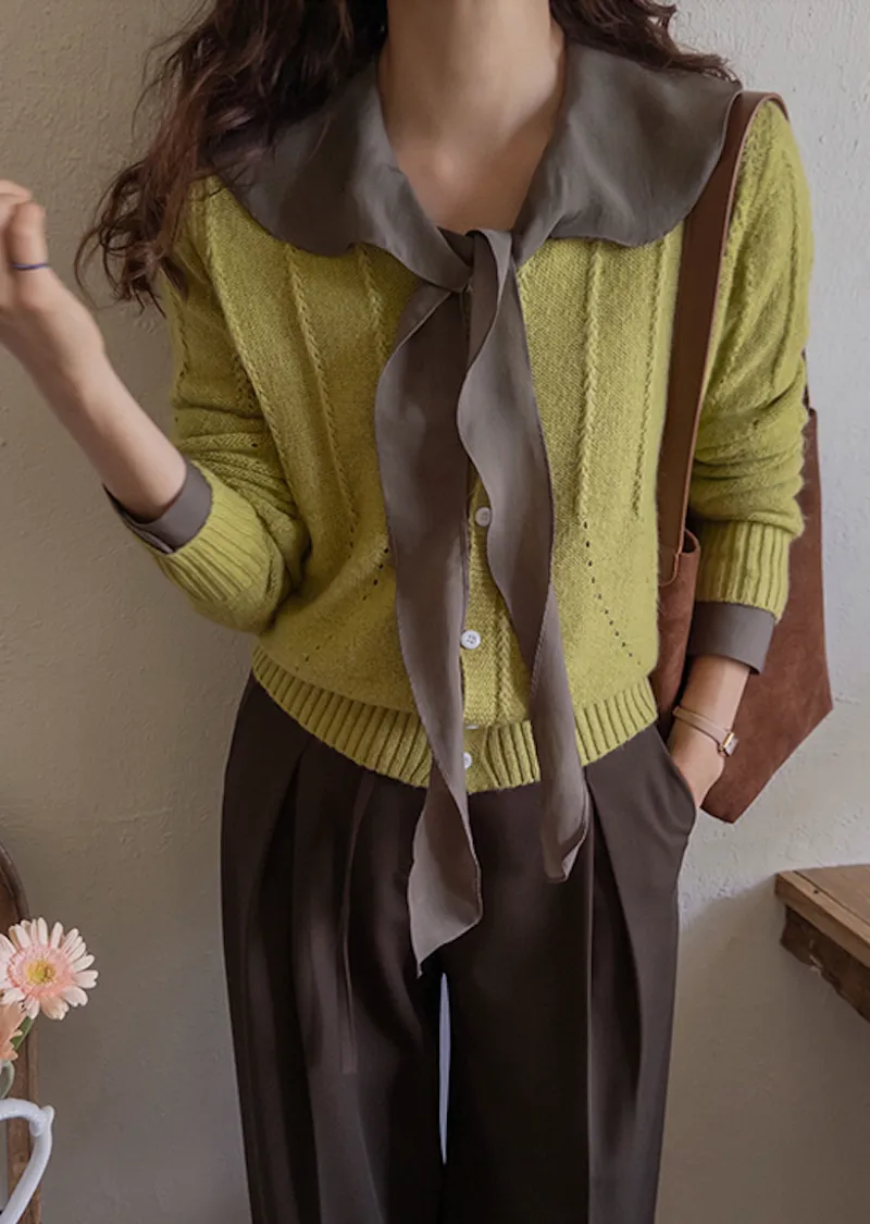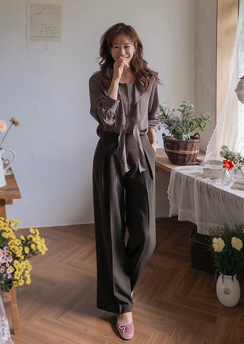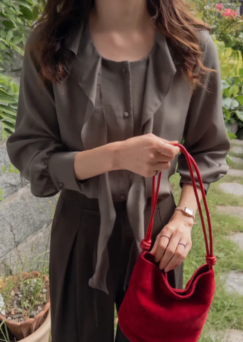 浪漫飄逸荷葉摺邊綁帶領排扣上衣