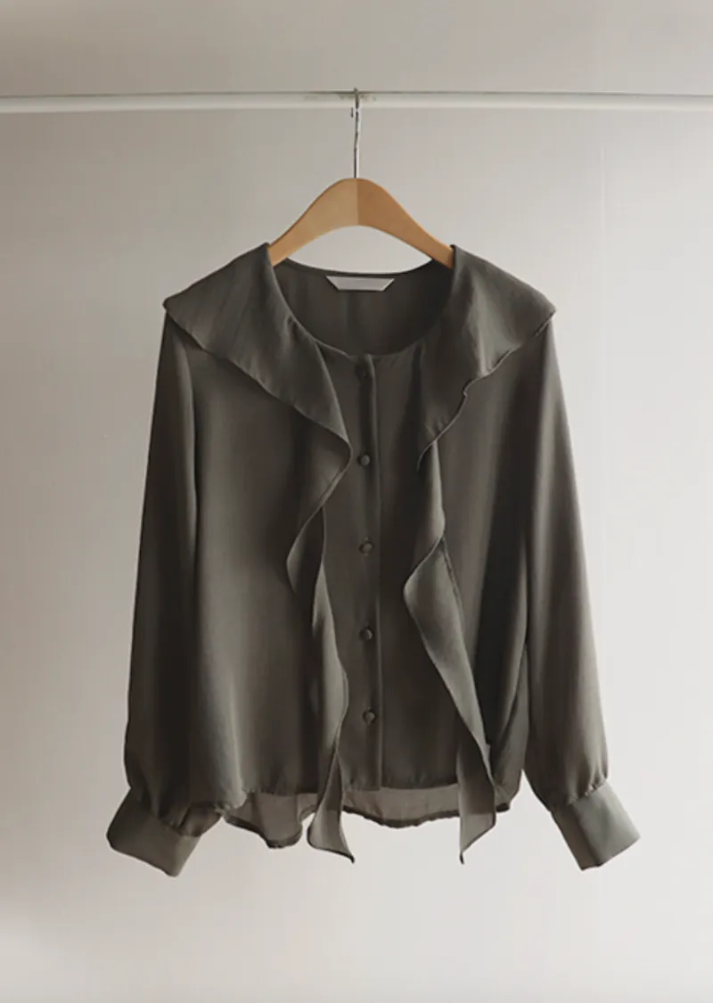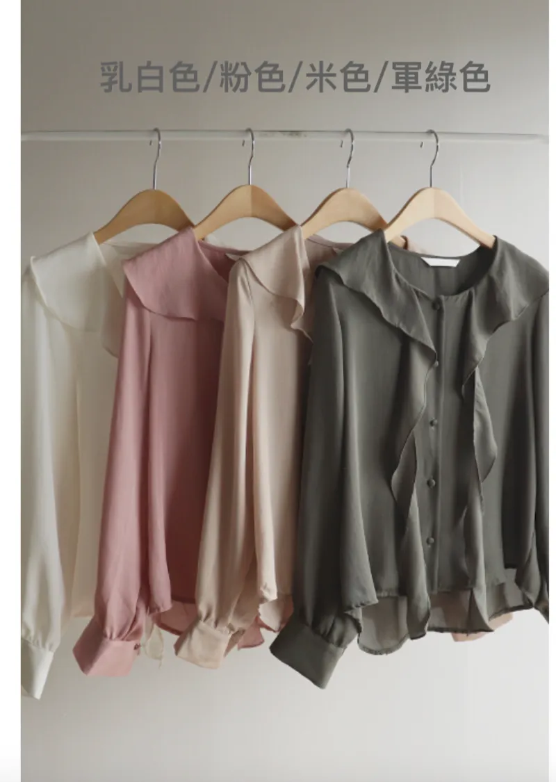 【浪漫飄逸的荷葉邊襯衫**♥*】 【輕盈】 【零皺紋!防皺布料】 【穿上的瞬間,心情變得細膩可愛】