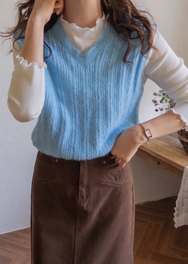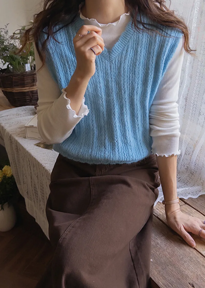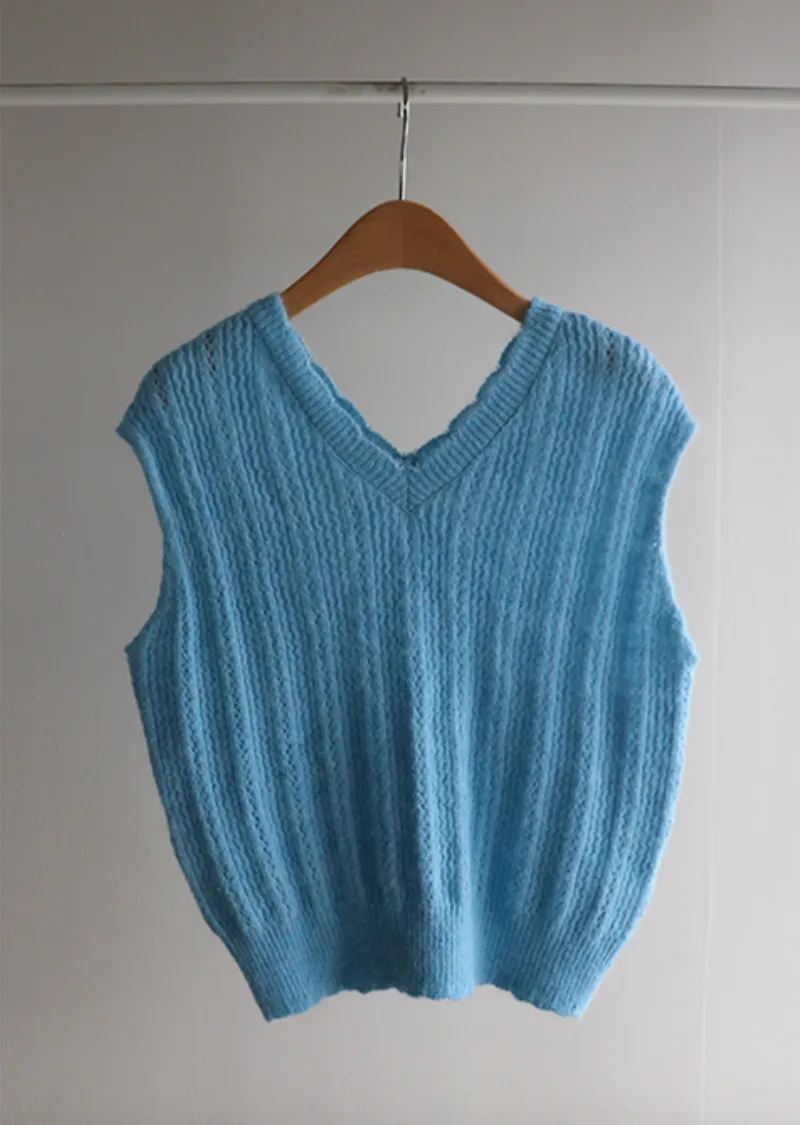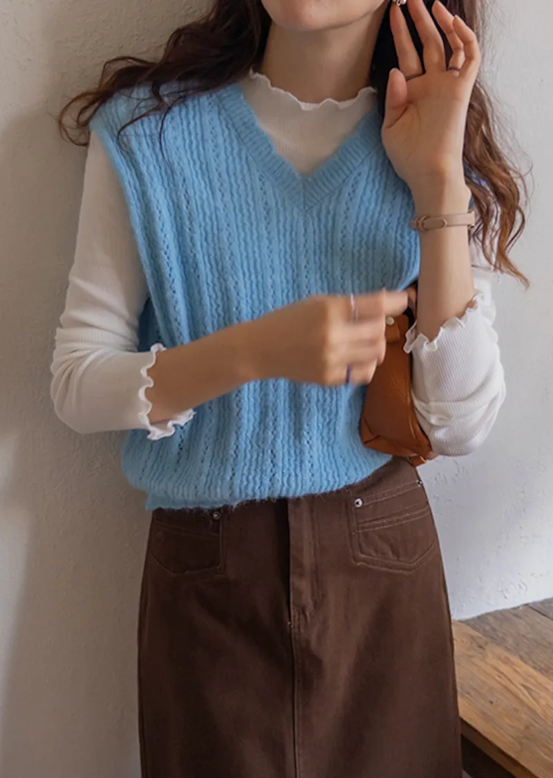 可愛V領波浪線垂直線條分層穿搭針織背心