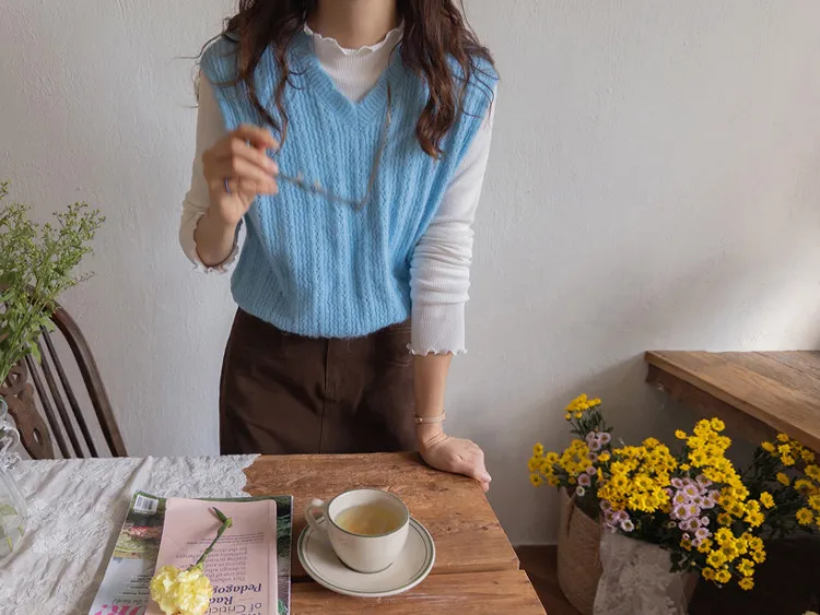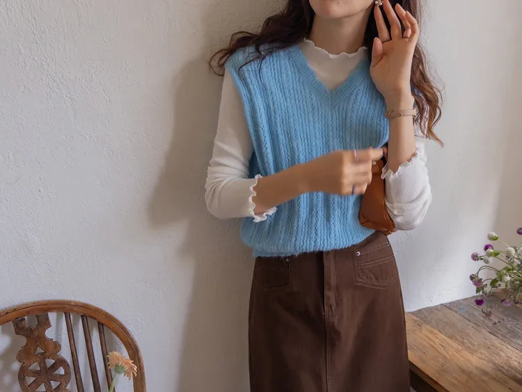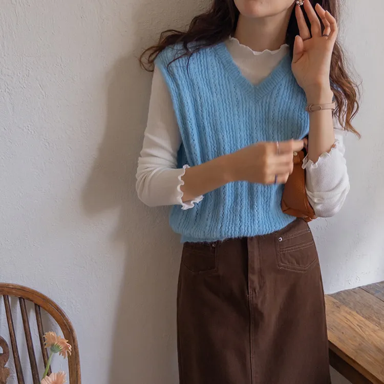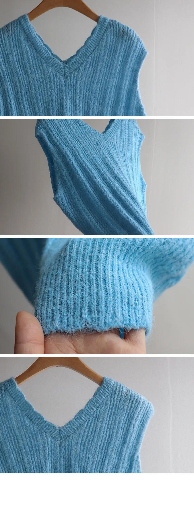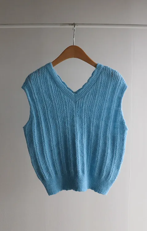 可愛V領波浪線垂直線條分層穿搭針織背心