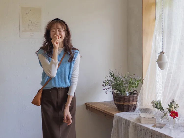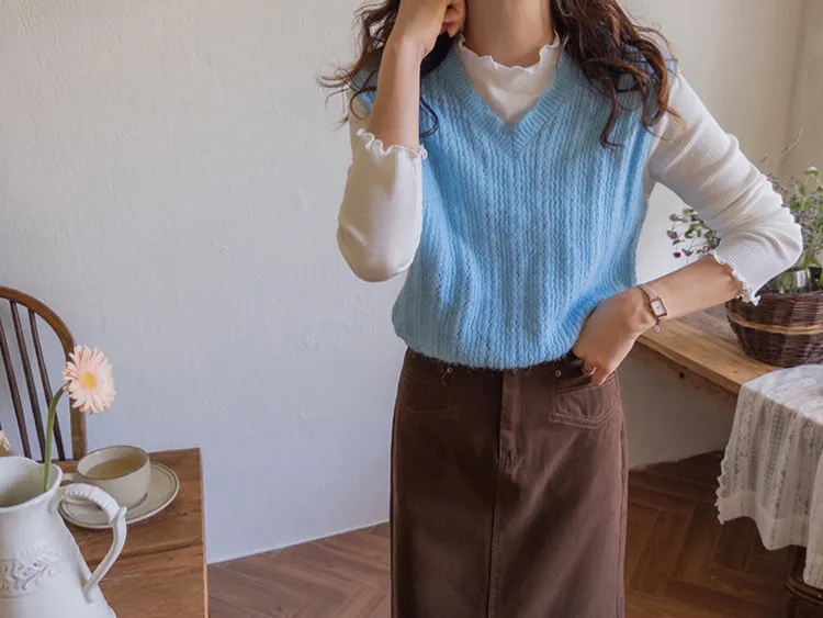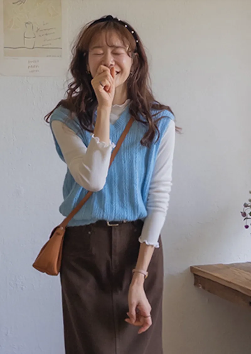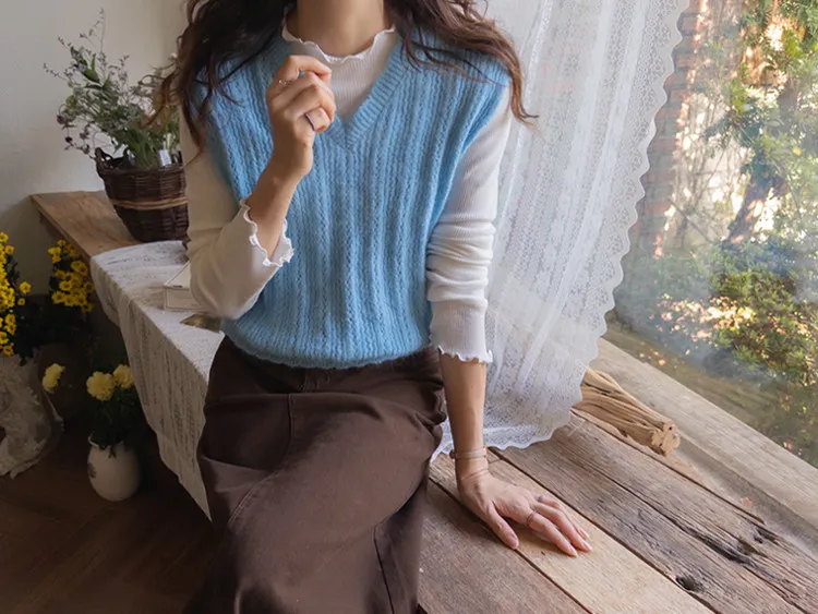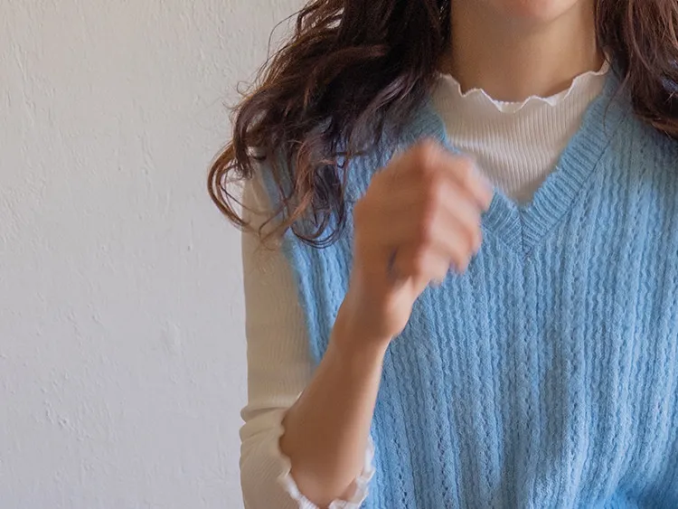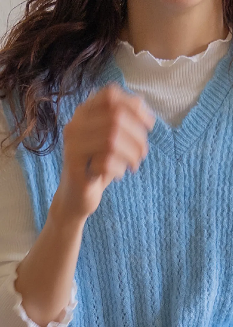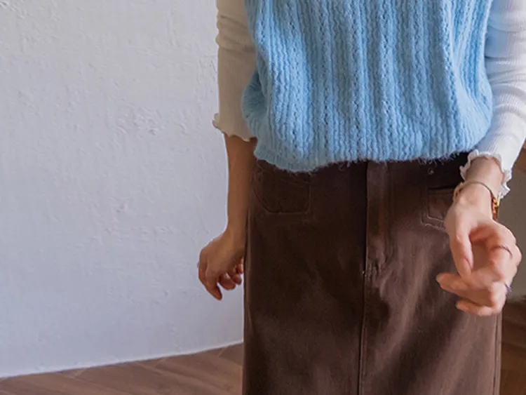 【疊穿必備針織背心♥】 【蓬鬆柔軟的羊毛混紡】 【波浪紋設計可愛極了】 【垂直線條更添魅力】