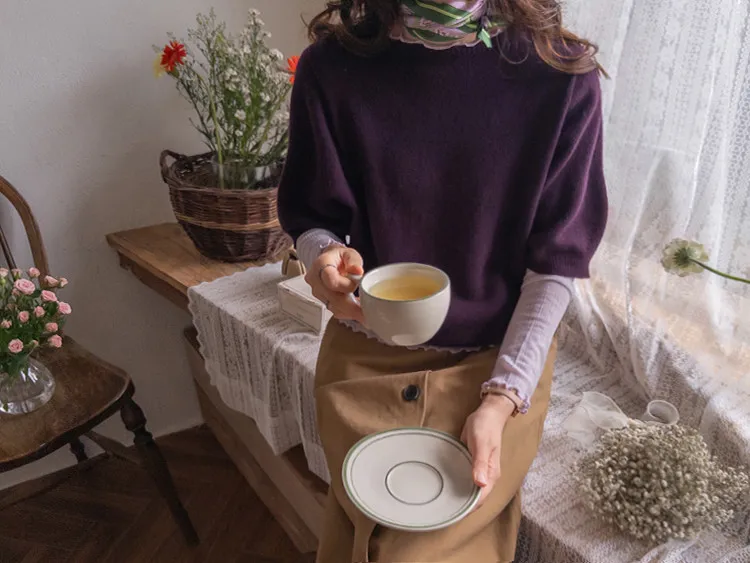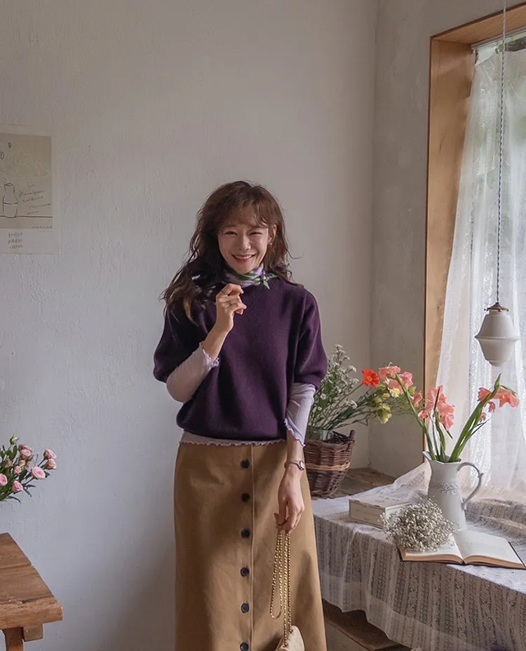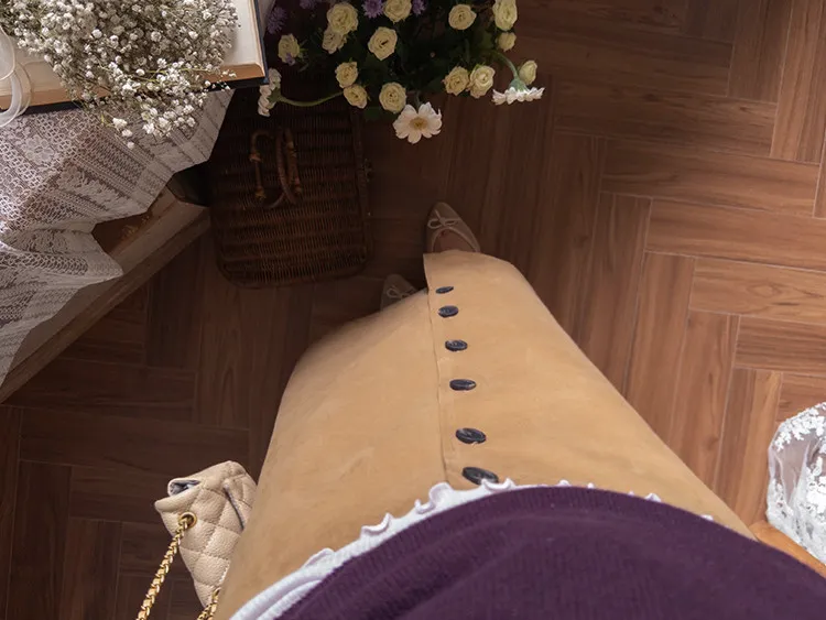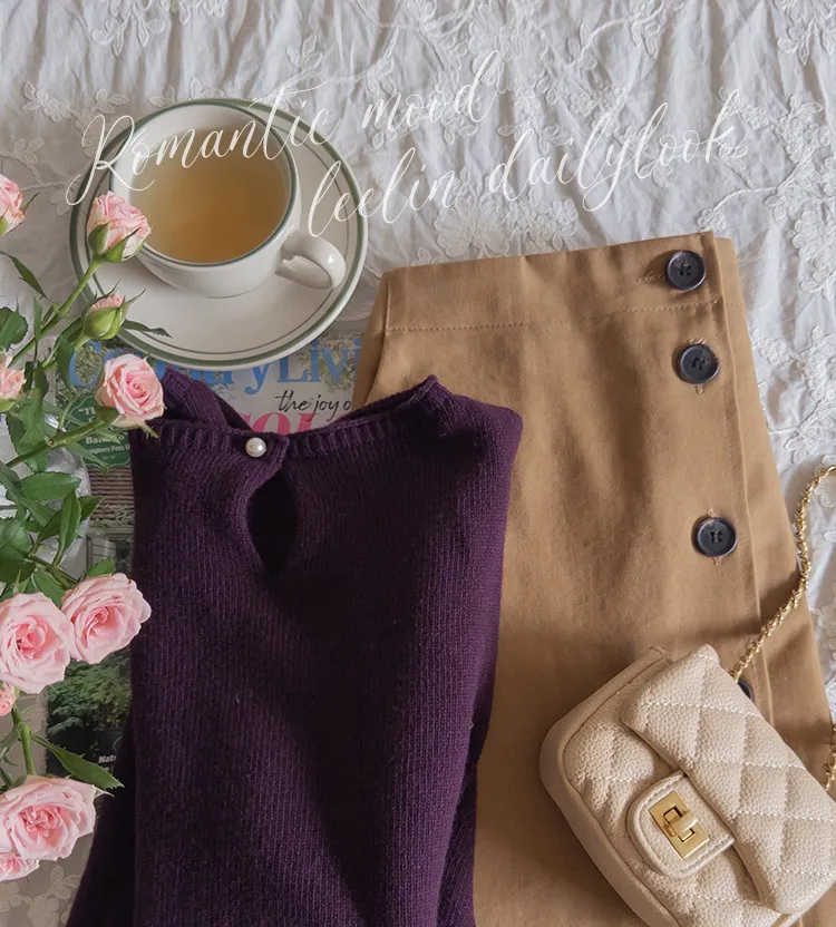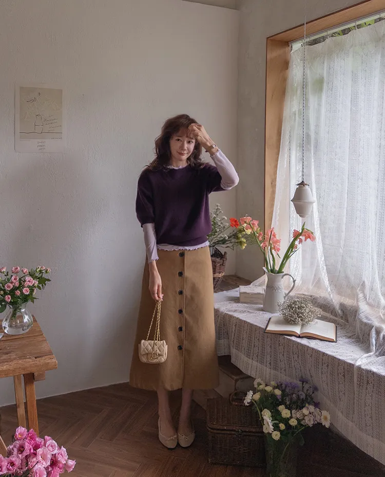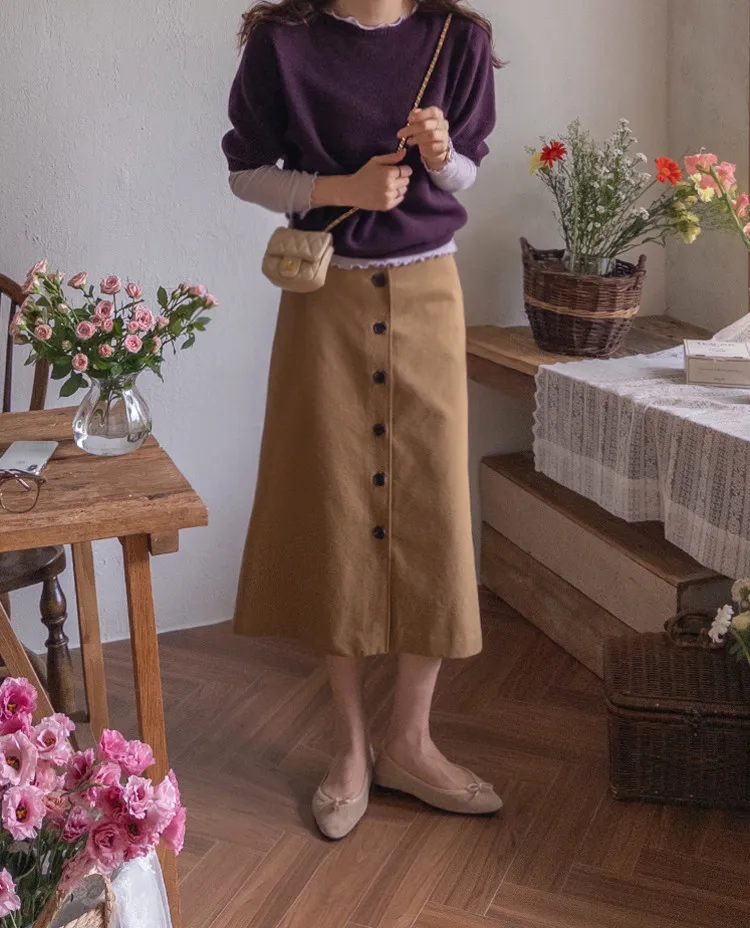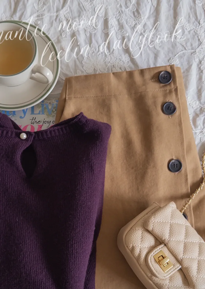 [正面鈕扣帶更顯精緻] [半A字輪廓] [柔軟的布料] [秋天般的柔和色彩♥]