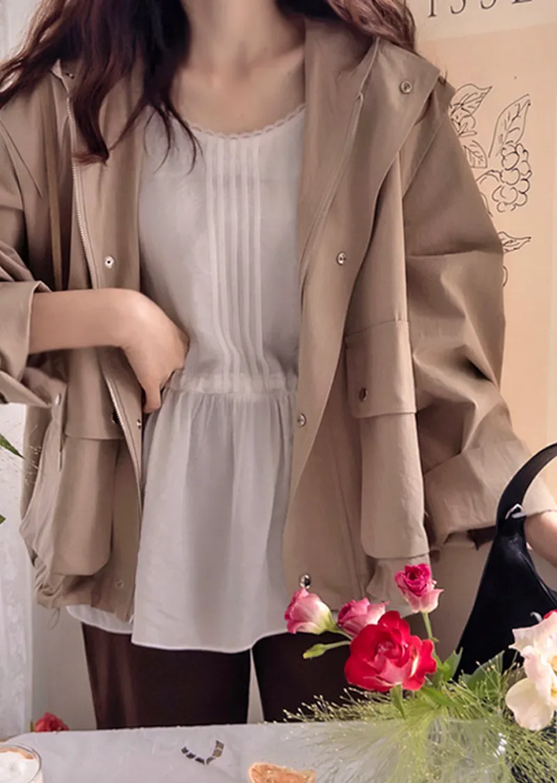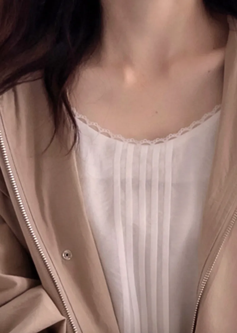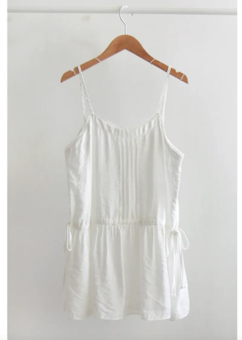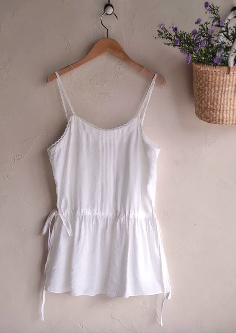 可愛氛圍迷你蕾絲襯邊綁帶收腰內搭無袖上衣