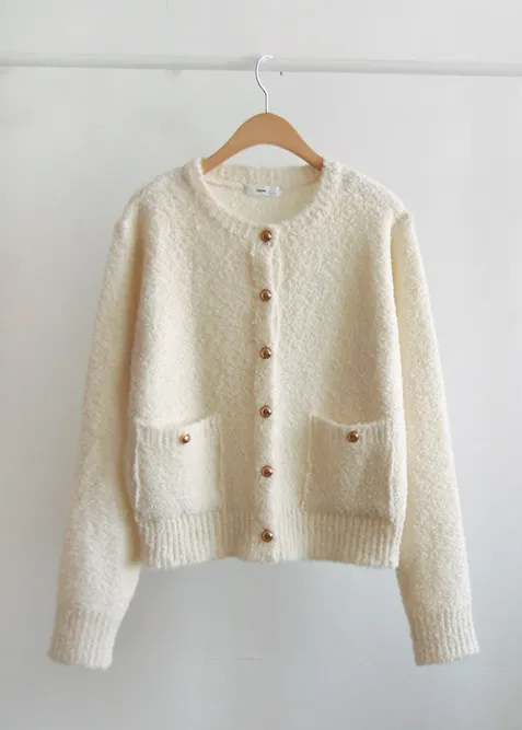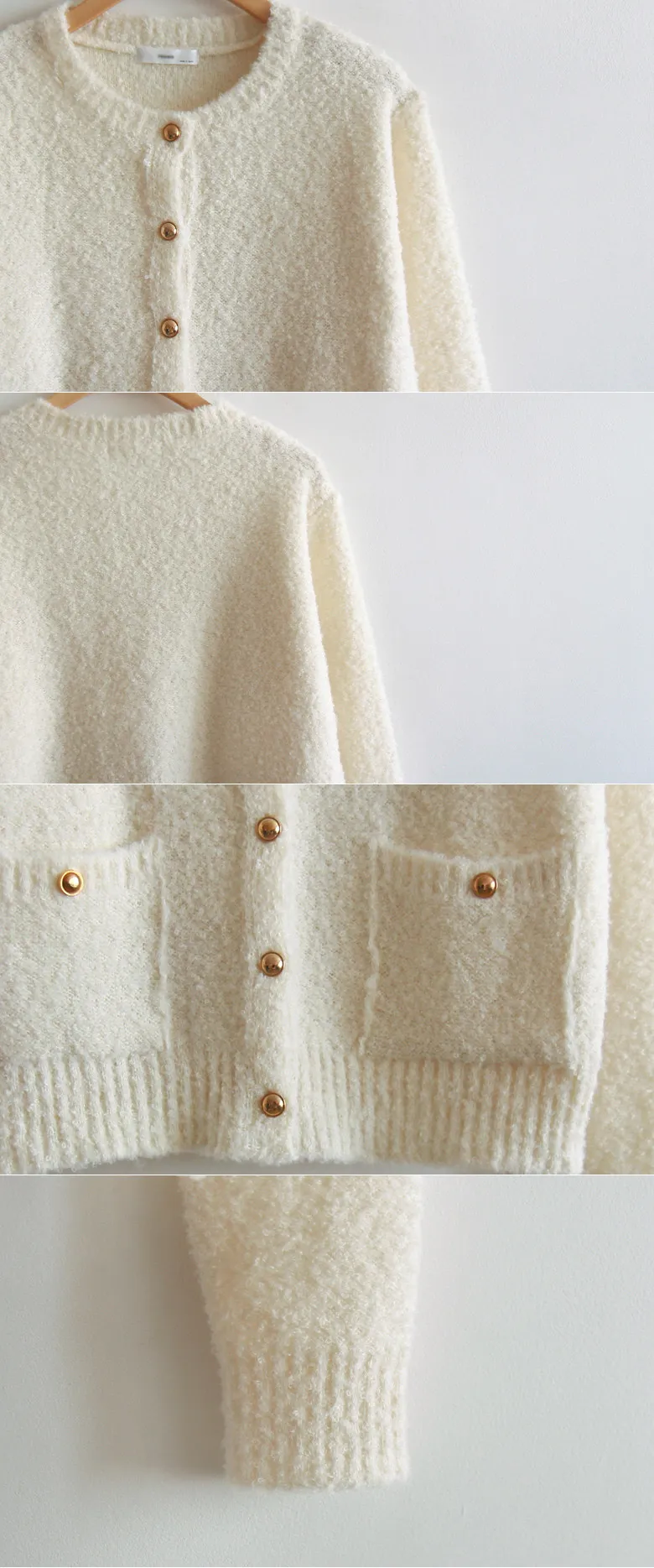 【柔軟有彈性、立體感十足的開襟衫】 【充滿秋日氣息的柔和色彩】 【金色紐扣營造出可愛的氛圍】 【立體感十足的布料,穿著舒適】 【圓領的秋季柔軟針織衫】 【金色紐帶增添高級感】