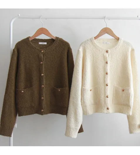秋日氣息柔和色彩柔軟金扣開衫