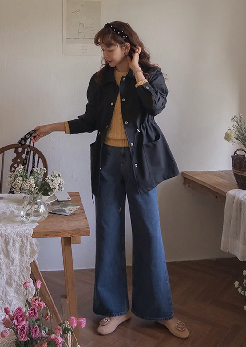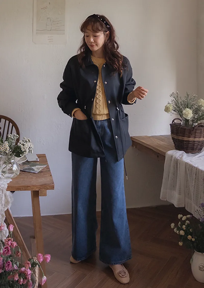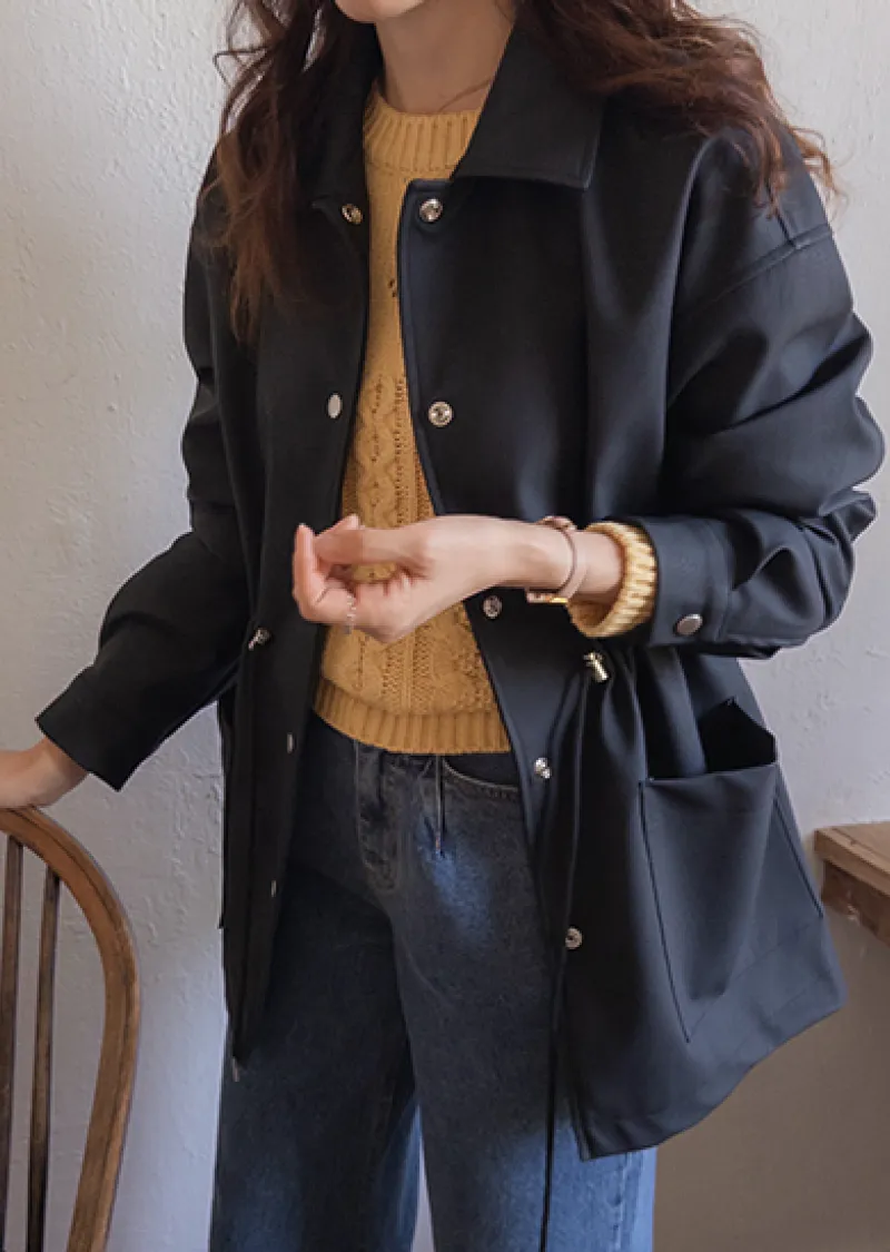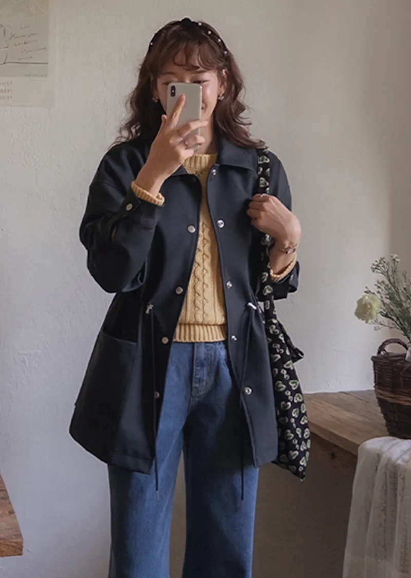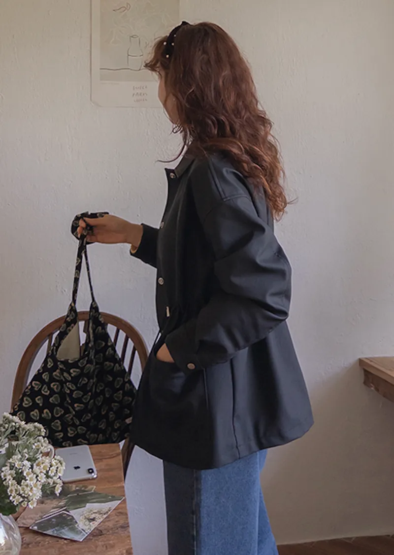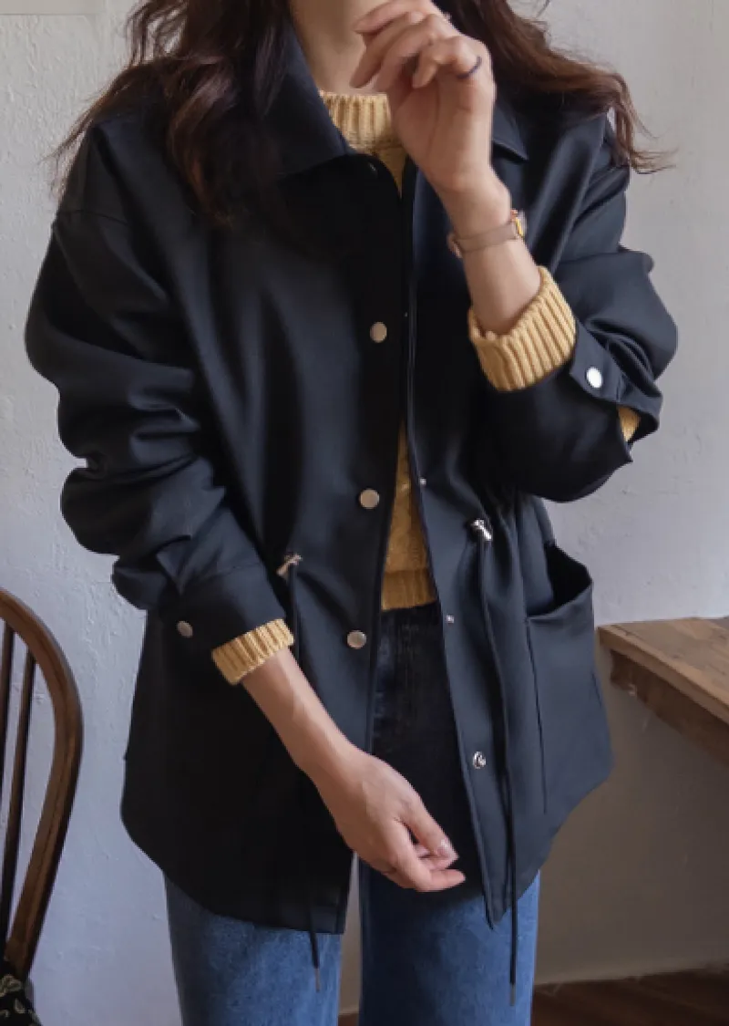【讓腰部更顯纖細的皮革夾克! 】 【長度覆蓋至臀部】 【彈性和回彈性佳! 】 【腰帶可調式尺寸! 】