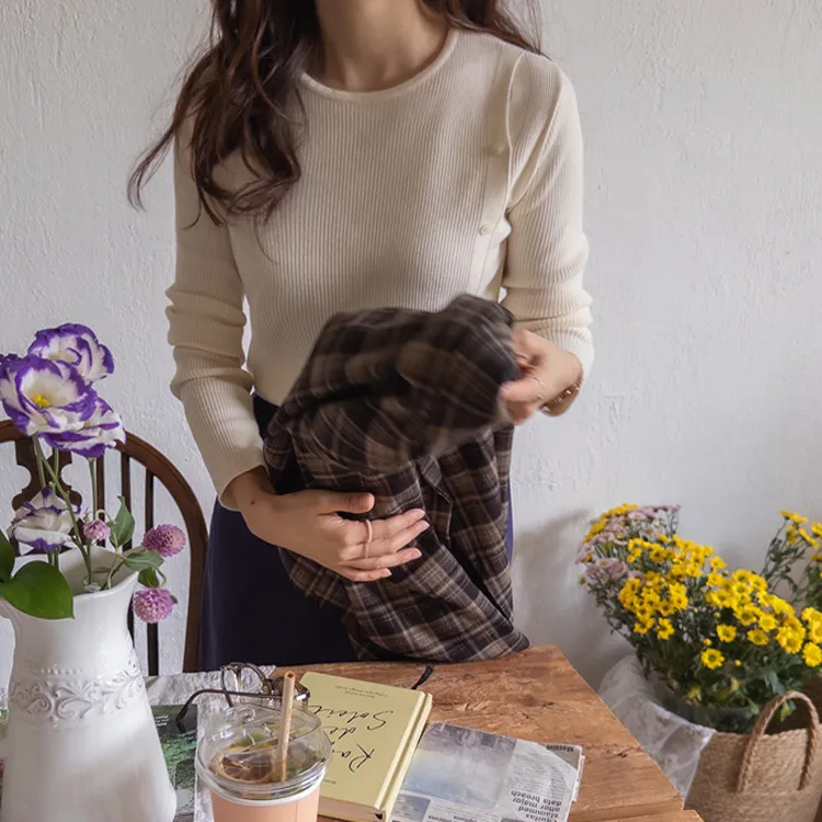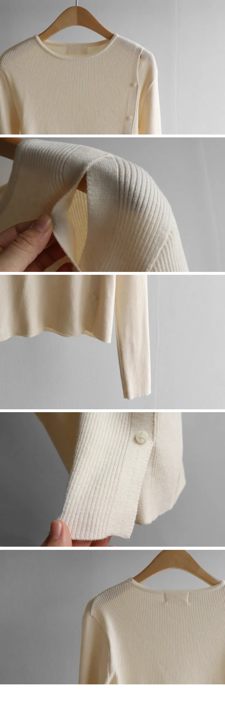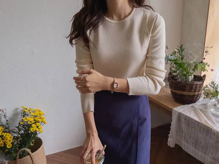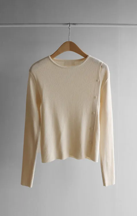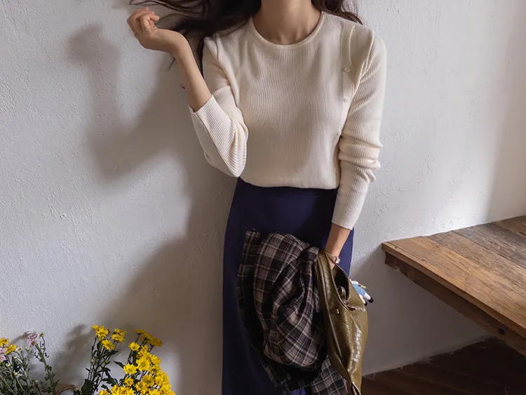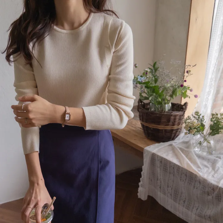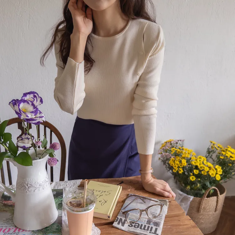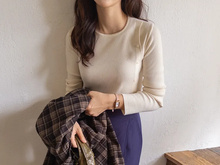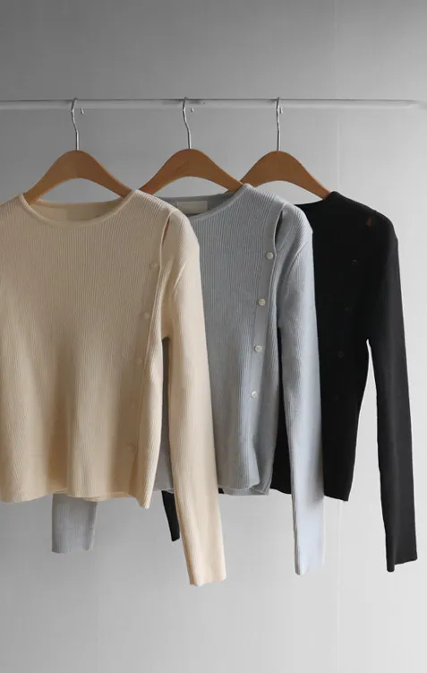 浪漫情調側肩開衩修身針織上衣