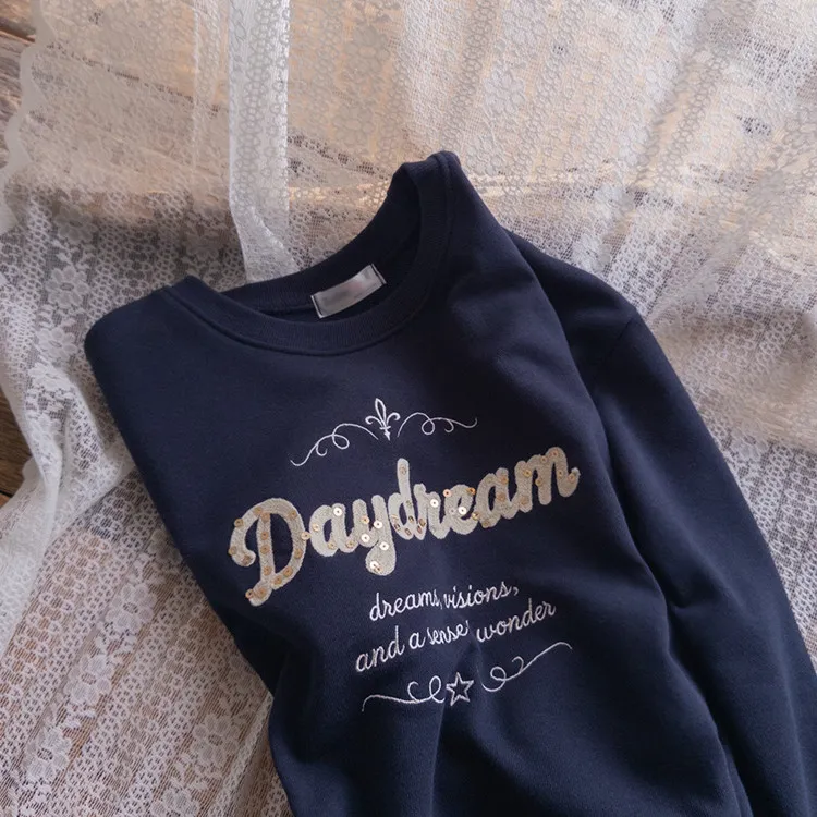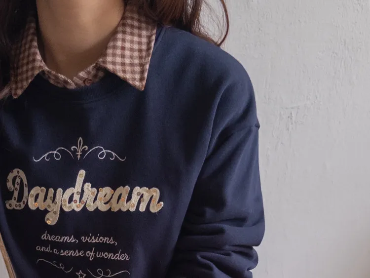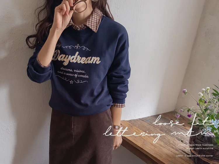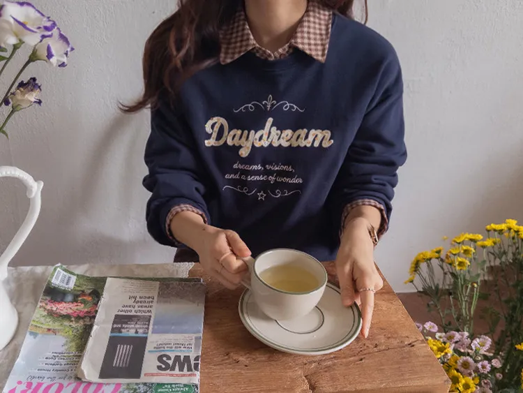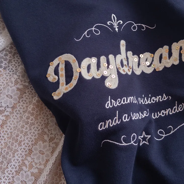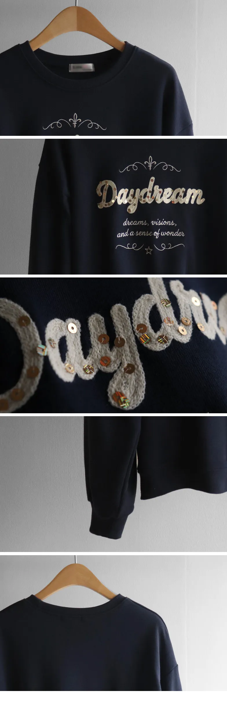 【可愛爆棚~文字穿搭上衣♥】【文字刺繡圖案上的亮片細節是亮點! ! 】【寬鬆版型遮蓋身形】