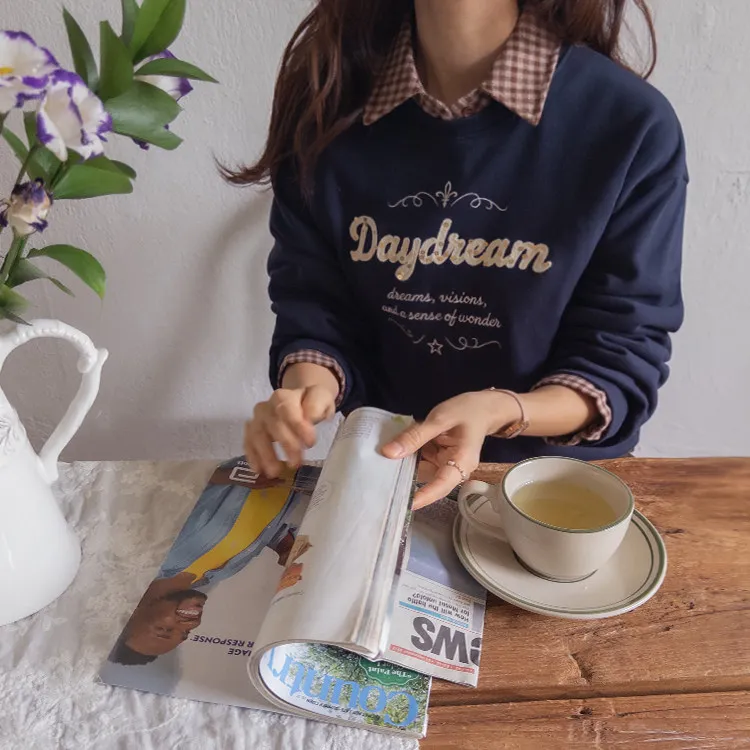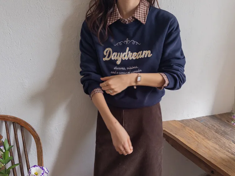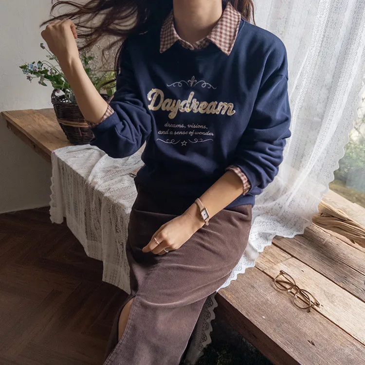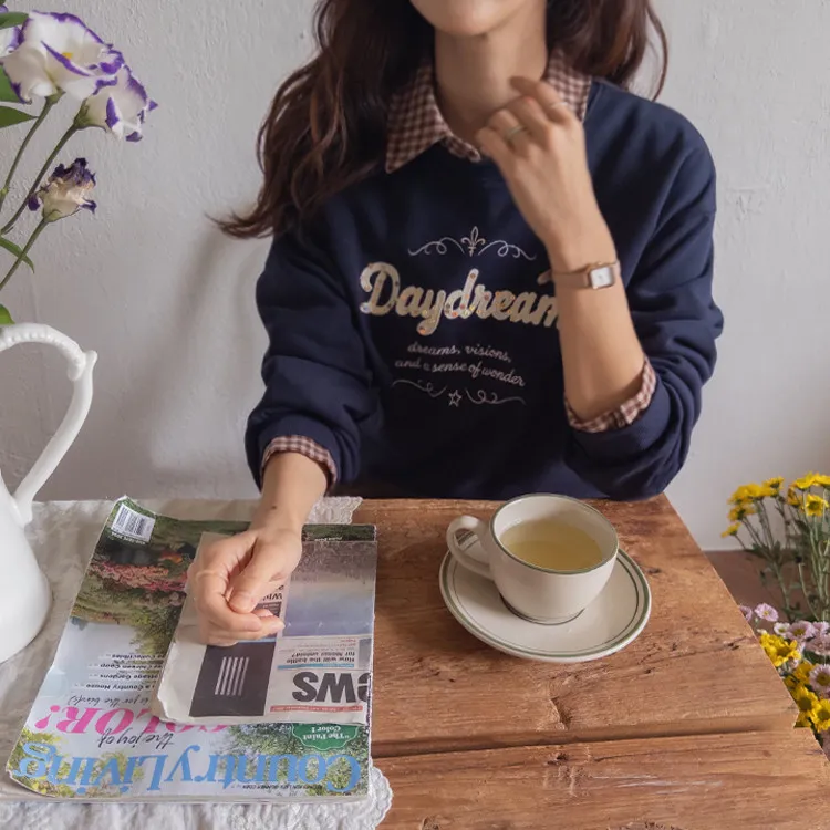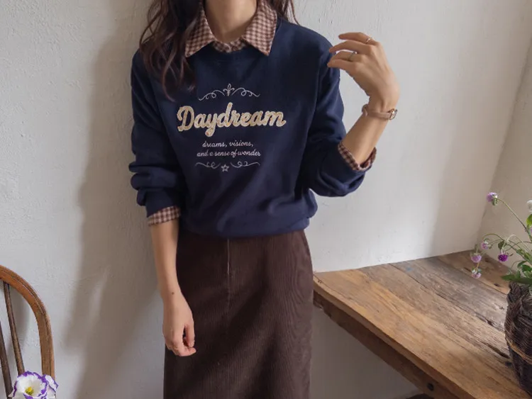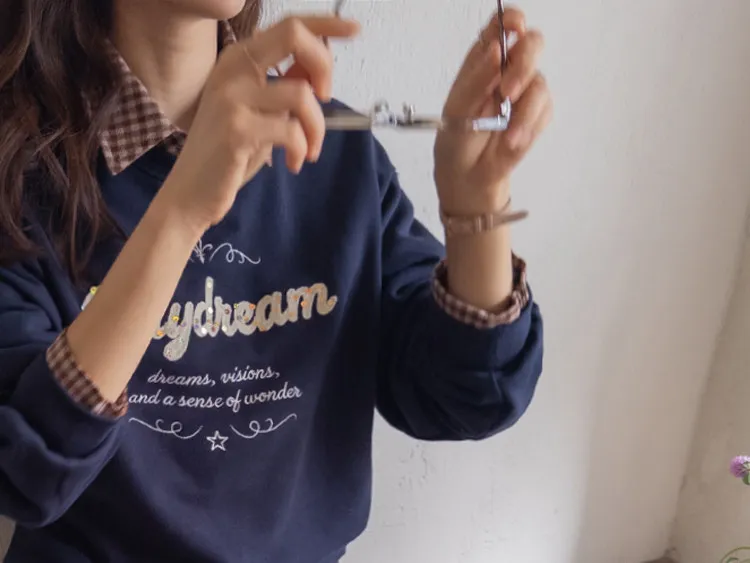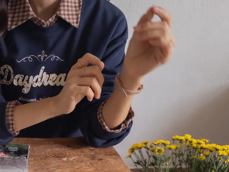 【可愛爆棚~文字穿搭上衣♥】【文字刺繡圖案上的亮片細節是亮點! ! 】【寬鬆版型遮蓋身形】
