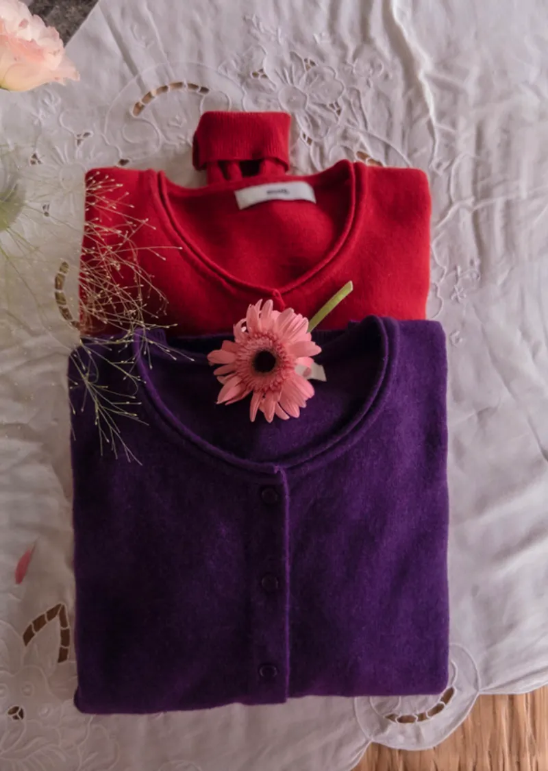 【含羊毛材質】【蓬鬆的羊毛開衫】【秋季色彩搭配非常漂亮】【圓領設計,俏皮可愛】【輕盈優雅的精緻針織】【圓點設計,穿著舒適,富有彈性,時尚合身】【易於搭配的開衫】