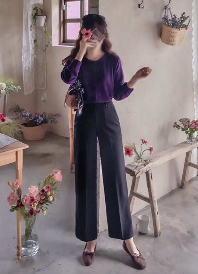 俐落線條剪裁小鉚釘裝飾修身休閒褲
