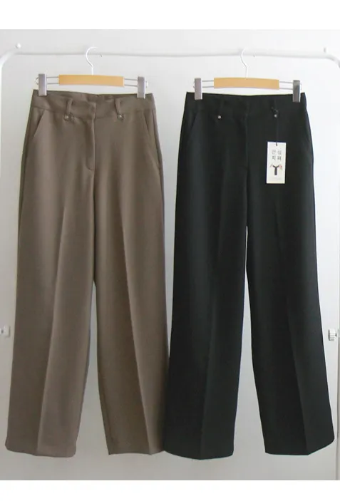俐落線條剪裁小鉚釘裝飾修身休閒褲