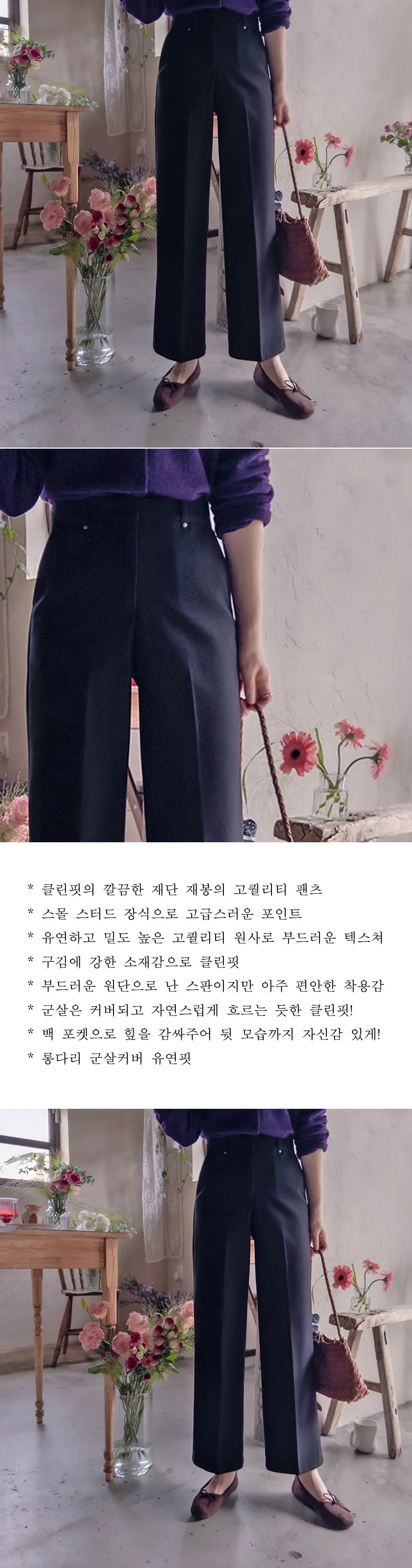 【俐落線條剪裁,高品質的褲子】 【小鉚釘裝飾,盡顯奢華】 【柔軟高密度、富有彈性的優質紗線】 【穿著舒適】 【自然流暢的剪裁,遮蓋身形】 【修身剪裁,作為秋季褲子】