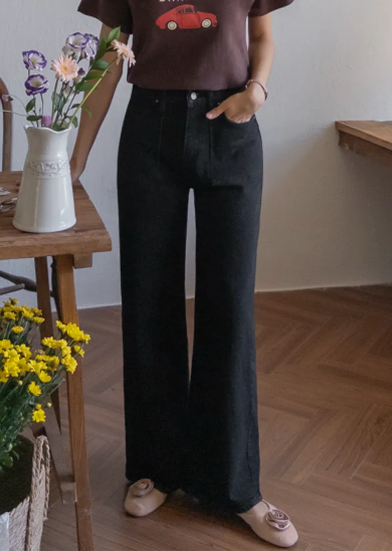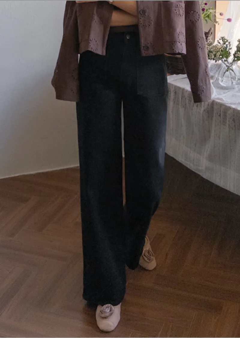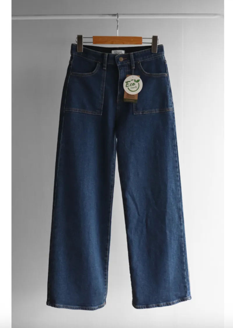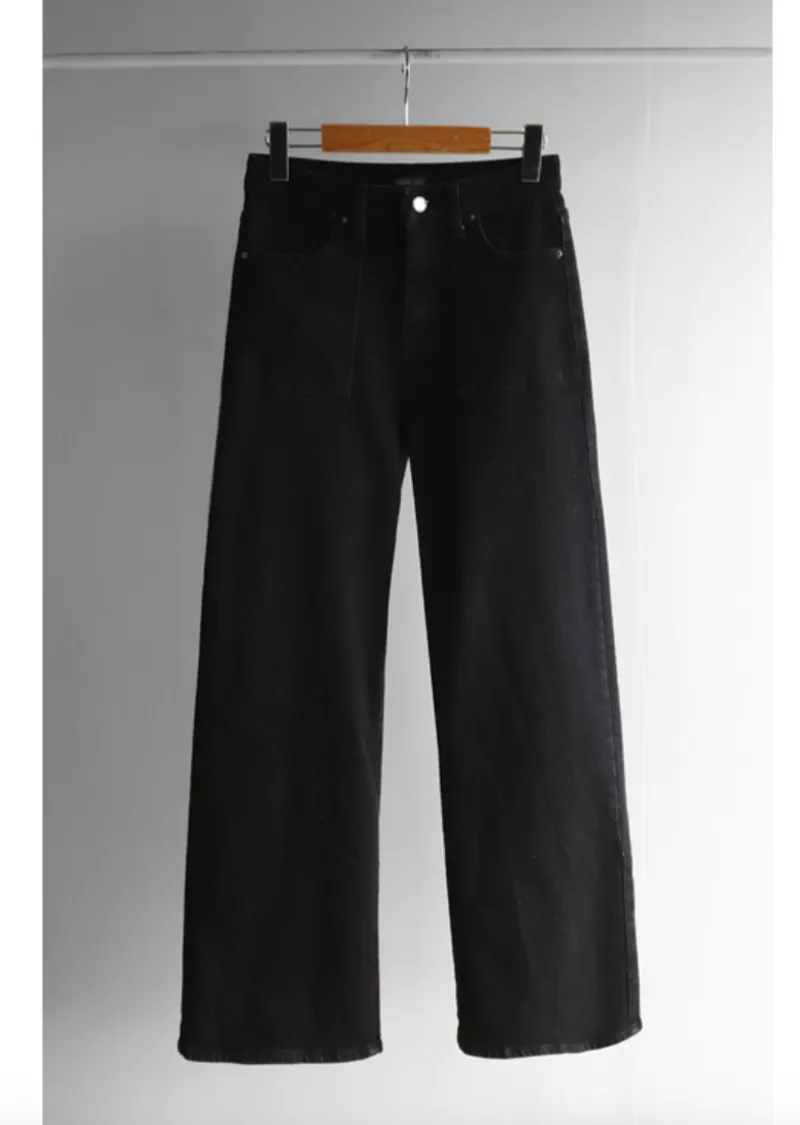獨特方形口袋舒適修身直筒寬版牛仔褲
