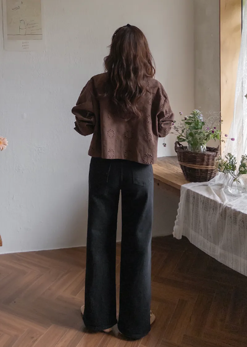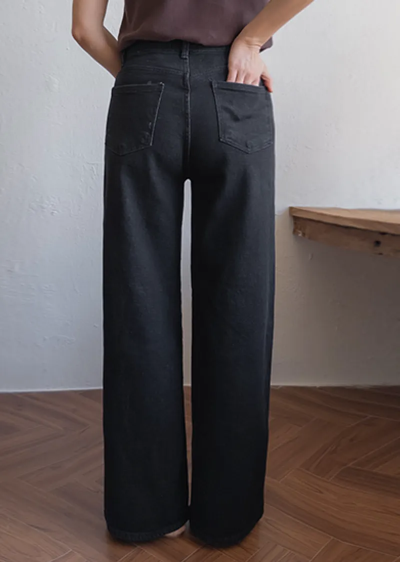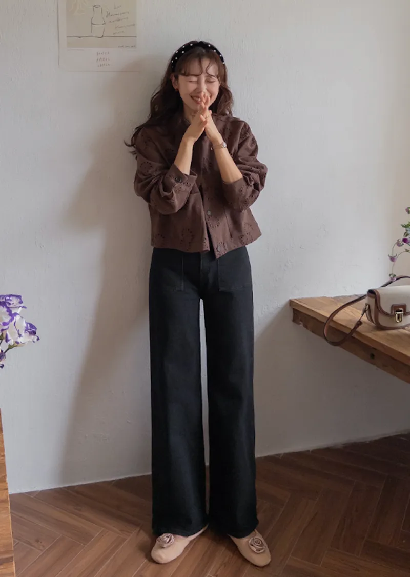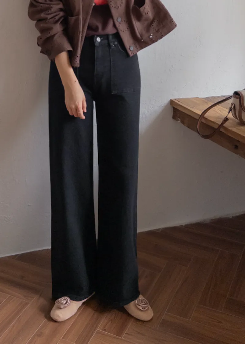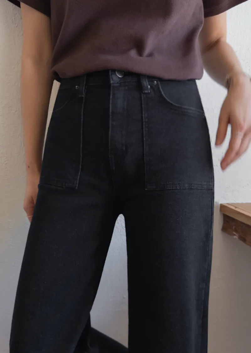 獨特方形口袋舒適修身直筒寬版牛仔褲