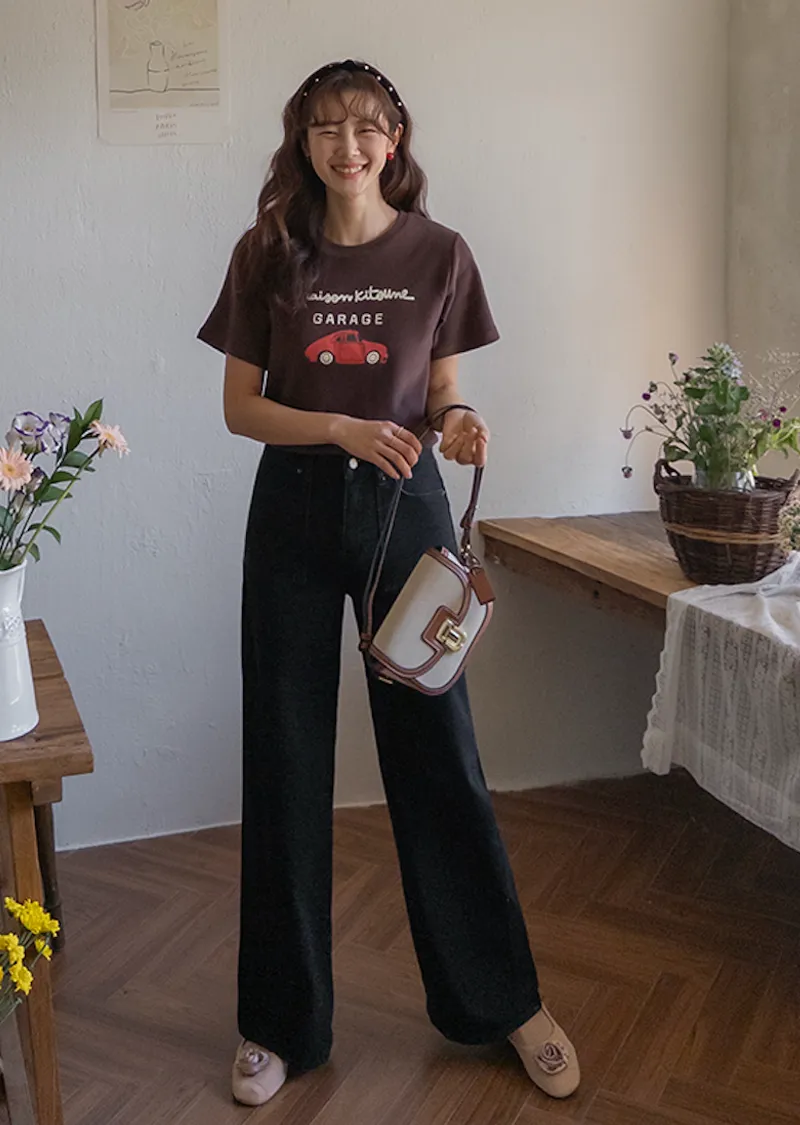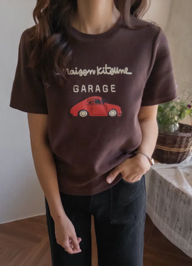 秋冬穿搭柔軟蓬鬆車子印花舒適短袖上衣