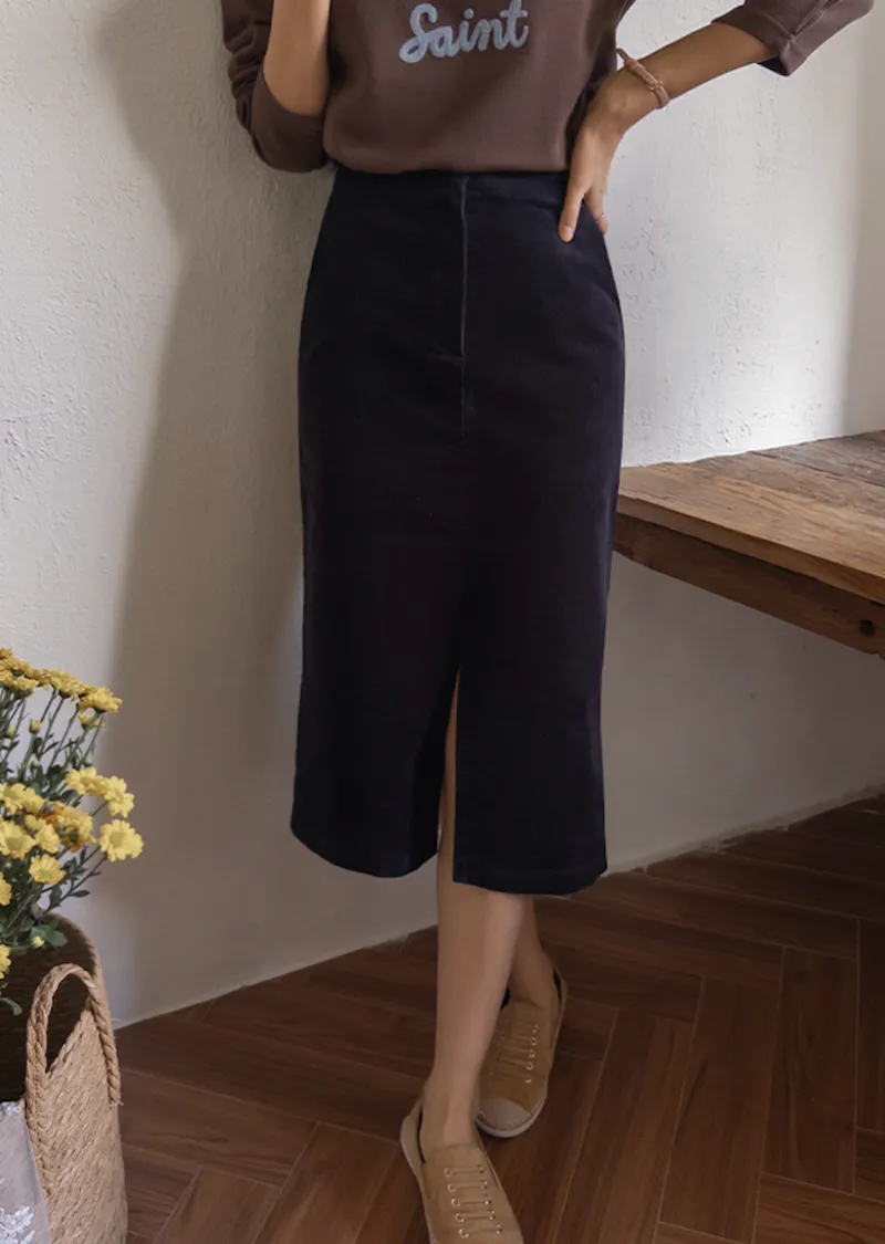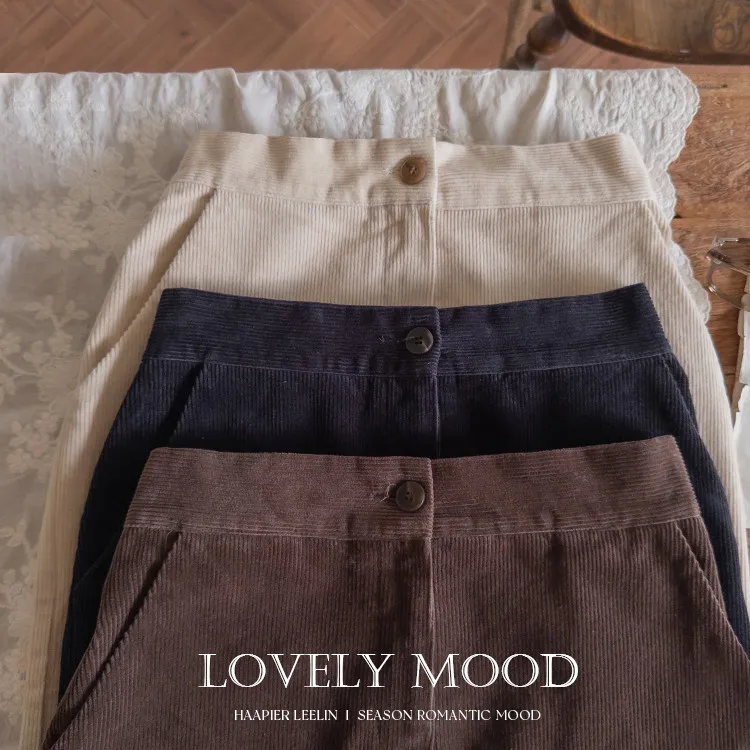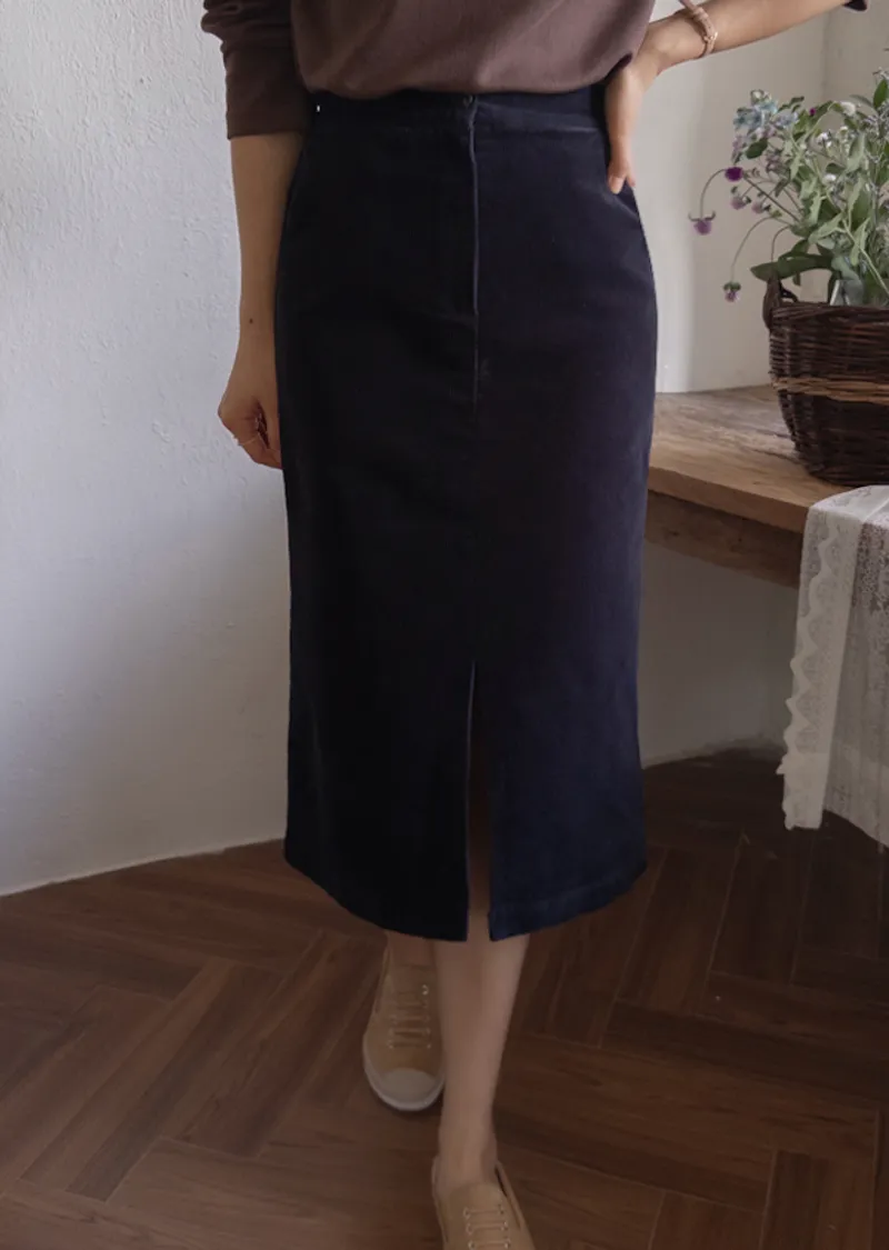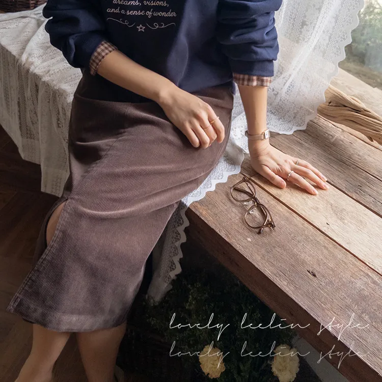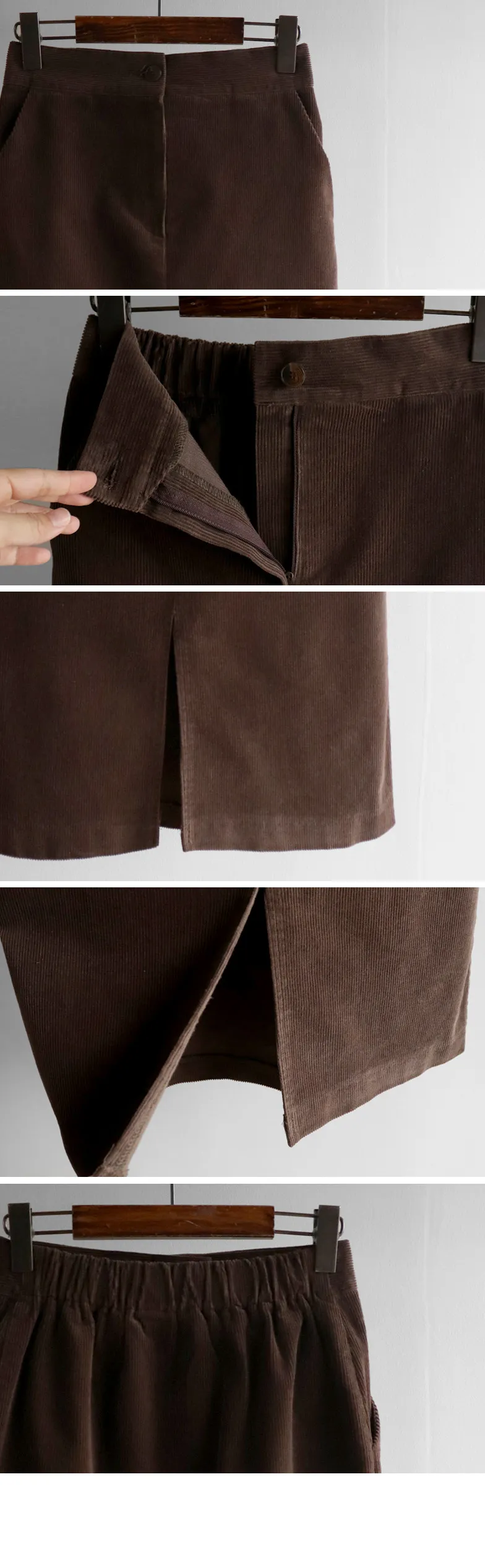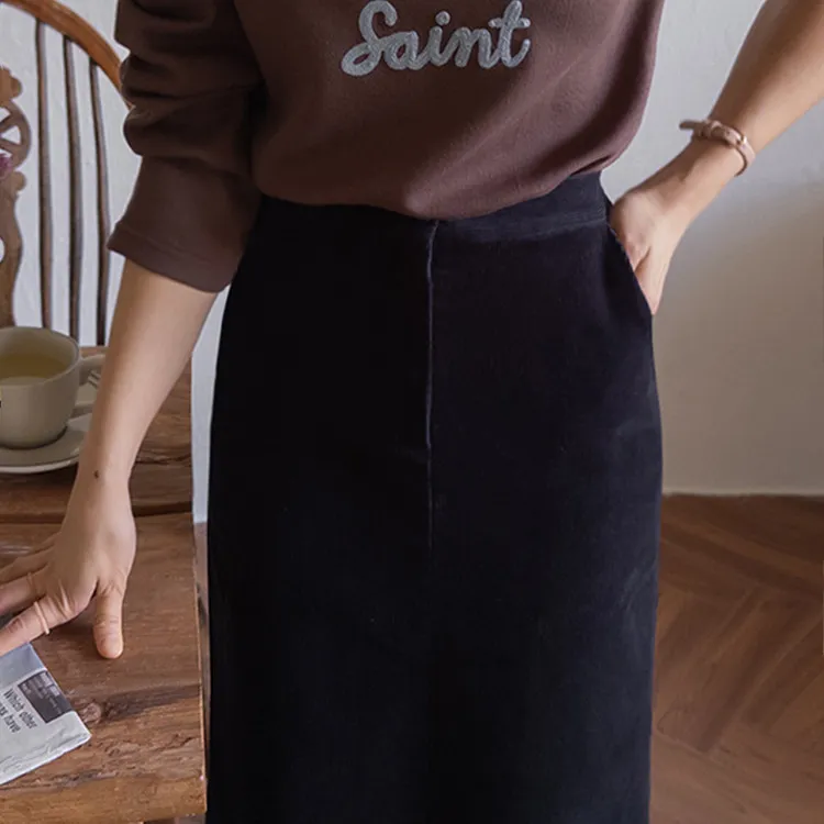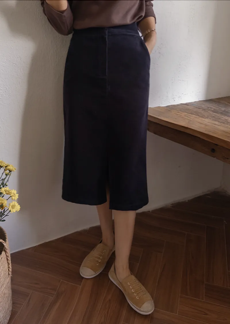 秋冬穿搭燈芯絨H剪裁前開衩中長裙