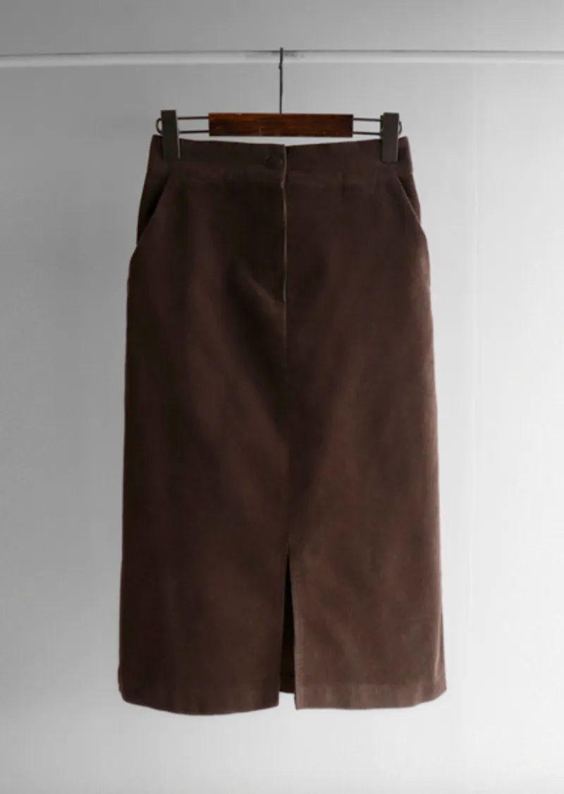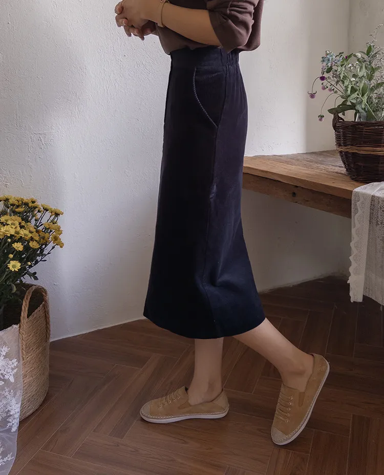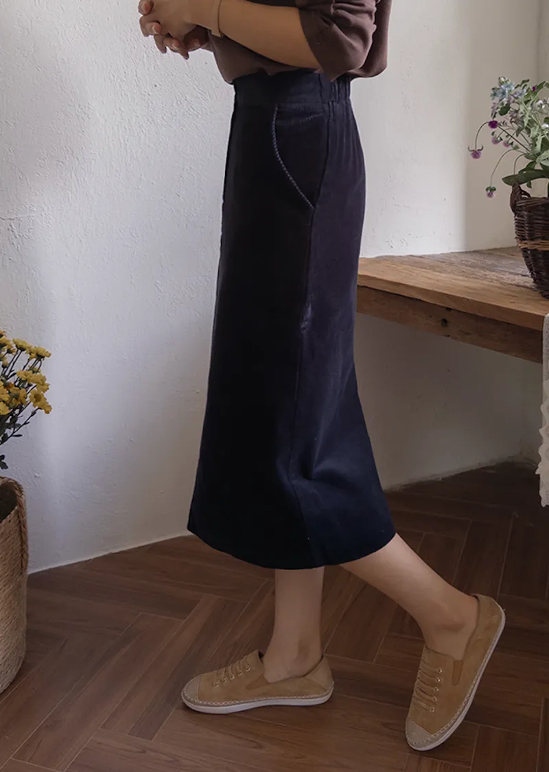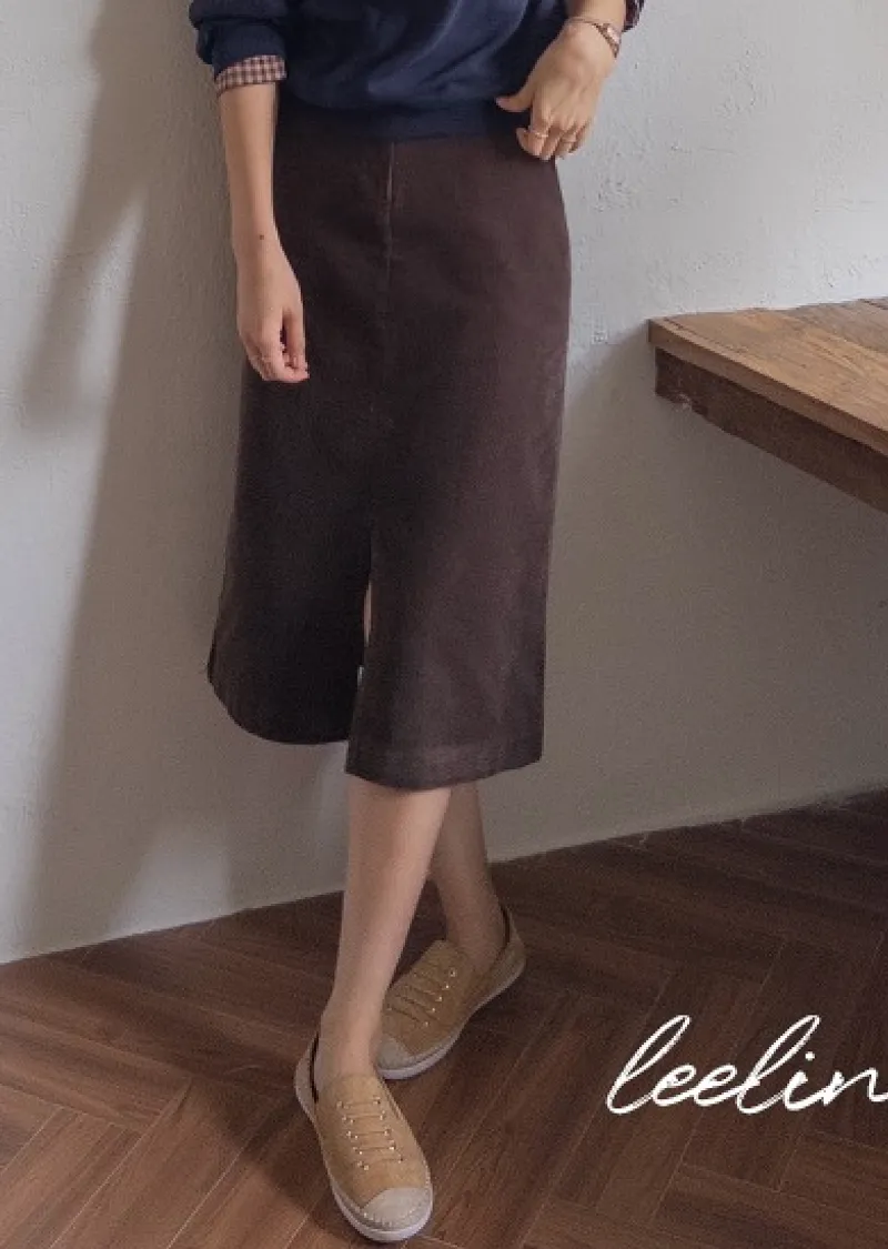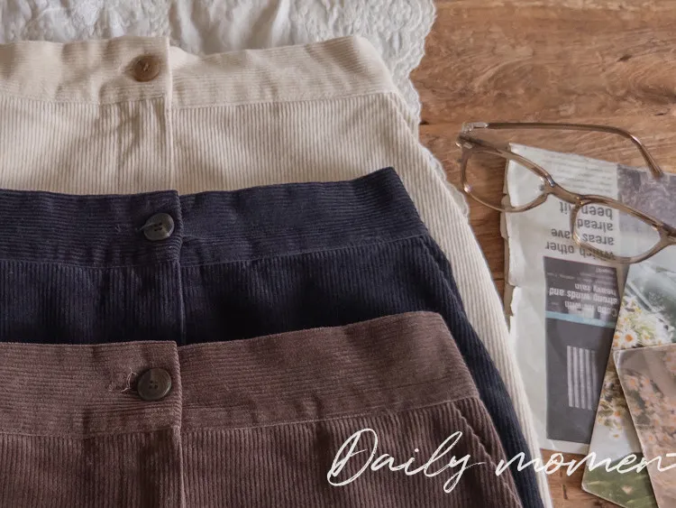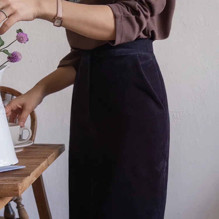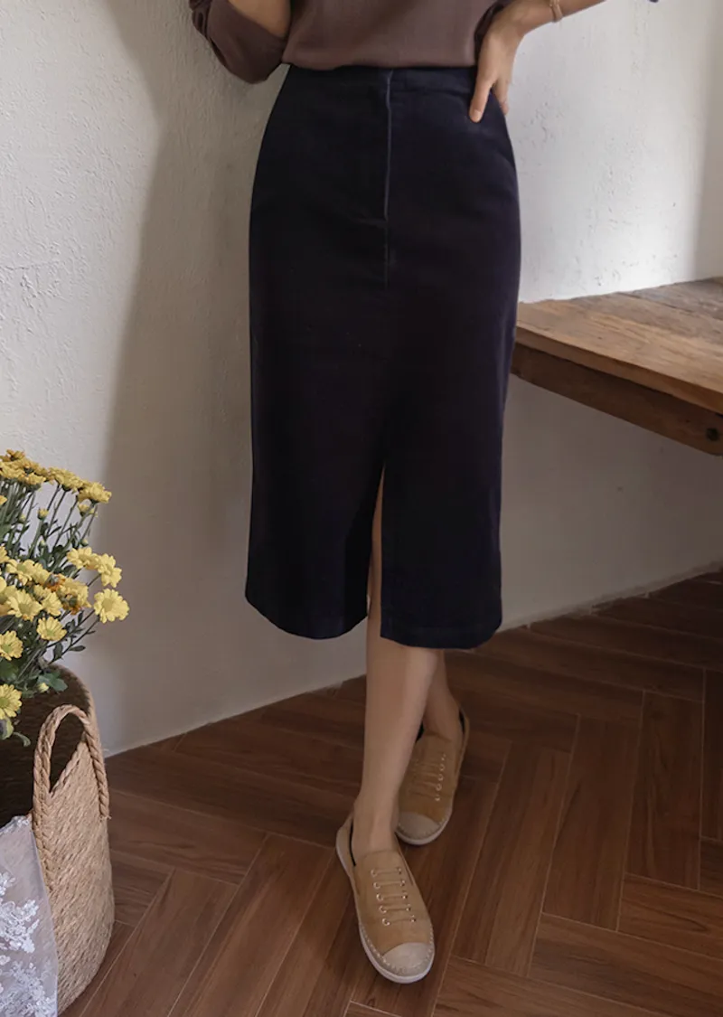 秋冬穿搭燈芯絨H剪裁前開衩中長裙