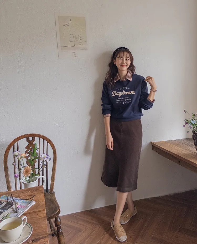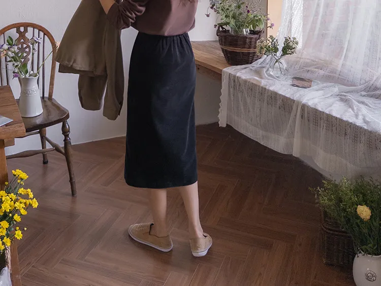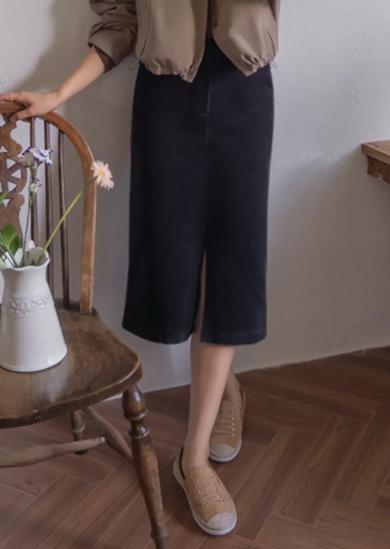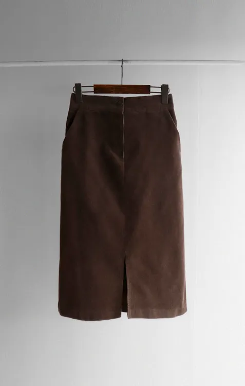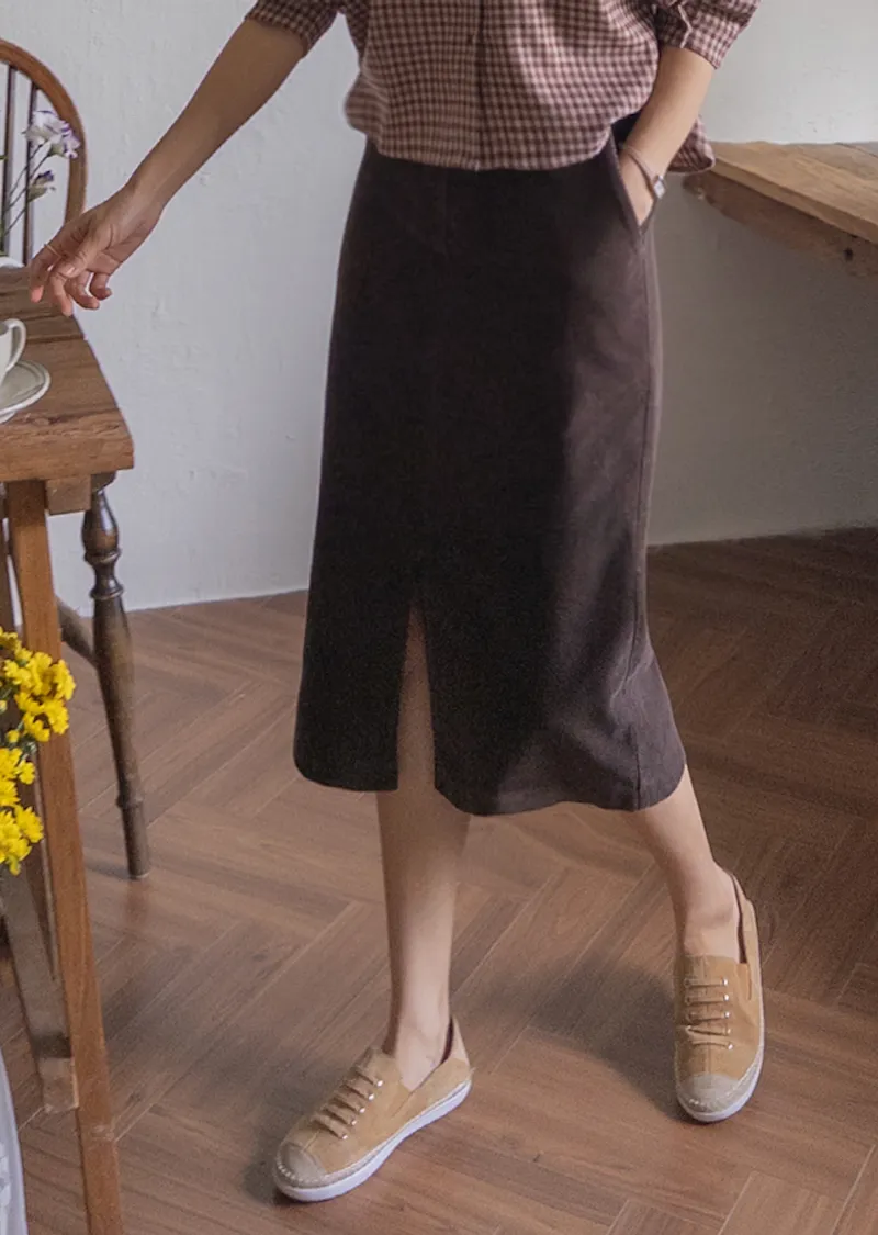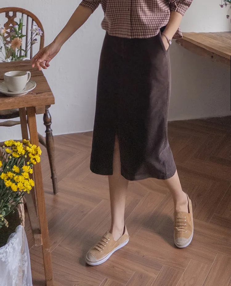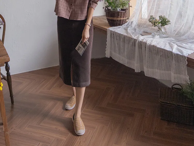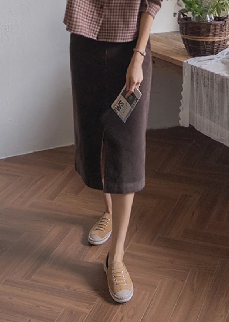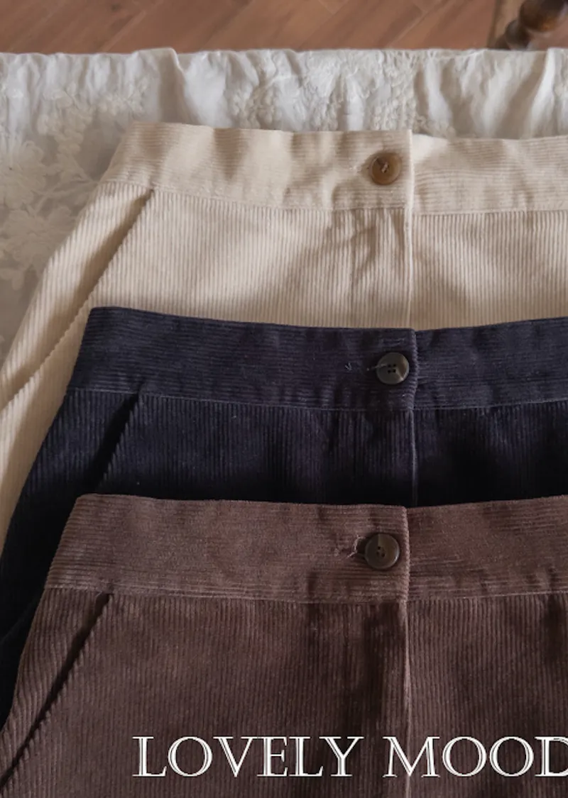 秋冬穿搭燈芯絨H剪裁前開衩中長裙