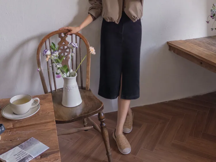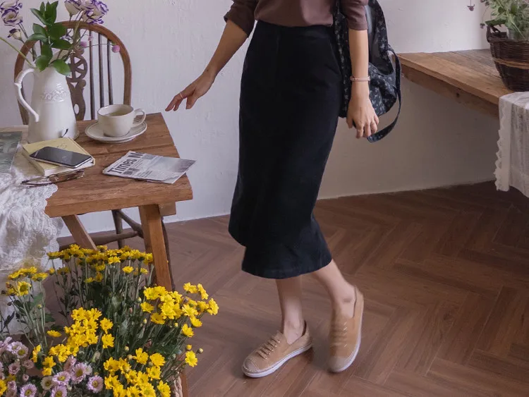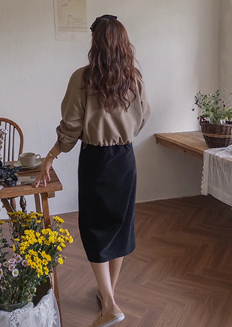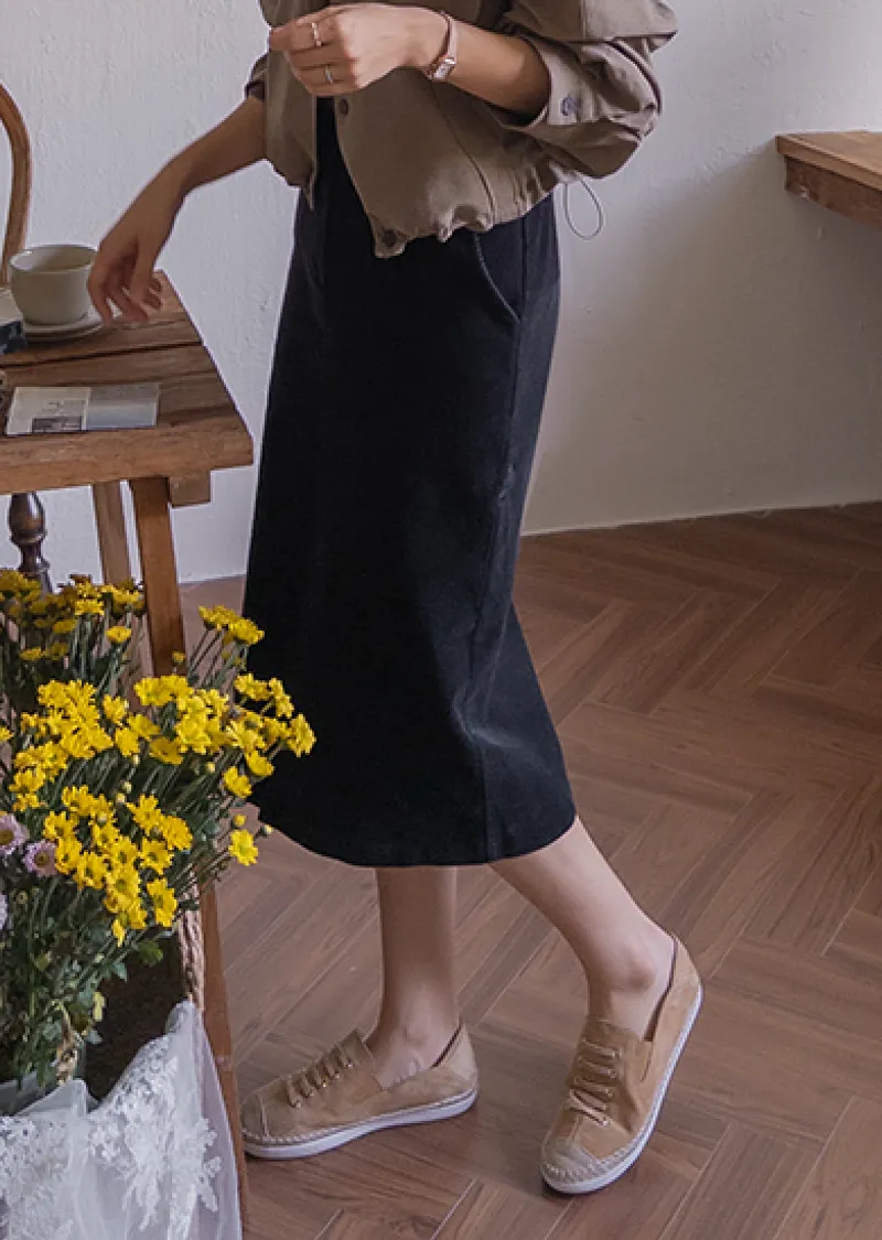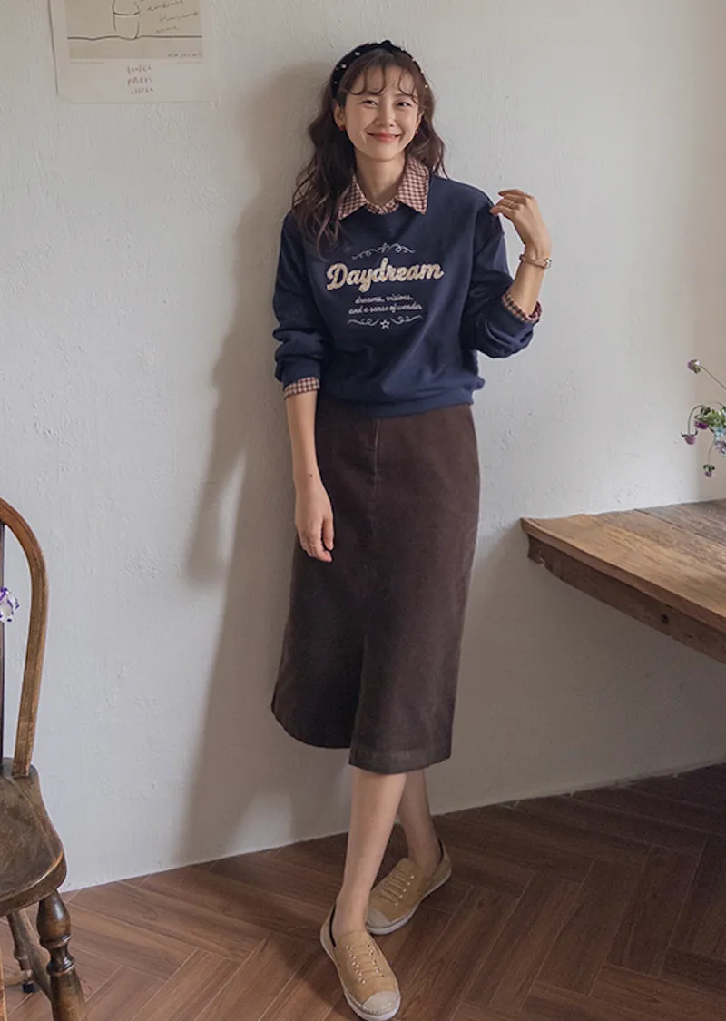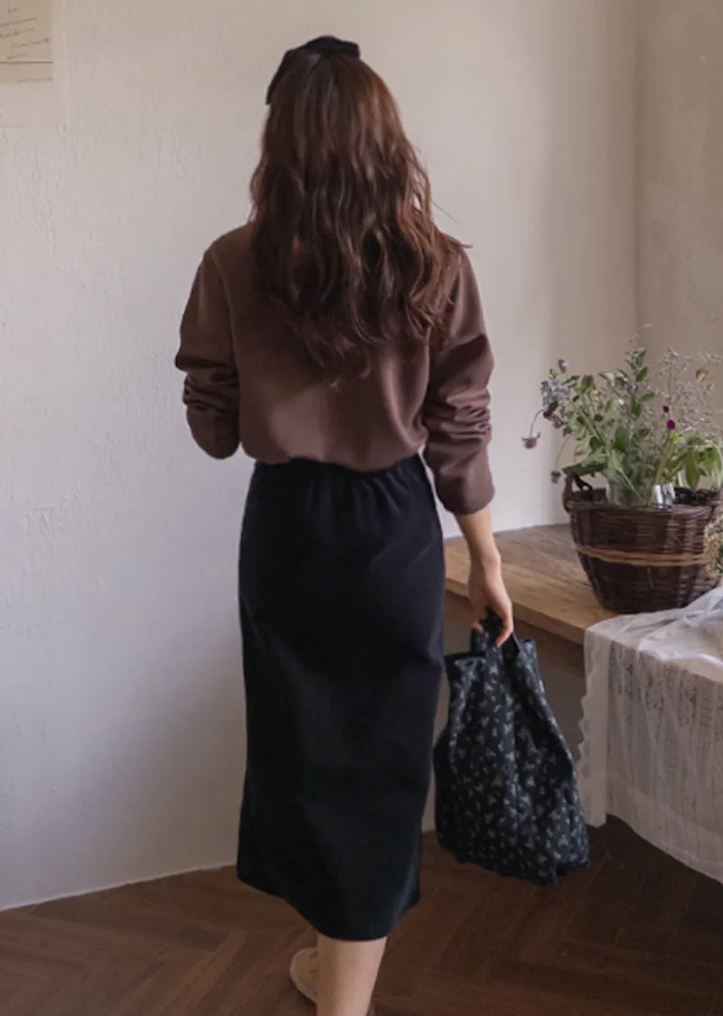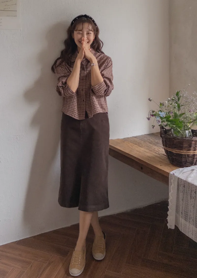秋冬穿搭燈芯絨H剪裁前開衩中長裙