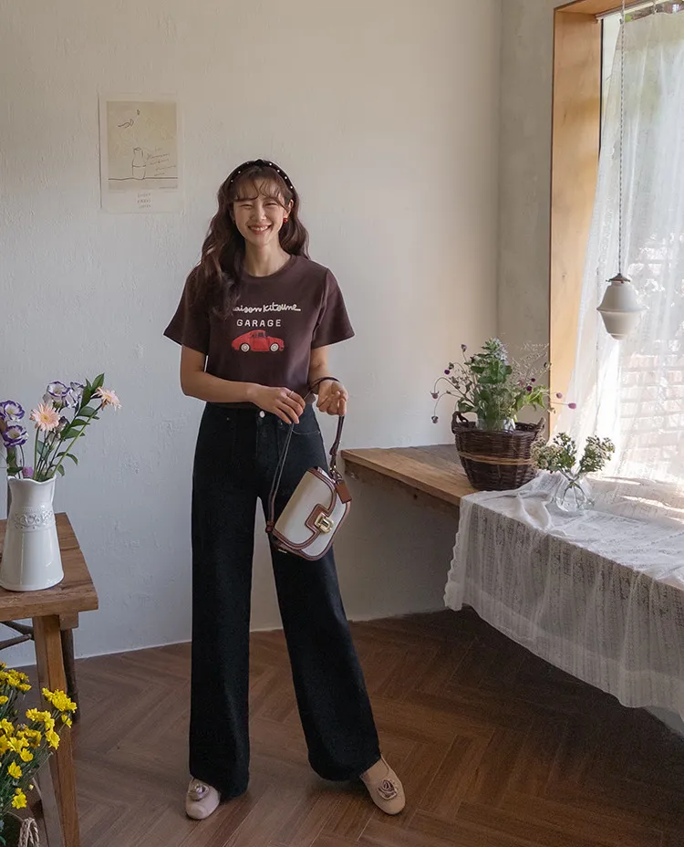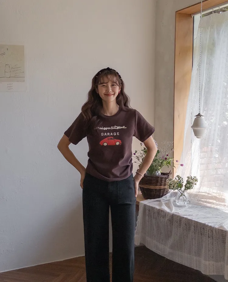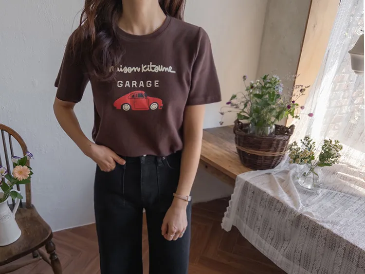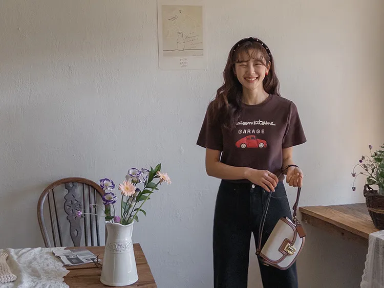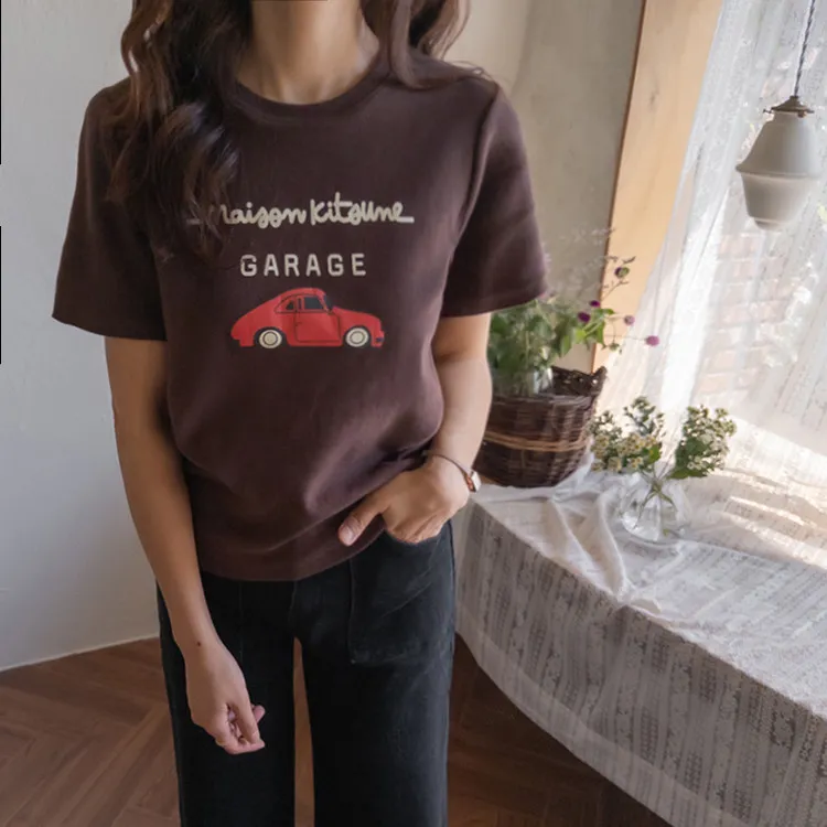 秋冬穿搭柔軟蓬鬆車子印花舒適短袖上衣