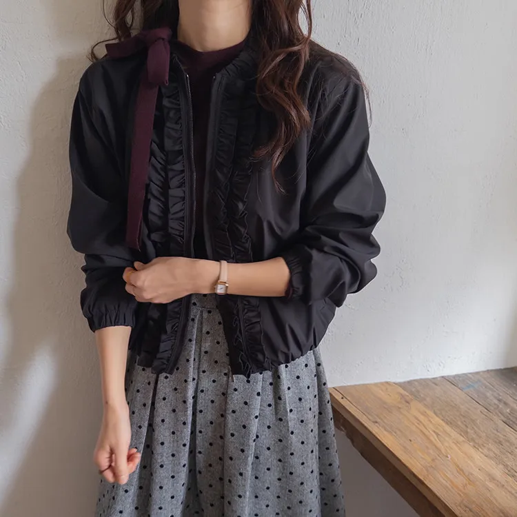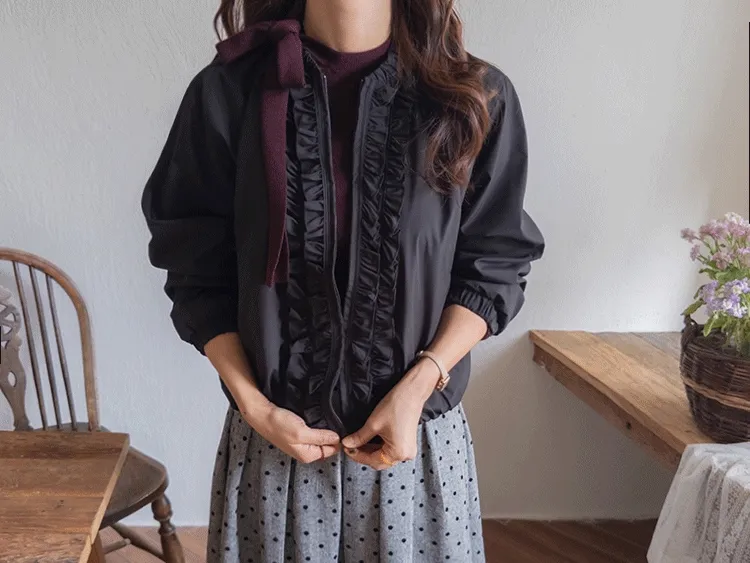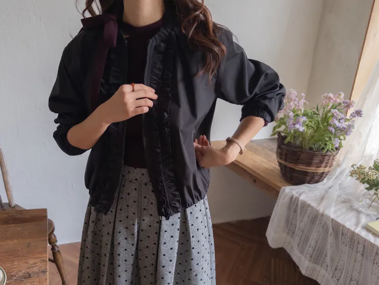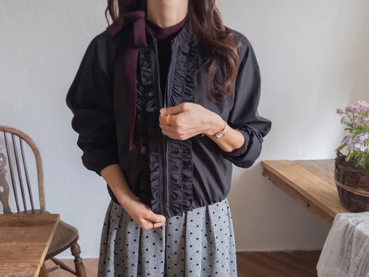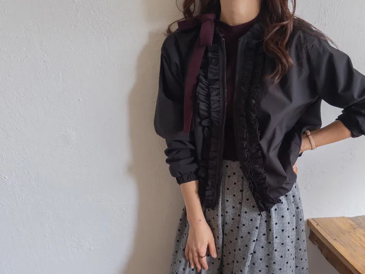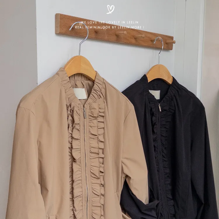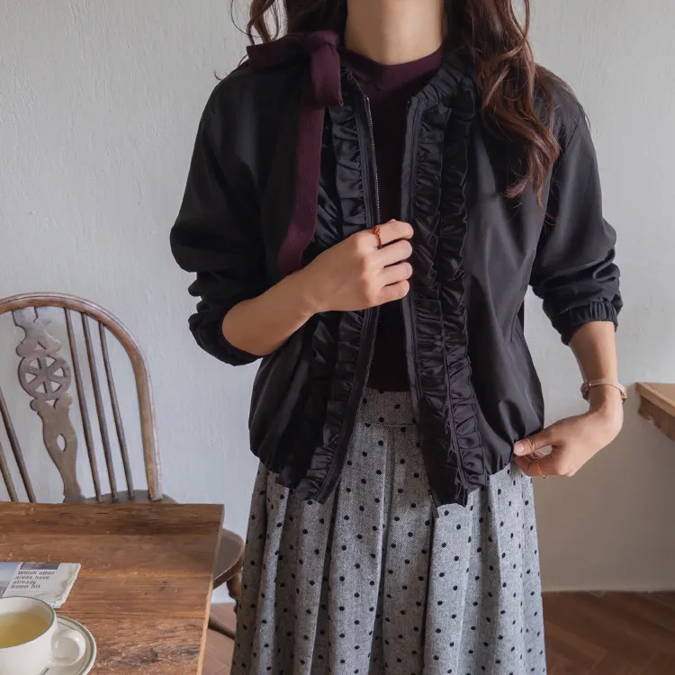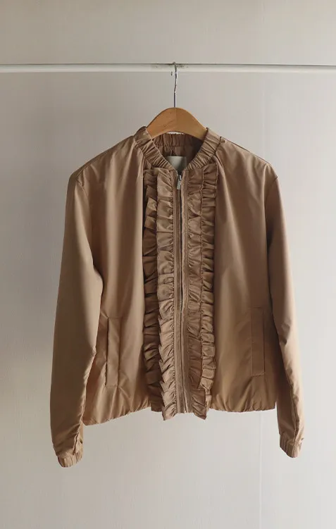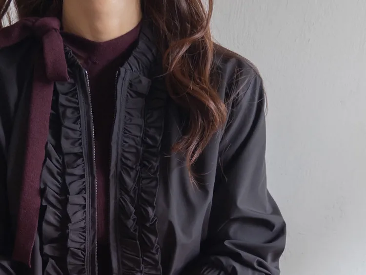 可愛氣氛荷葉摺邊設計穿搭拉鍊外套