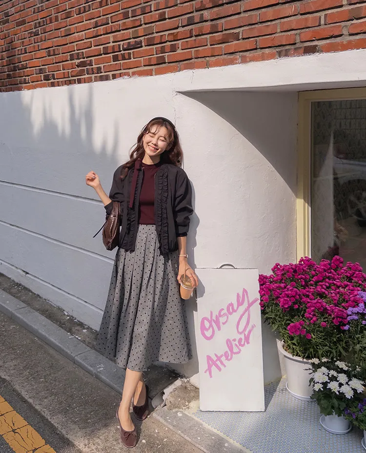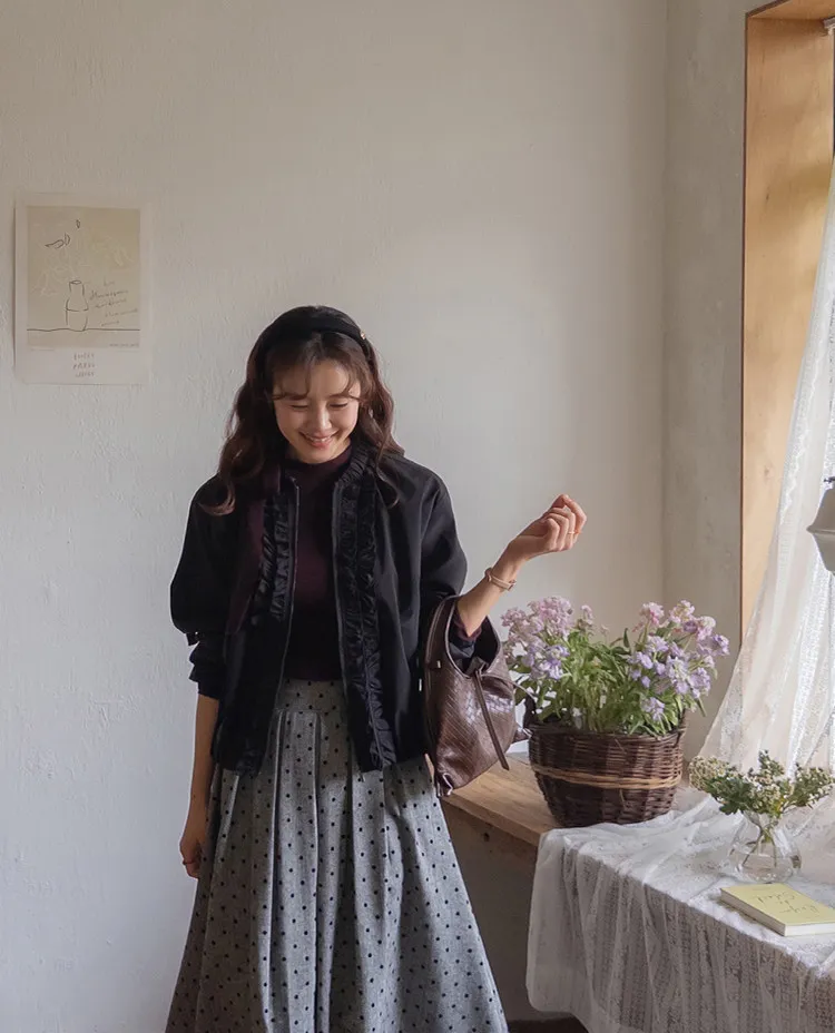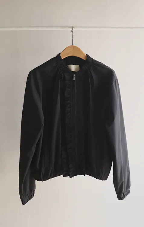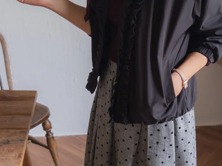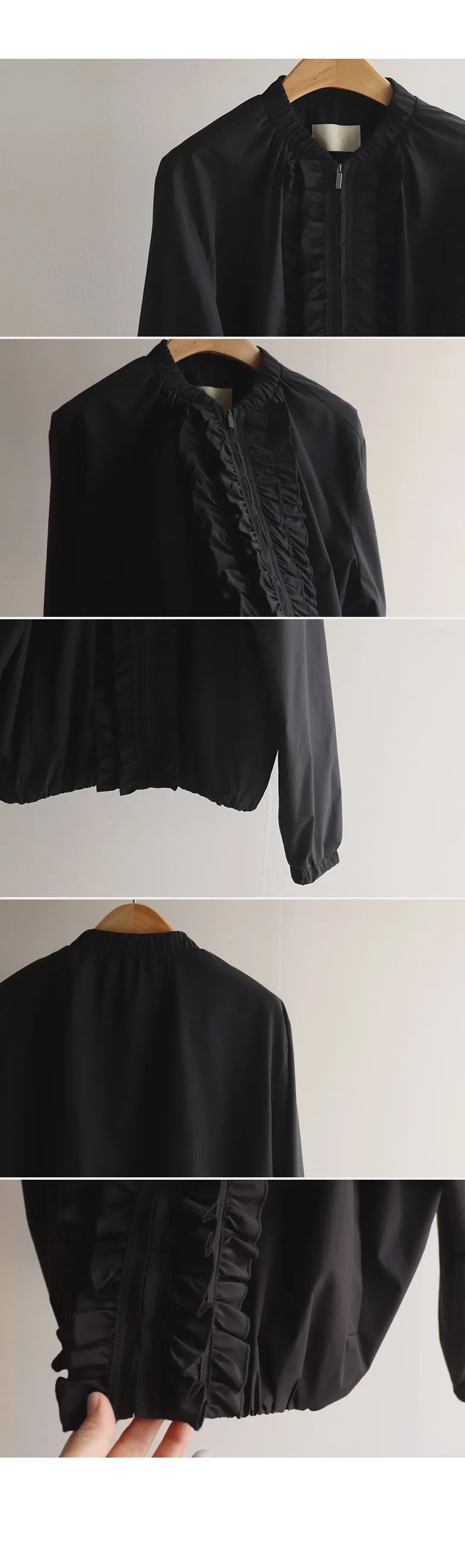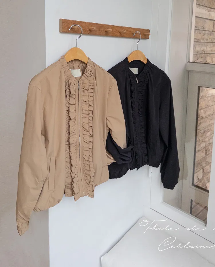 可愛氣氛荷葉摺邊設計穿搭拉鍊外套