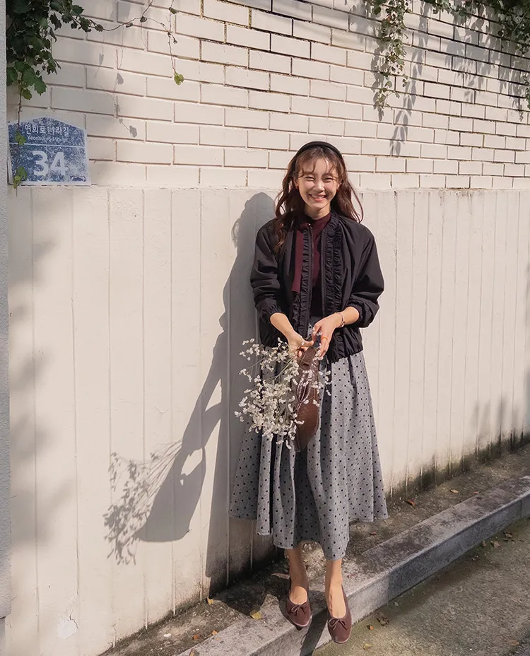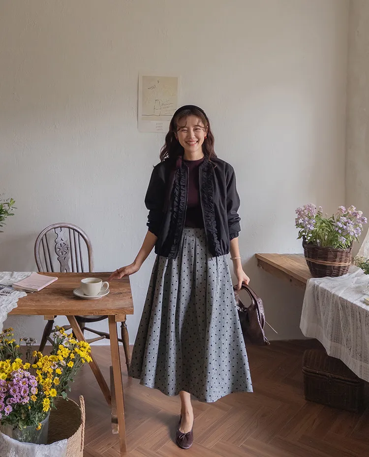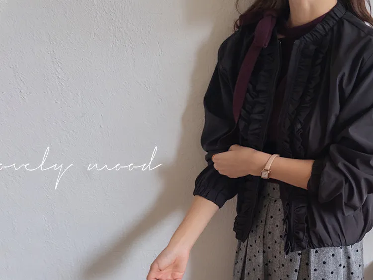 【封口處有褶邊,洋溢著可愛氣氛的外套♥】【輕盈飄逸的日常單品~! 】【下擺和袖子處有收邊,防風性能極佳~! 】【休閒裝和正式裝都非常適合^^】