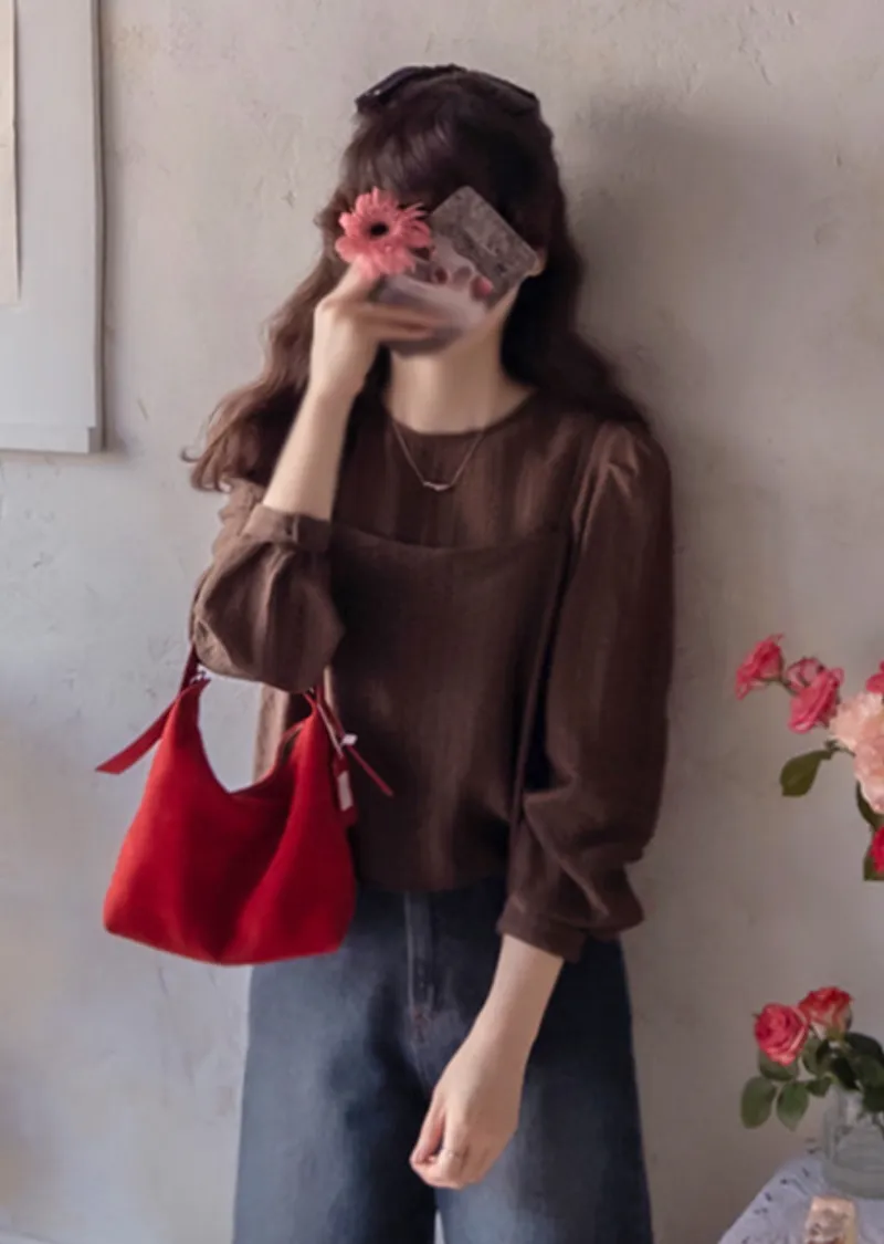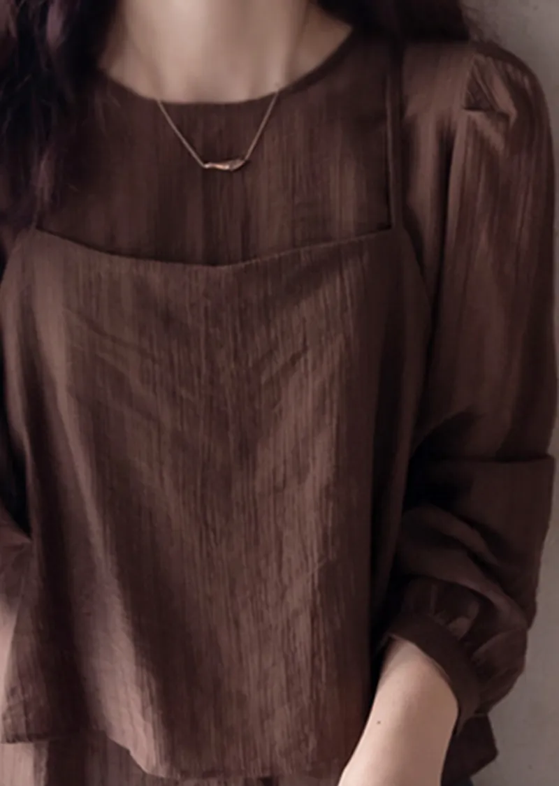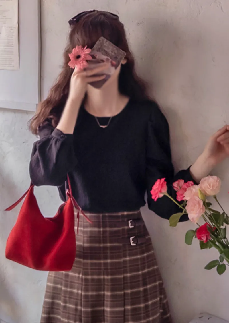 秋季浪漫色感細膩褶皺上衣和無袖的穿搭套裝