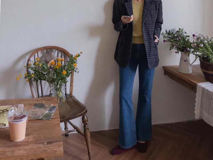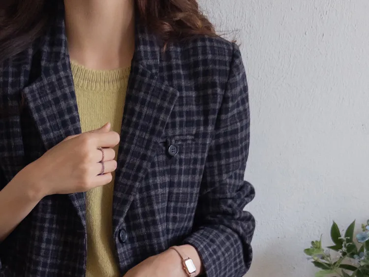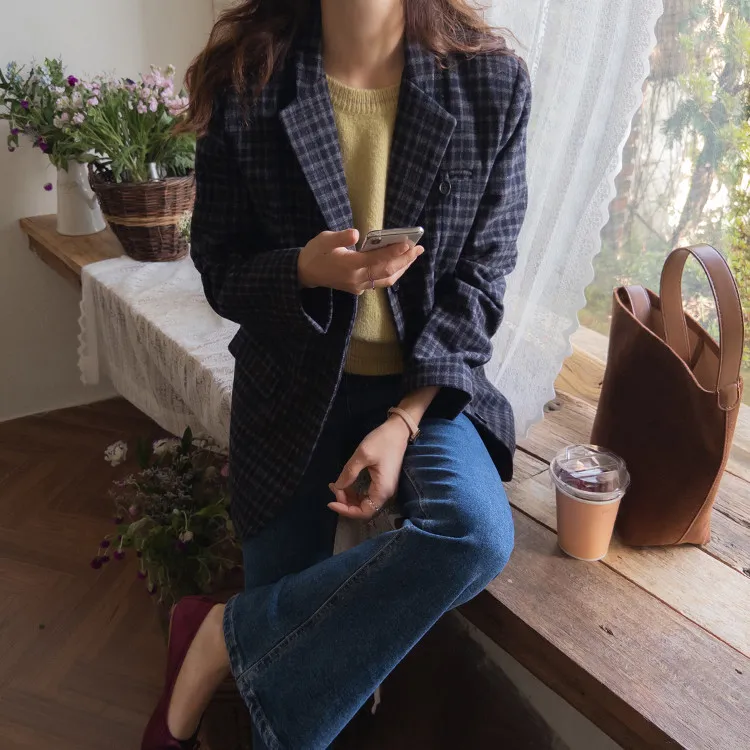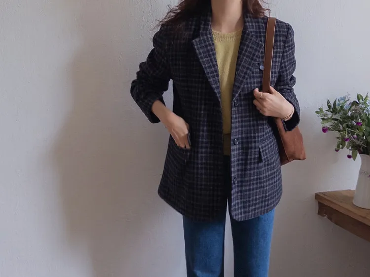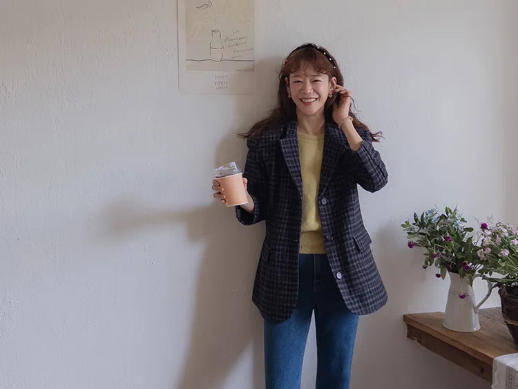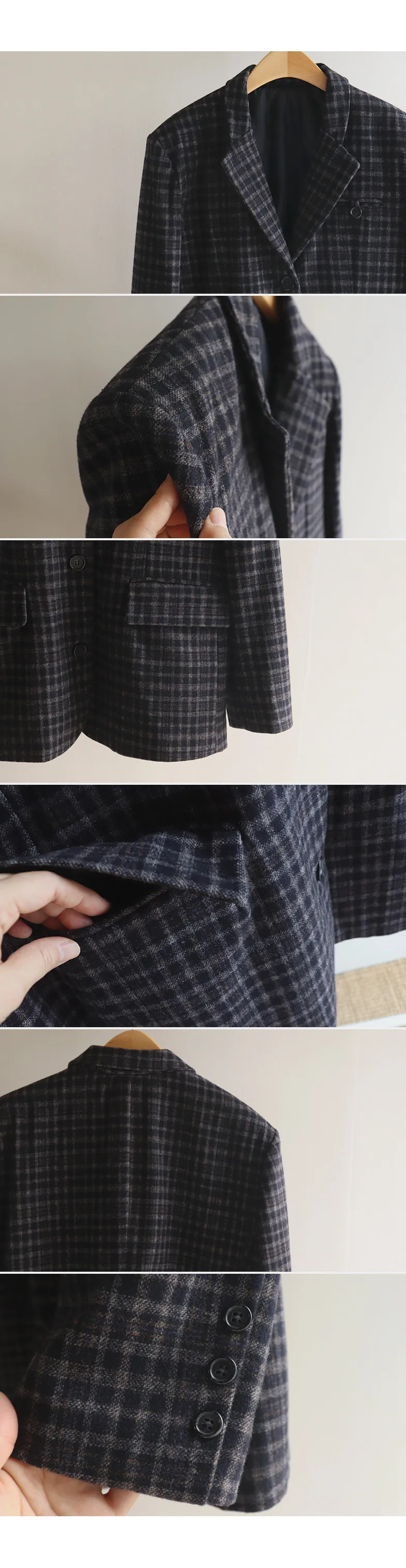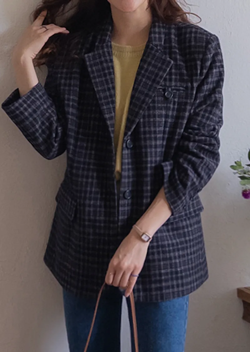 時尚中性魅力經典氛圍羊毛混紡格紋外套