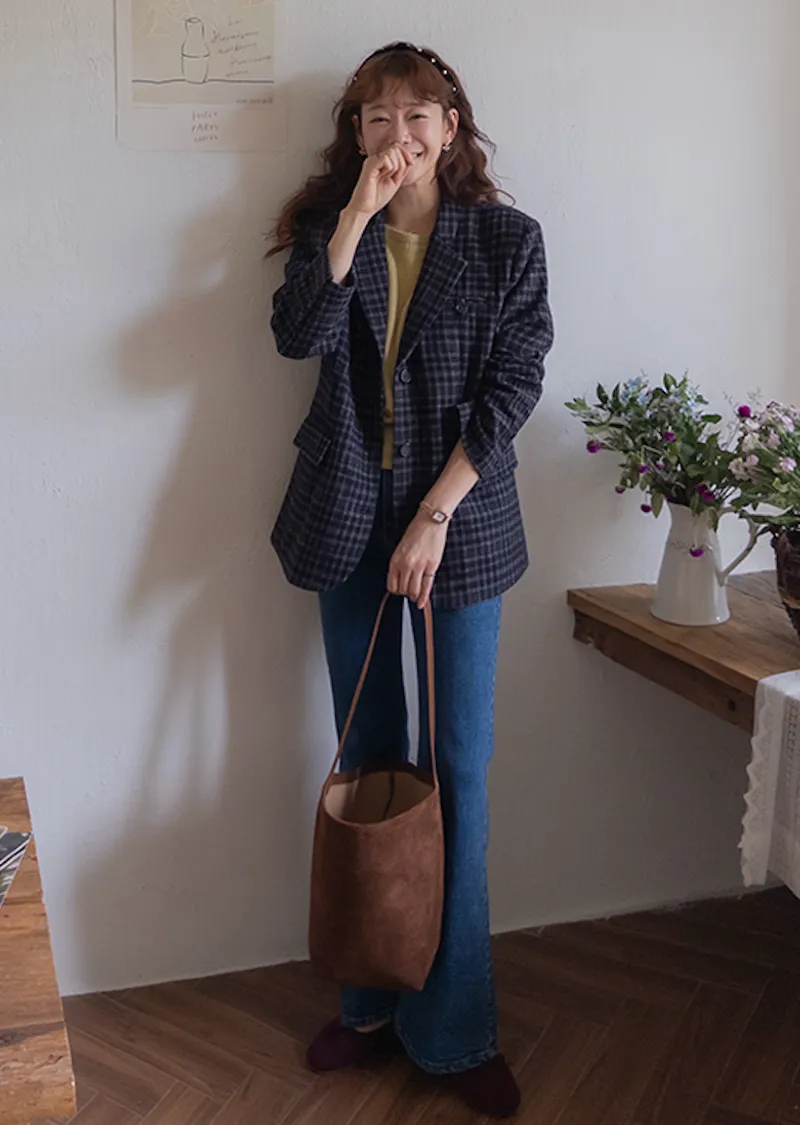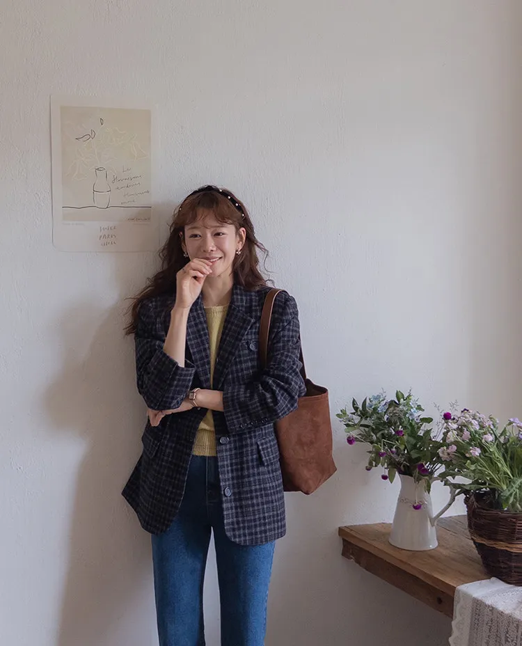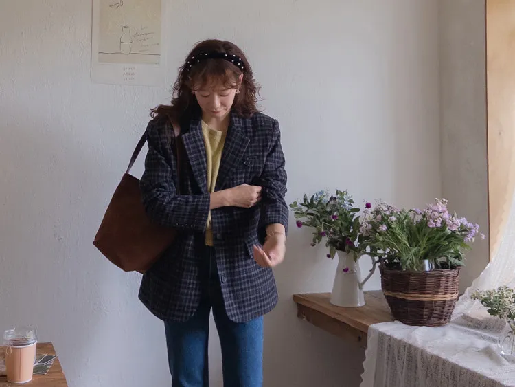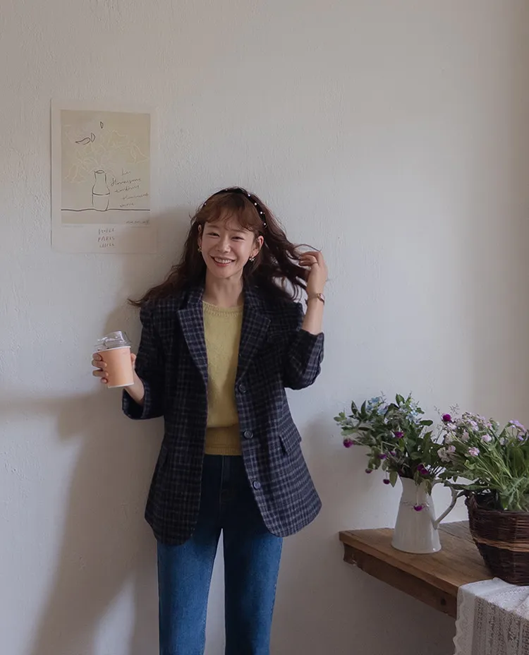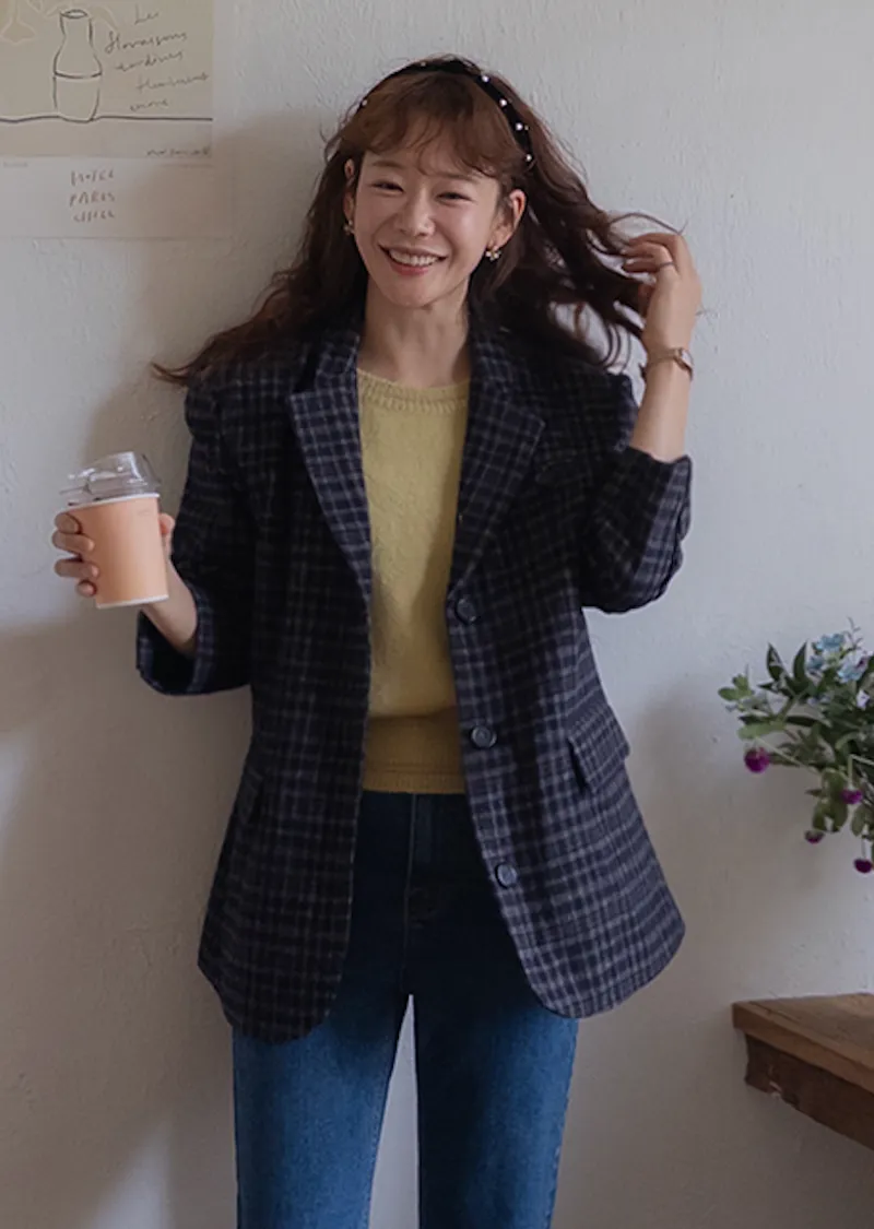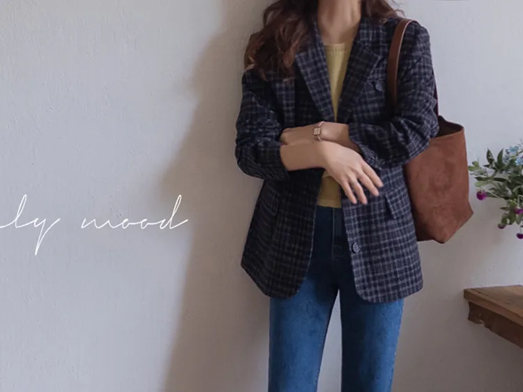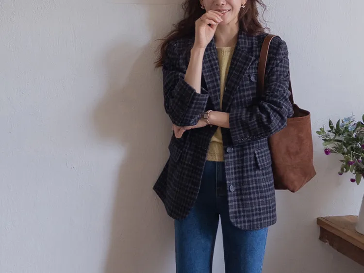 [秋季心情!格紋夾克] [溫暖的羊毛混紡♥] [超大版型,彰顯魅力] [永恆經典,適合每個季節]