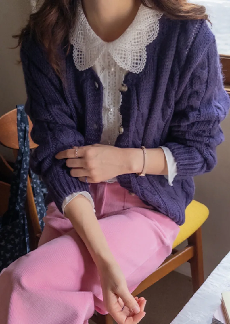 優雅蕾絲絲滑飄逸袖子排扣上衣