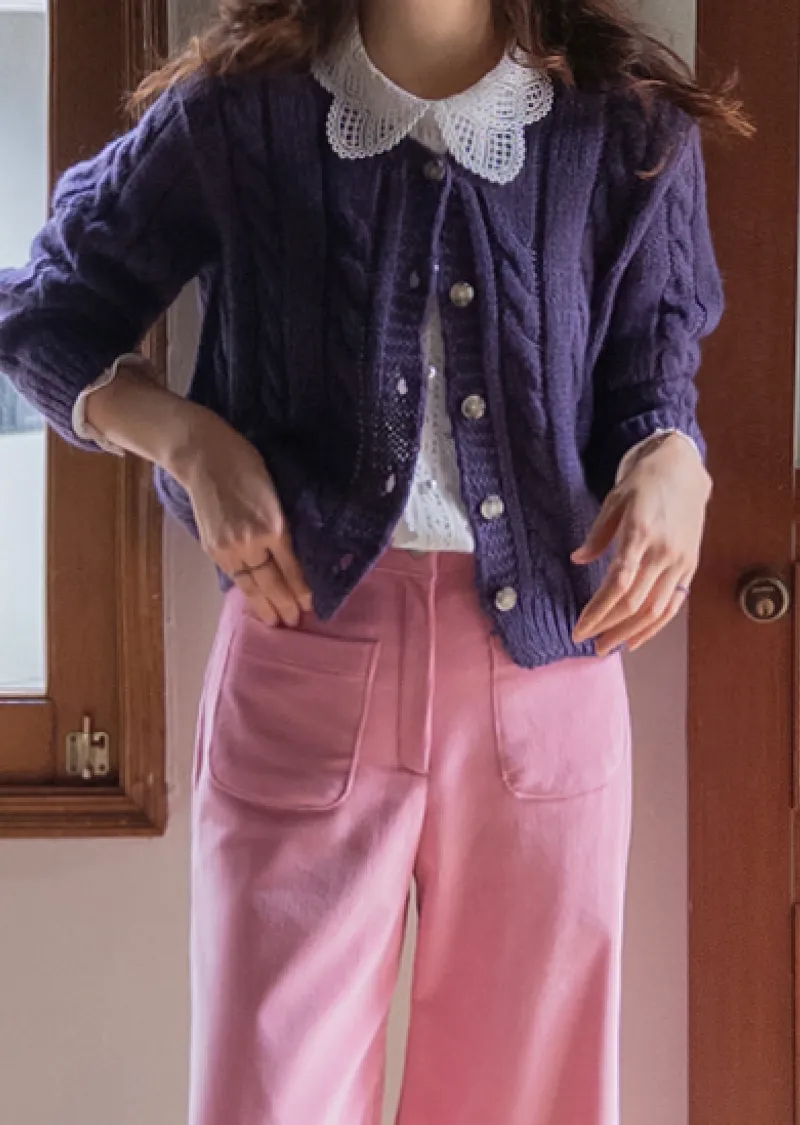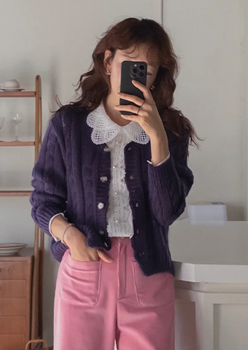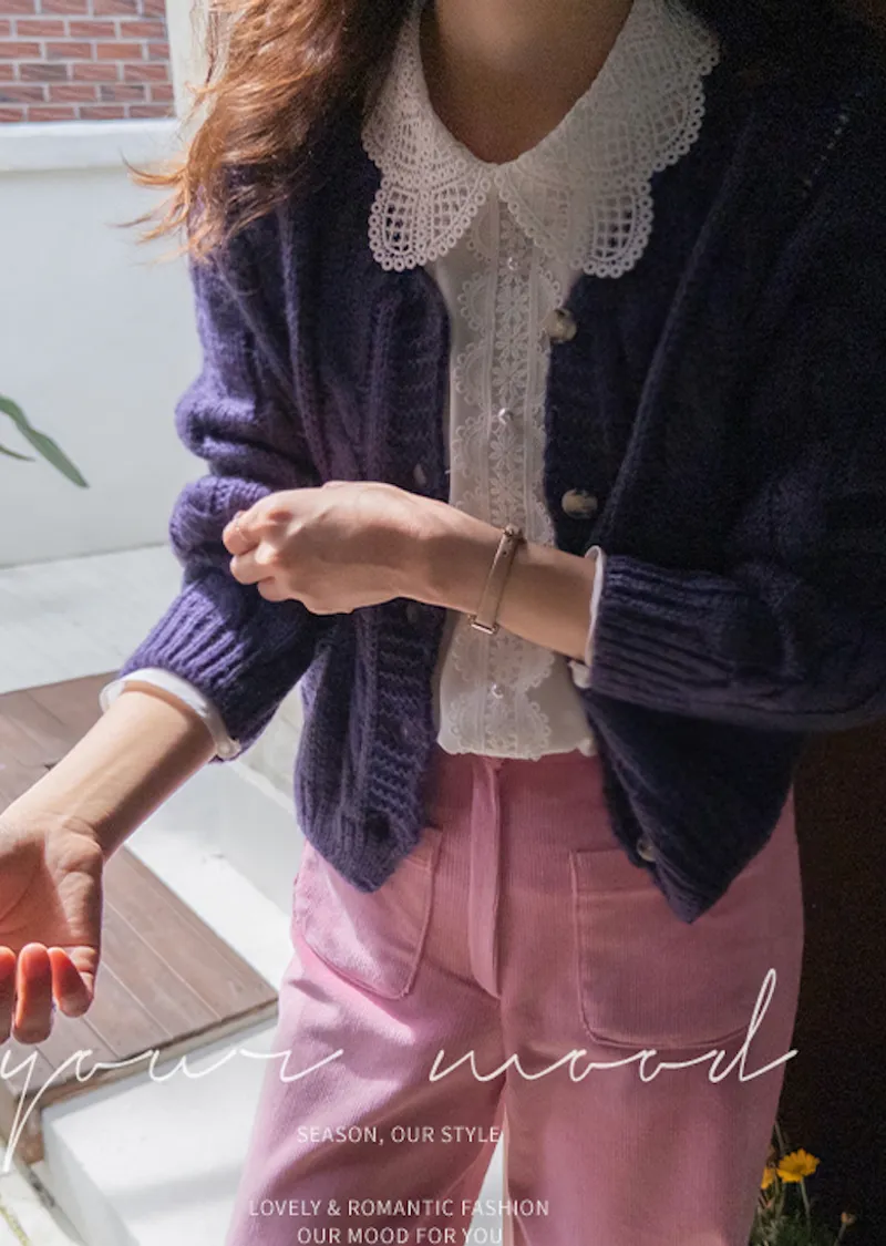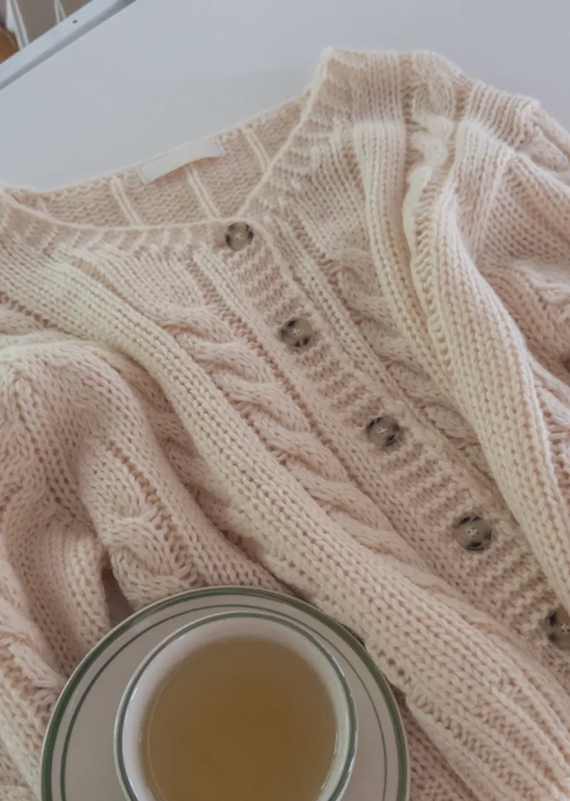 [60%羊毛蓬鬆針織開襟衫✿] [適合日常穿著的經典設計! ] [即使是輕薄的內搭也能改變你的造型氛圍] [建議與各種上衣疊穿搭配~]