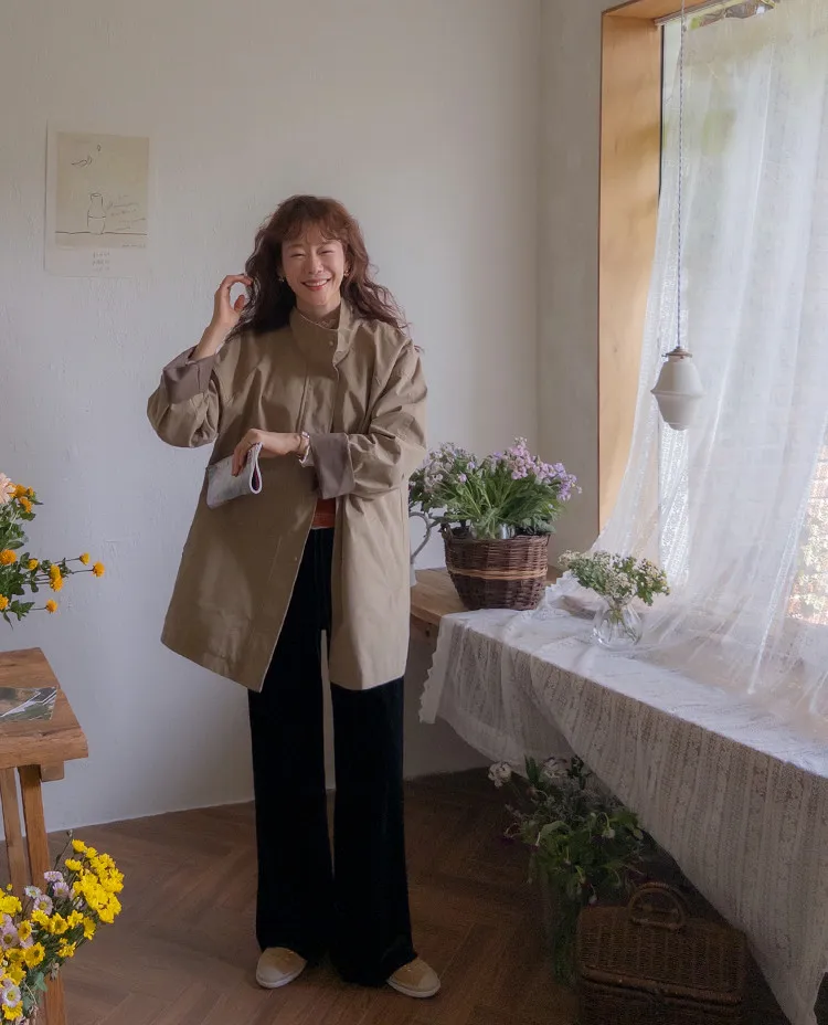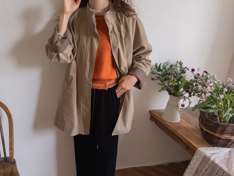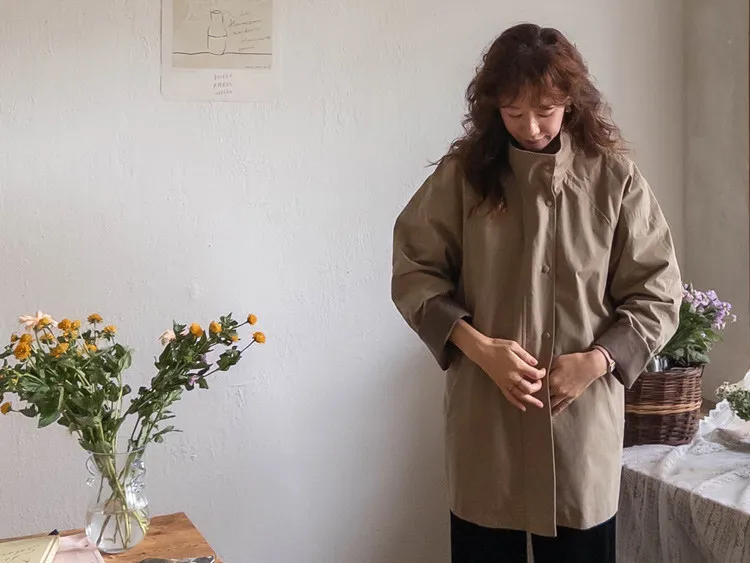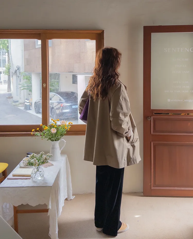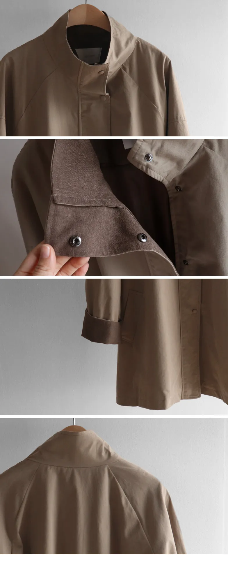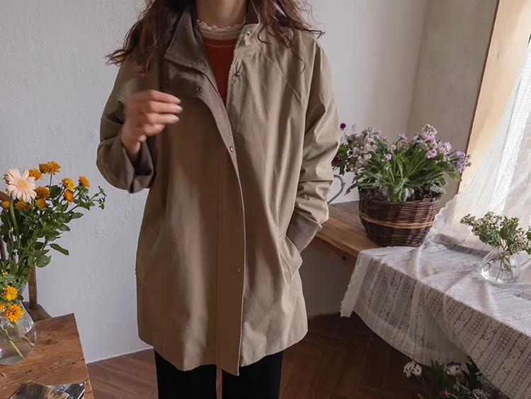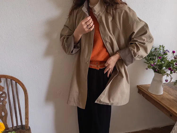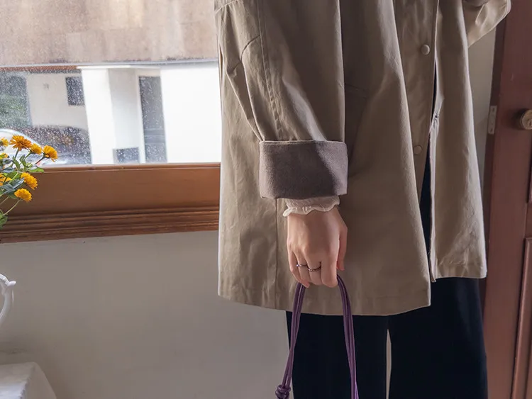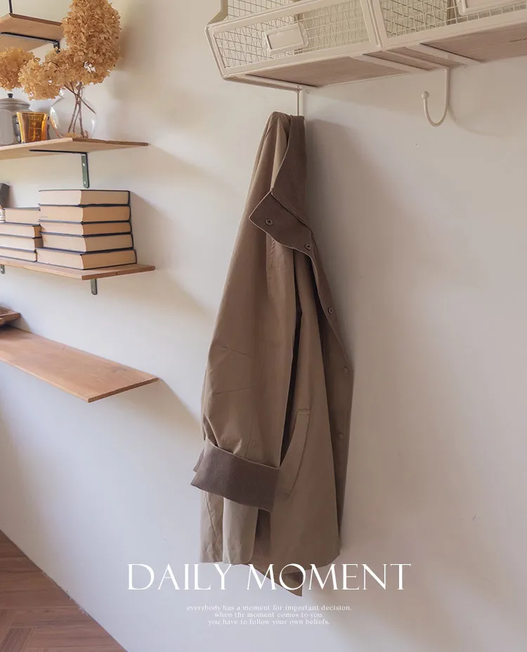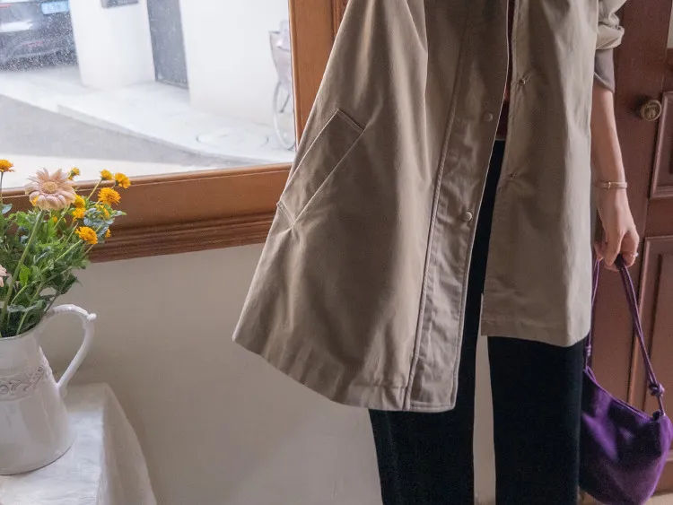 【時尚的半長款風衣外套♥】 【袖口褶襉與撞色設計】 【寬鬆版型,非常適合與厚上衣搭配! 】 【可用領扣打造高領造型】