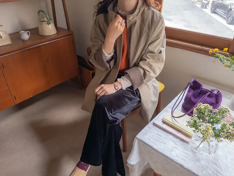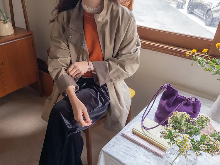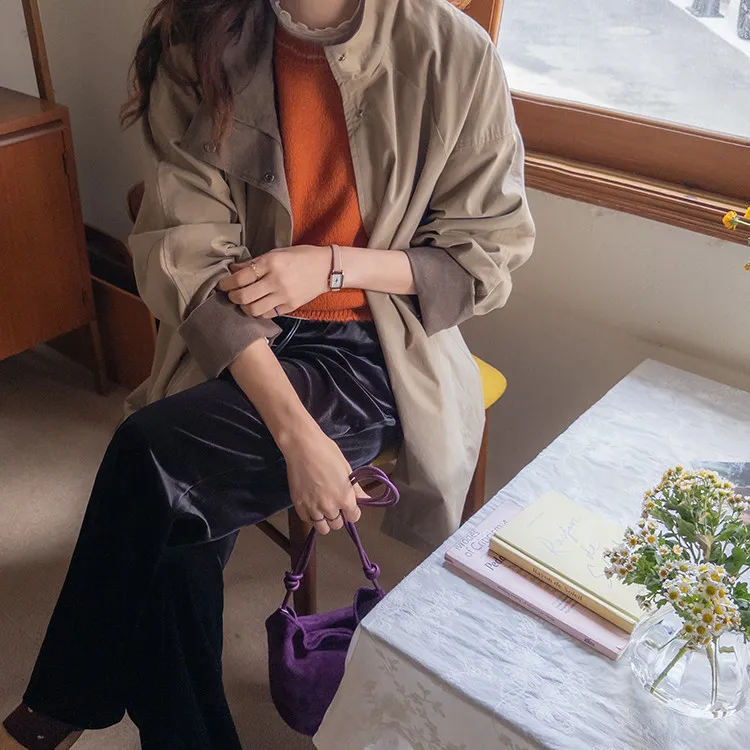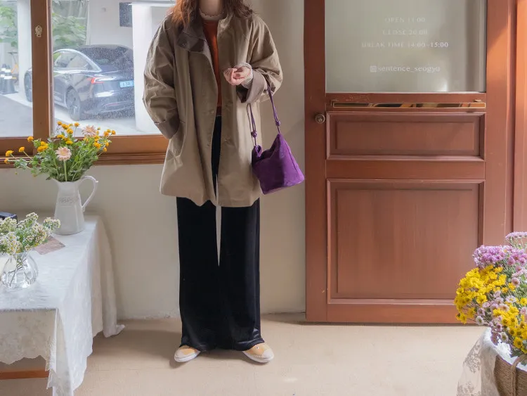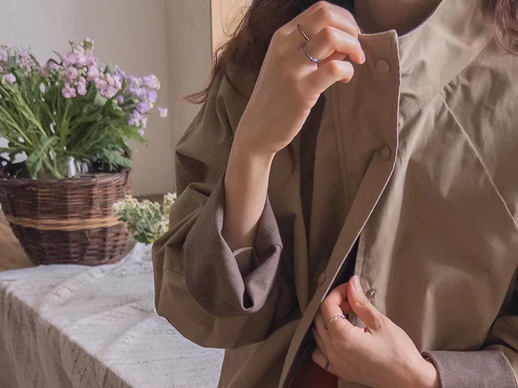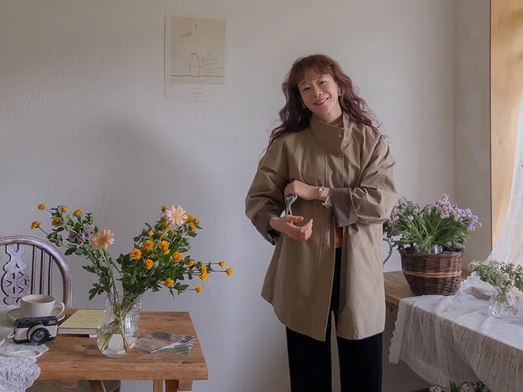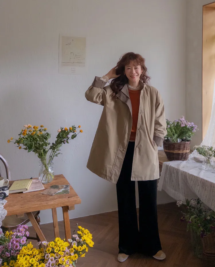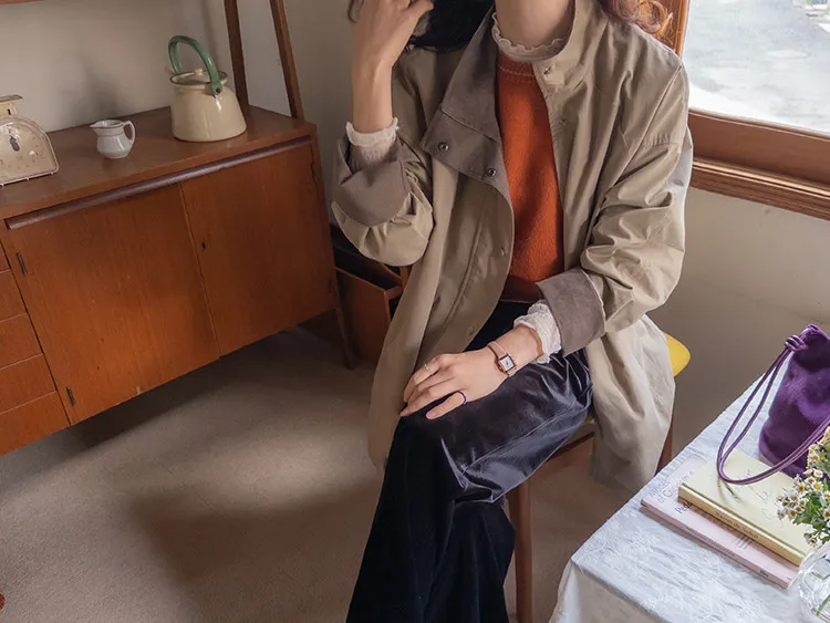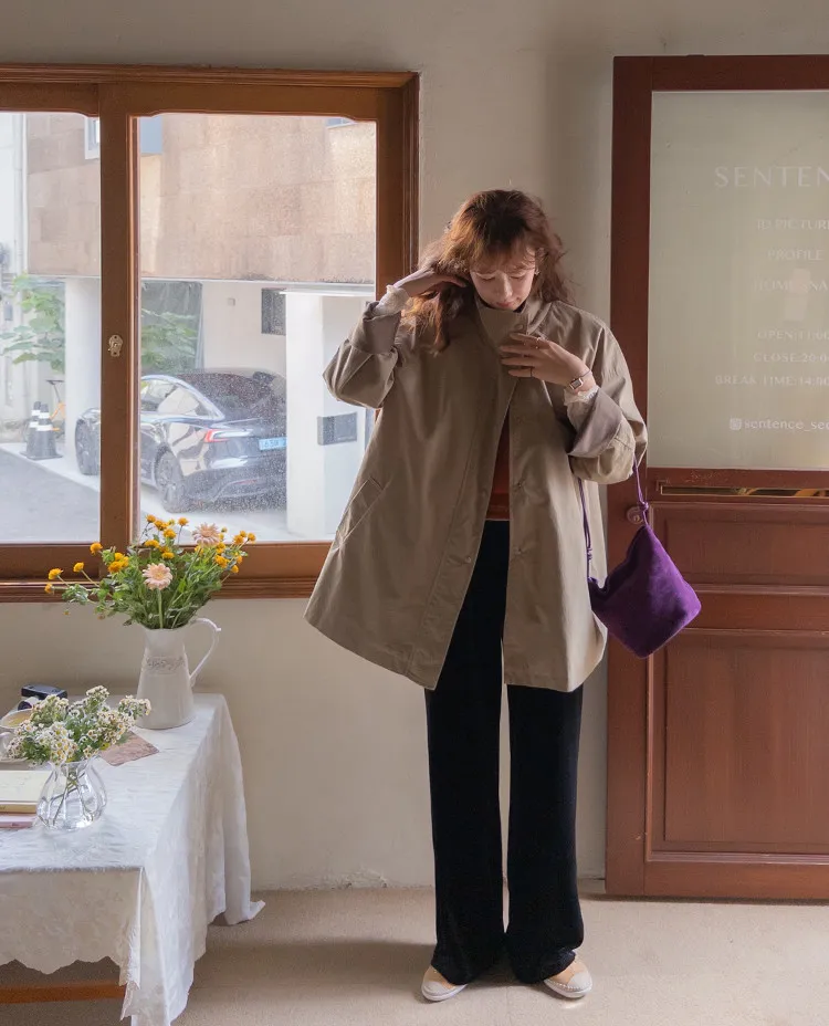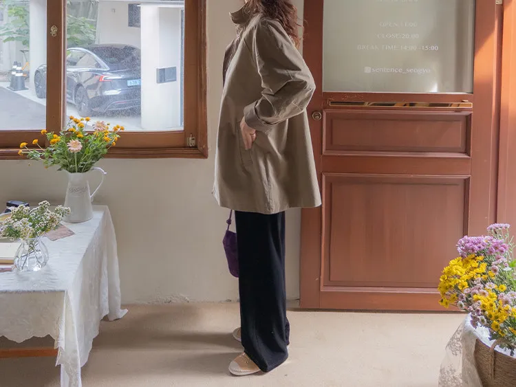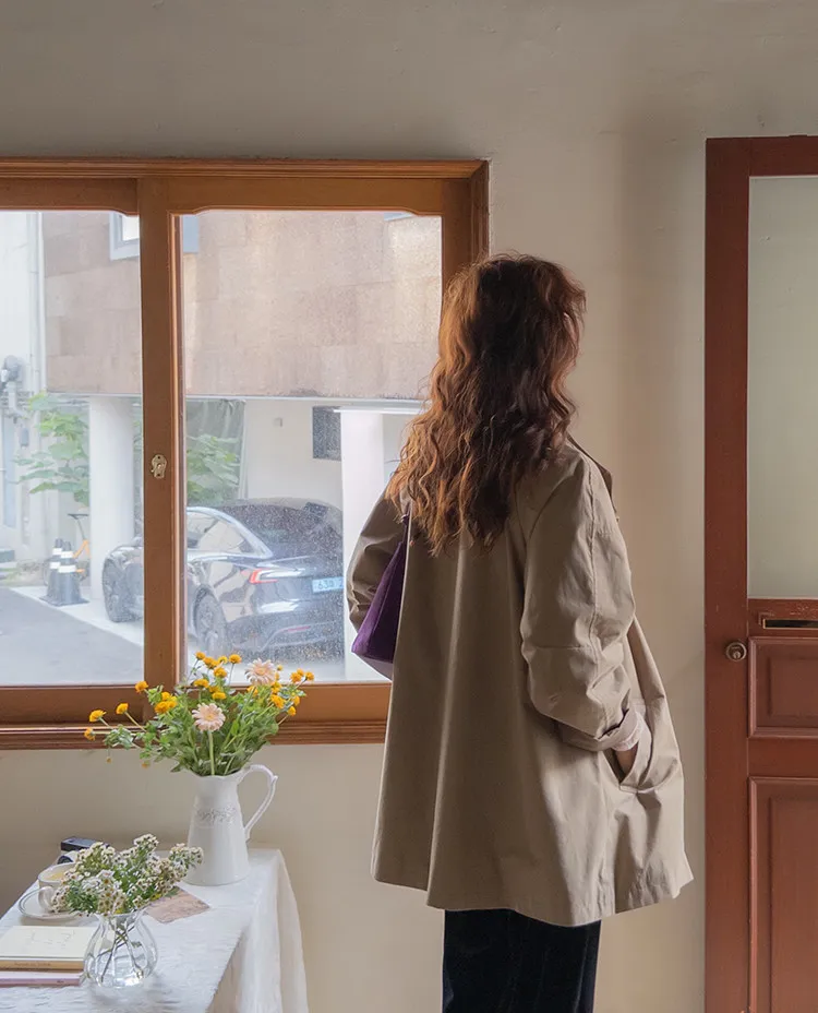 【時尚的半長款風衣外套♥】 【袖口褶襉與撞色設計】 【寬鬆版型,非常適合與厚上衣搭配! 】 【可用領扣打造高領造型】